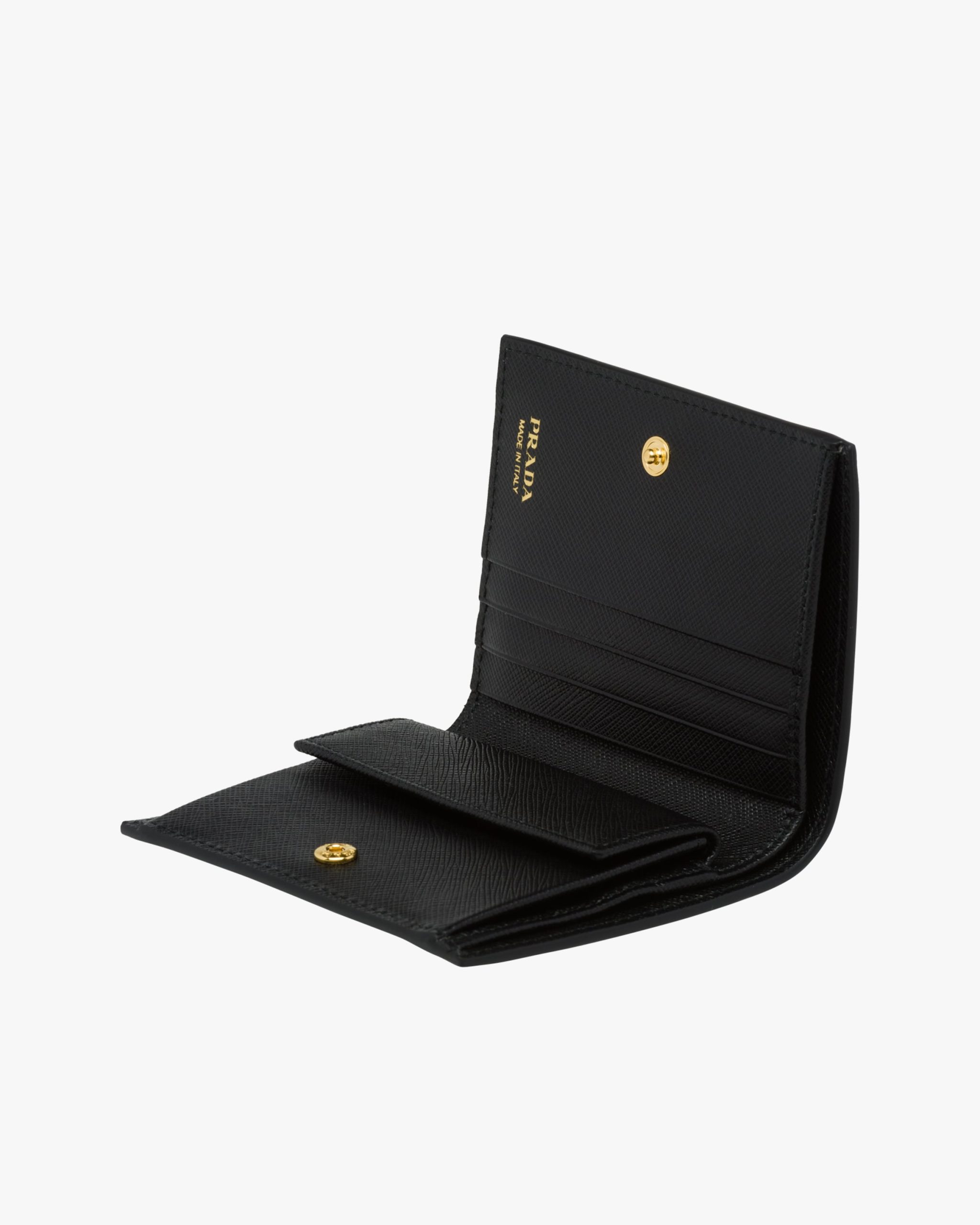 A wallet defined by understated elegance. Matching the tone of the Saffiano leather, the Prada logo decorates the accessory which offers practical pockets for coins, cards and documents inside.