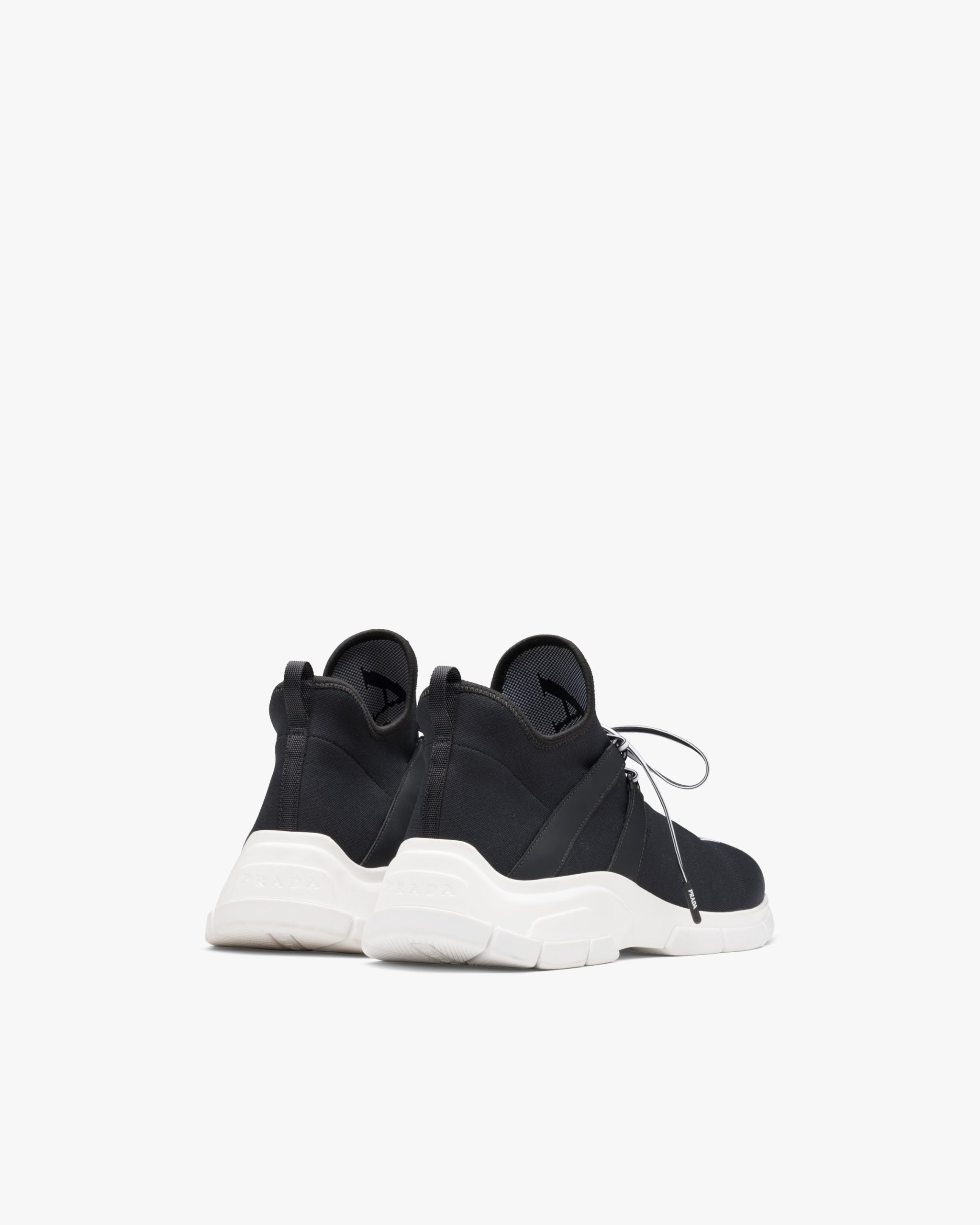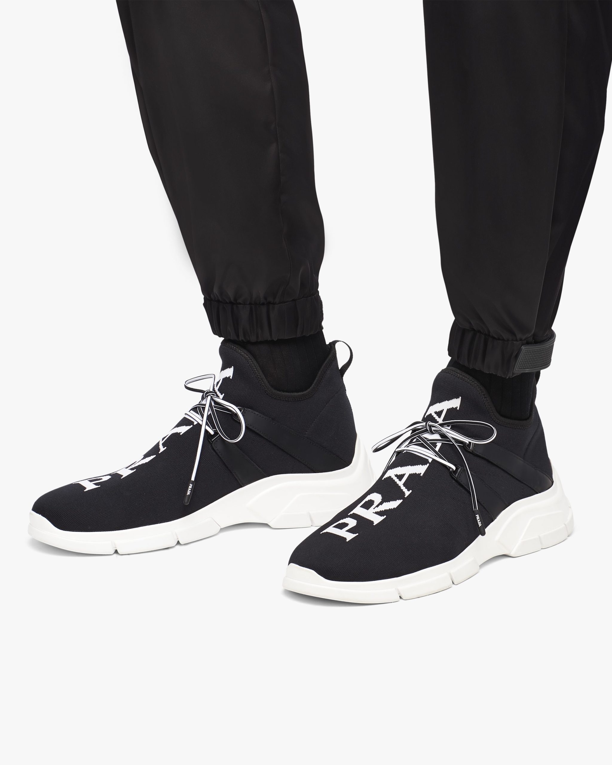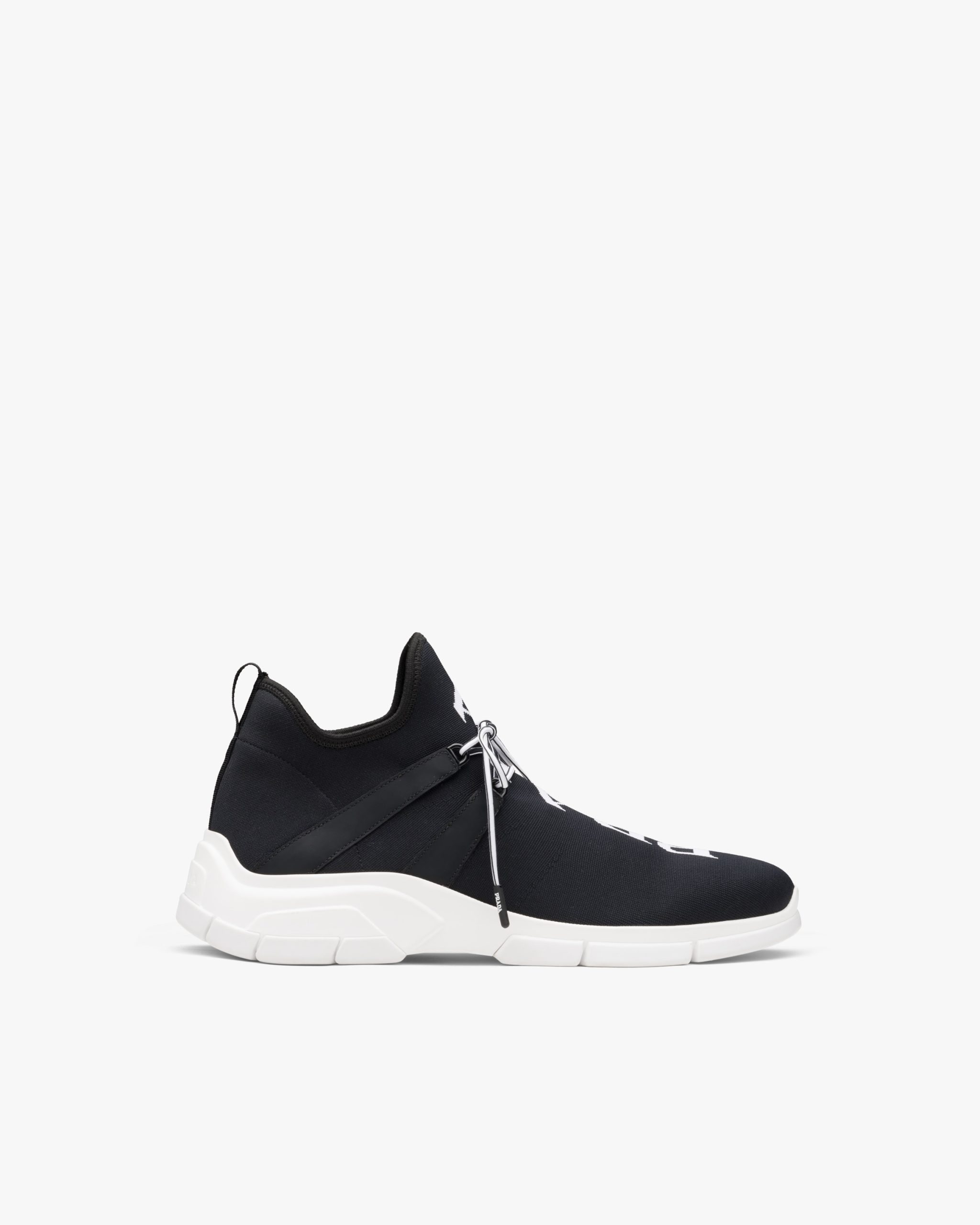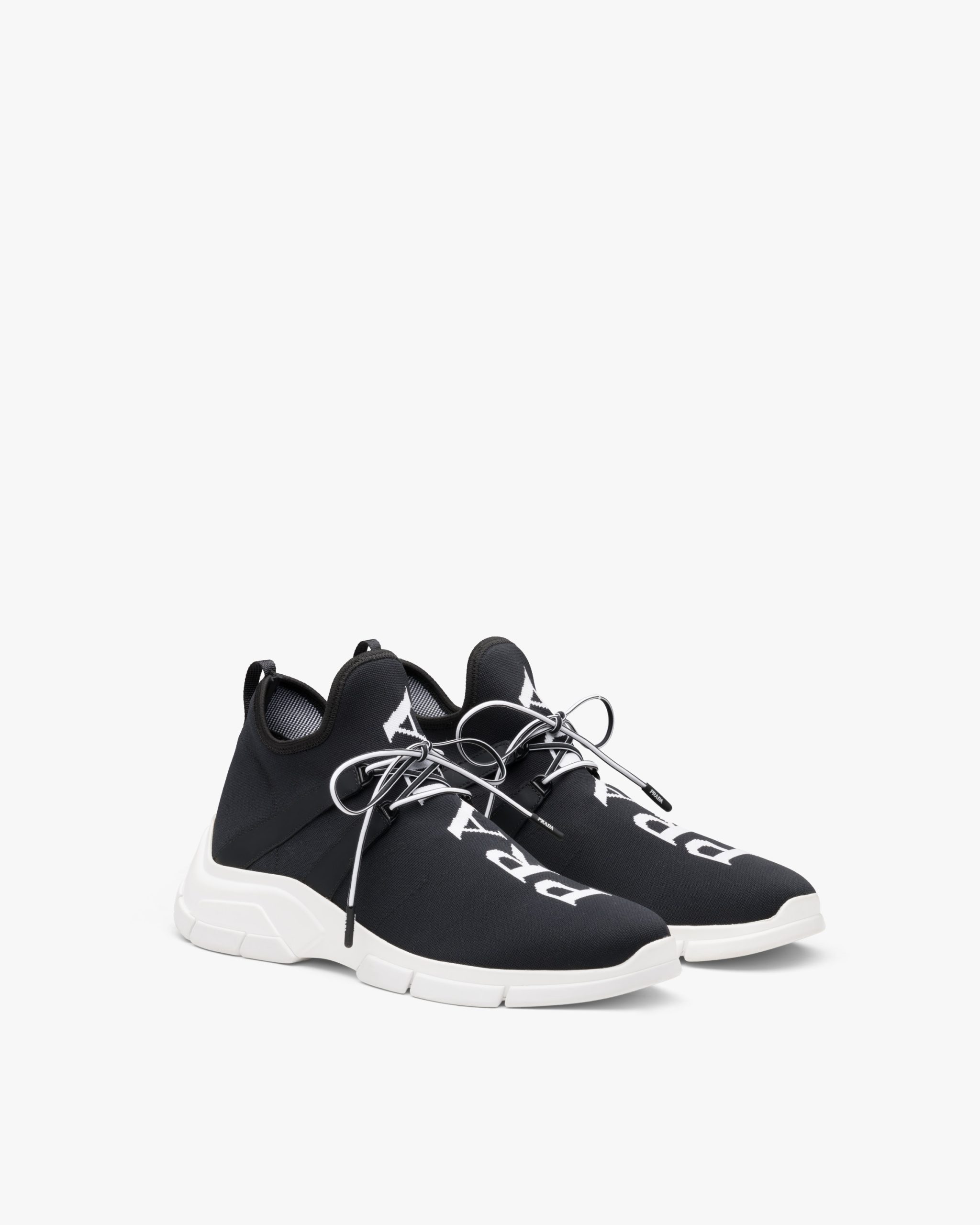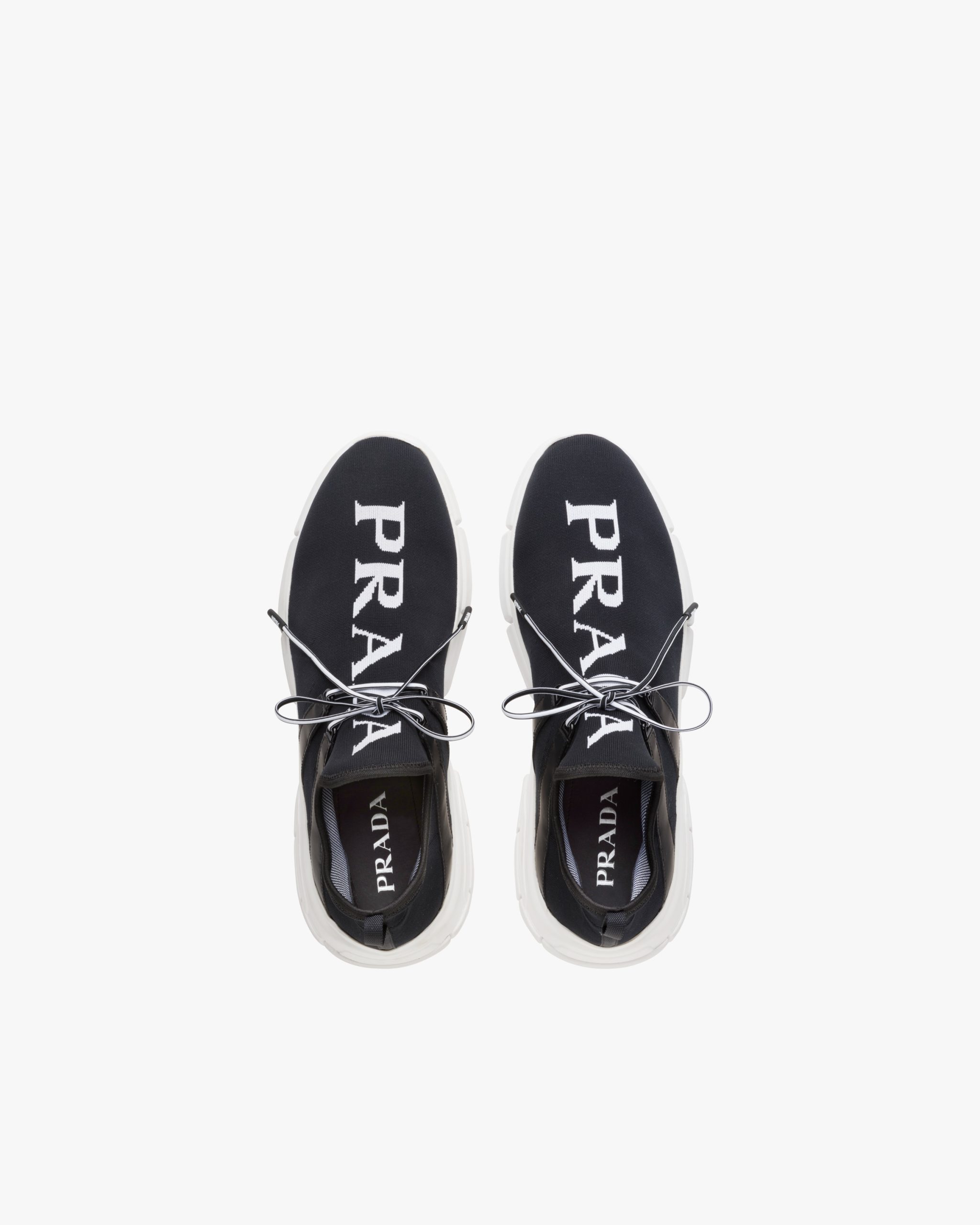 These knit sneakers have an innovative silhouette. The Prada logo characterizes the upper.