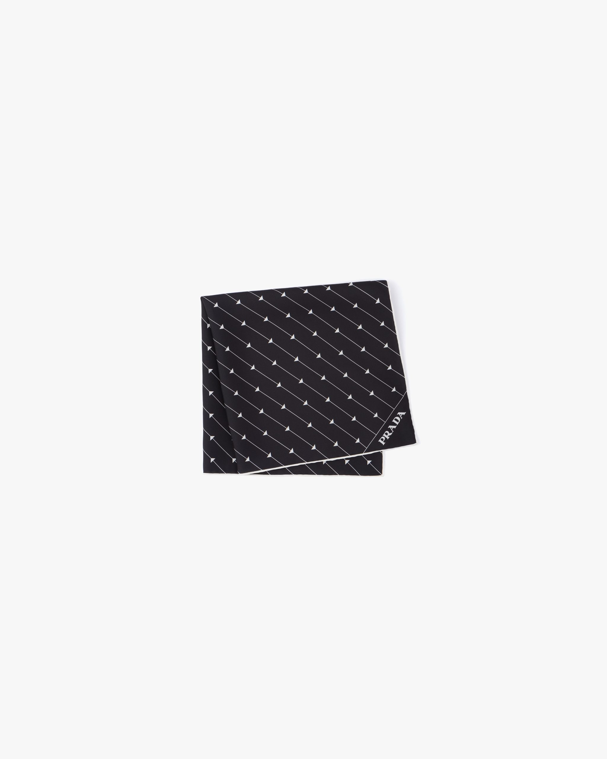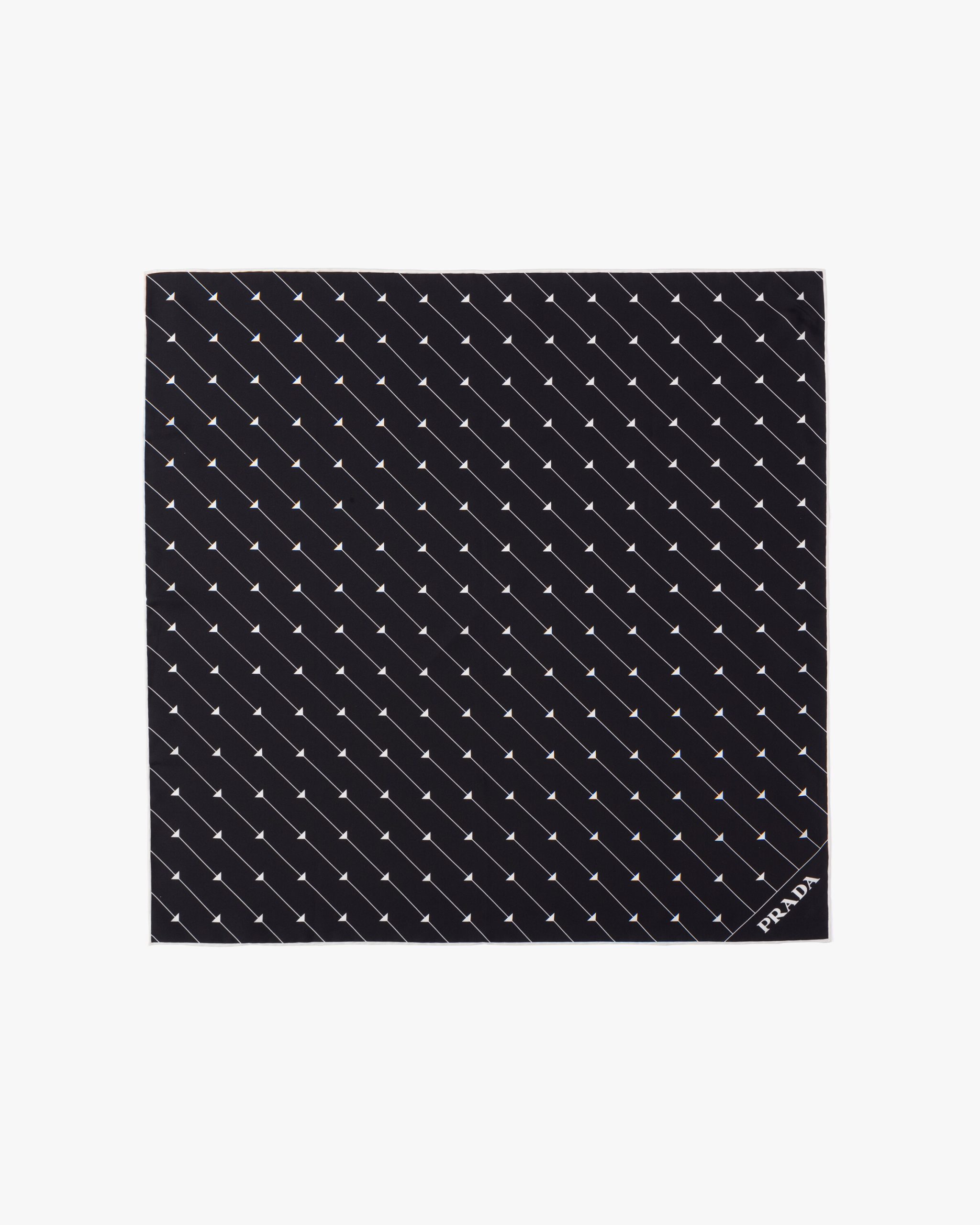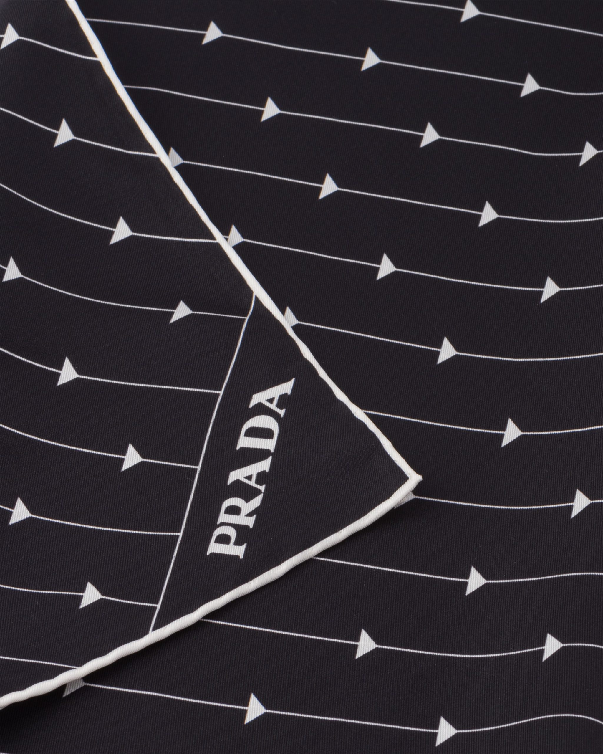 The triangle, Prada’s iconic logo since 1913, is reimagined in always new ways and is combined with narrow stripes in the delicate graphic pattern on this twill scarf.