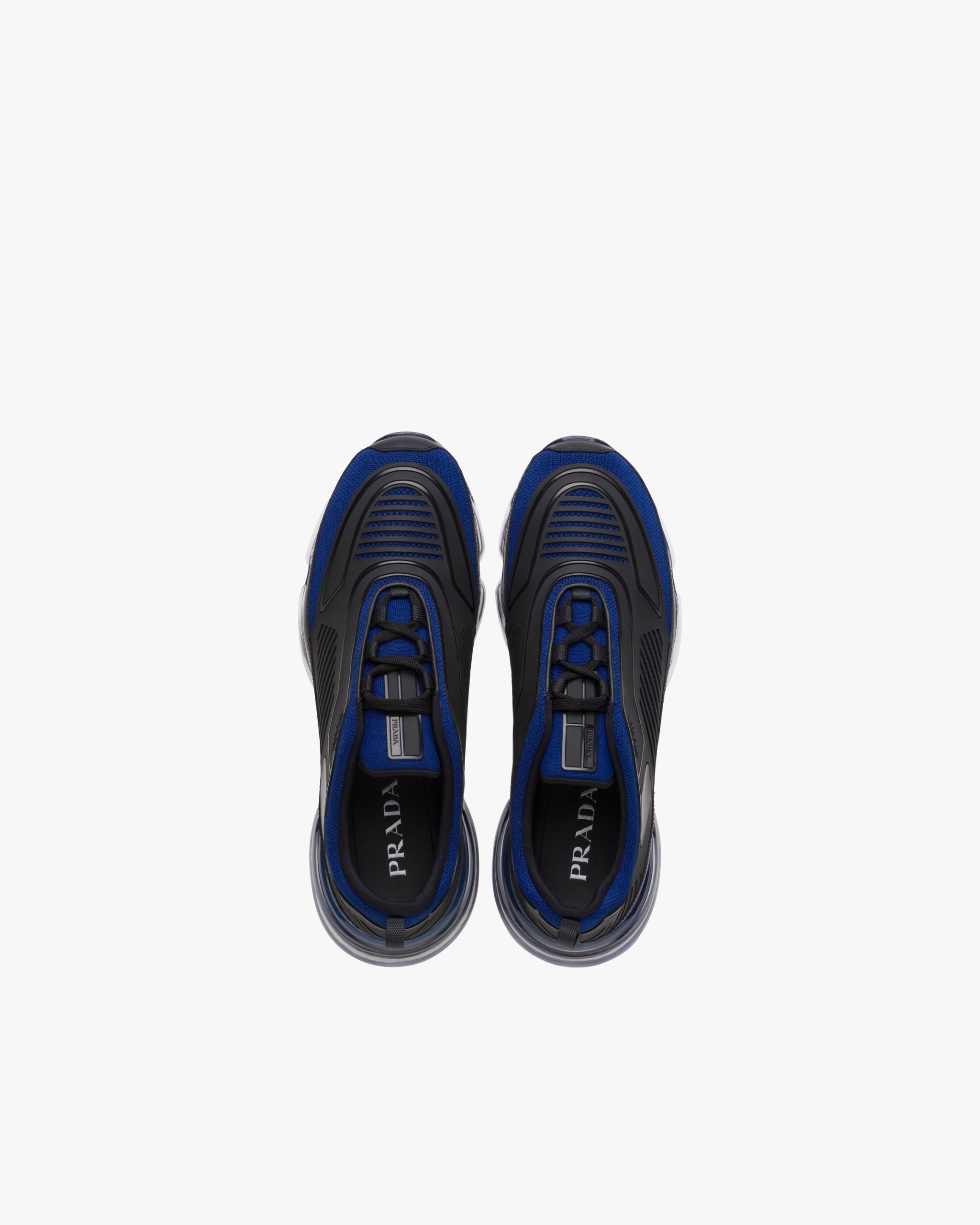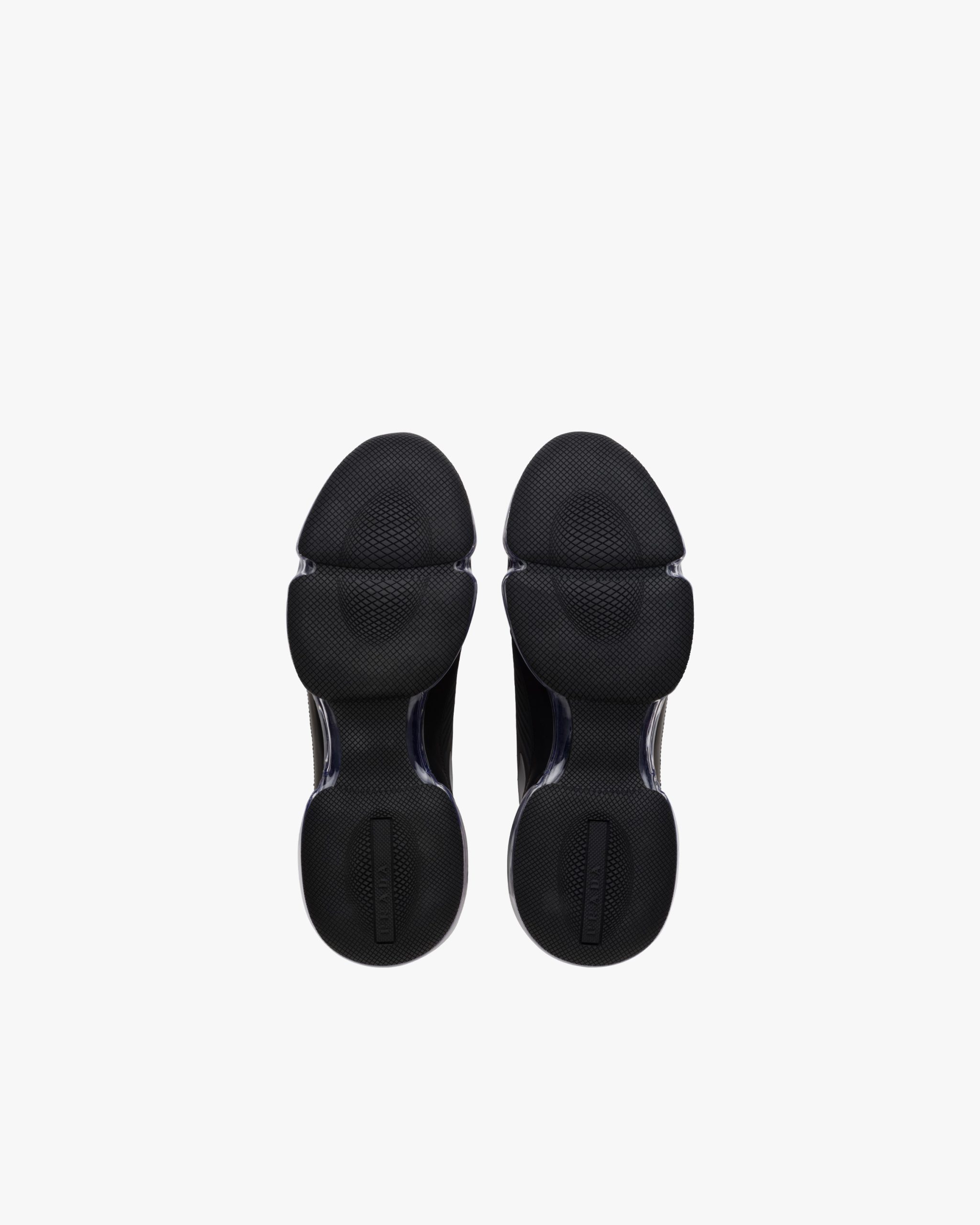 These Prada Cloudbust Air sneakers in knit fabric with 3D appliqu?s have a futuristic design. The chunky sole is made of transparent rubber.