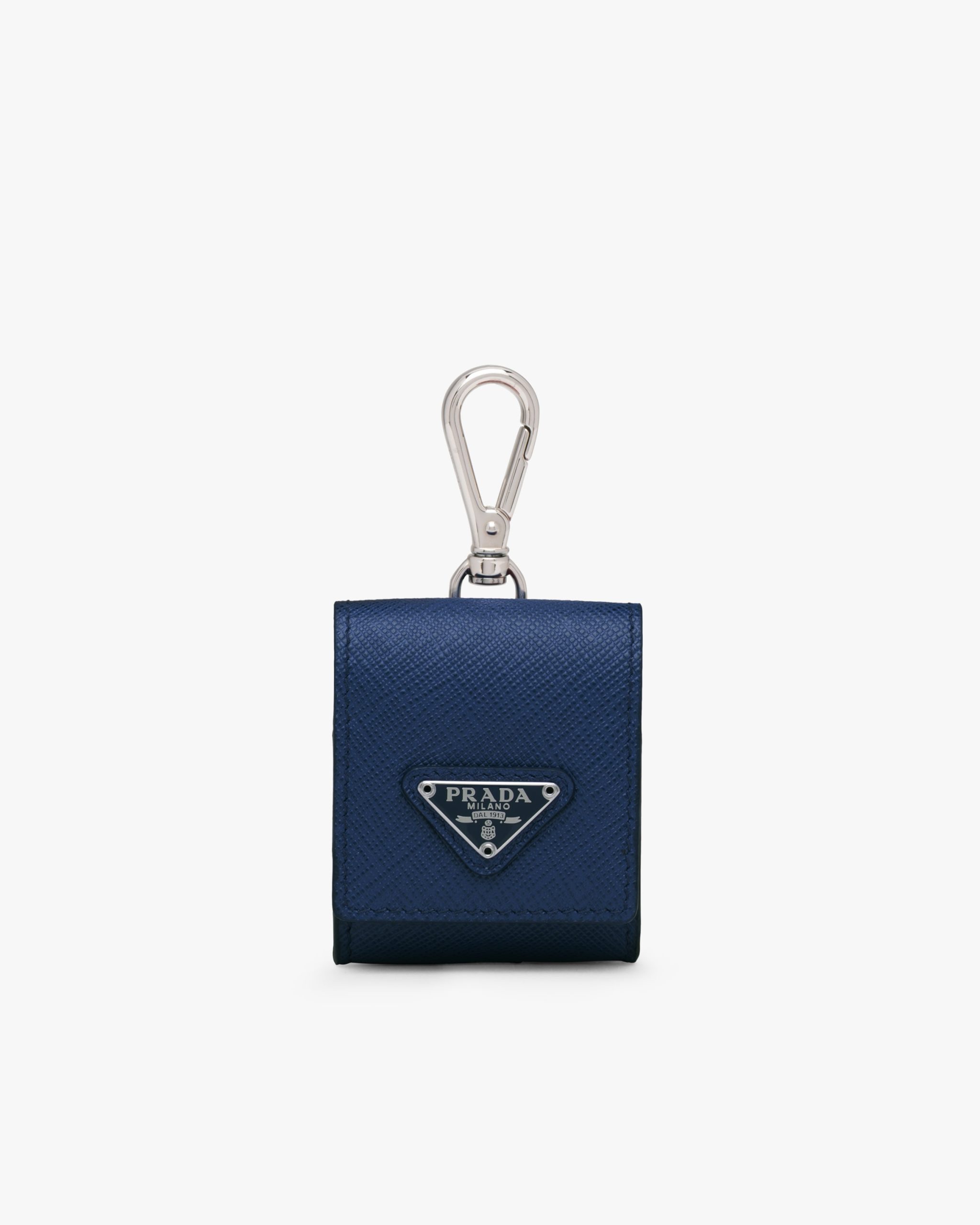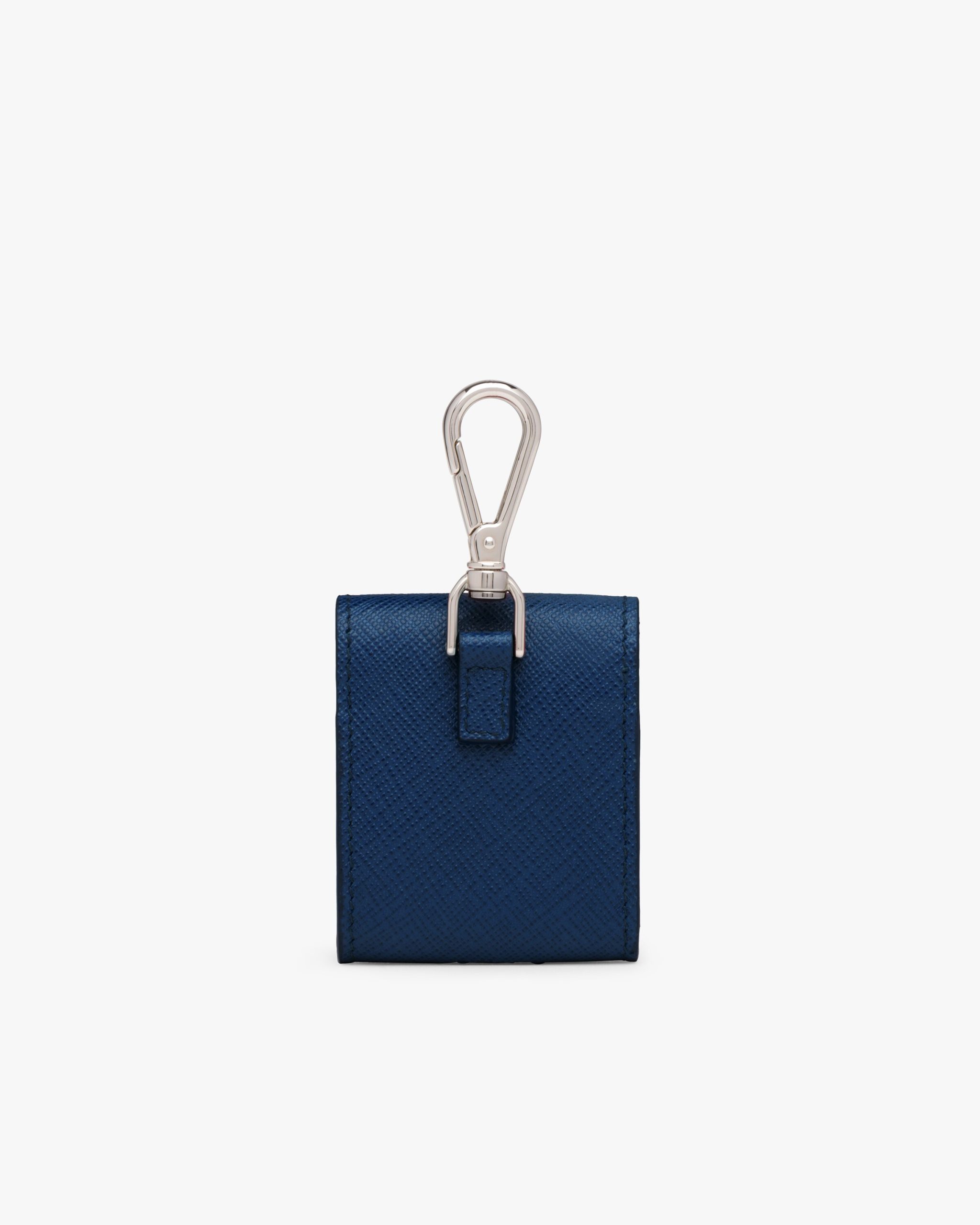 This earphone holder trick in Saffiano leather has a snap-hook.