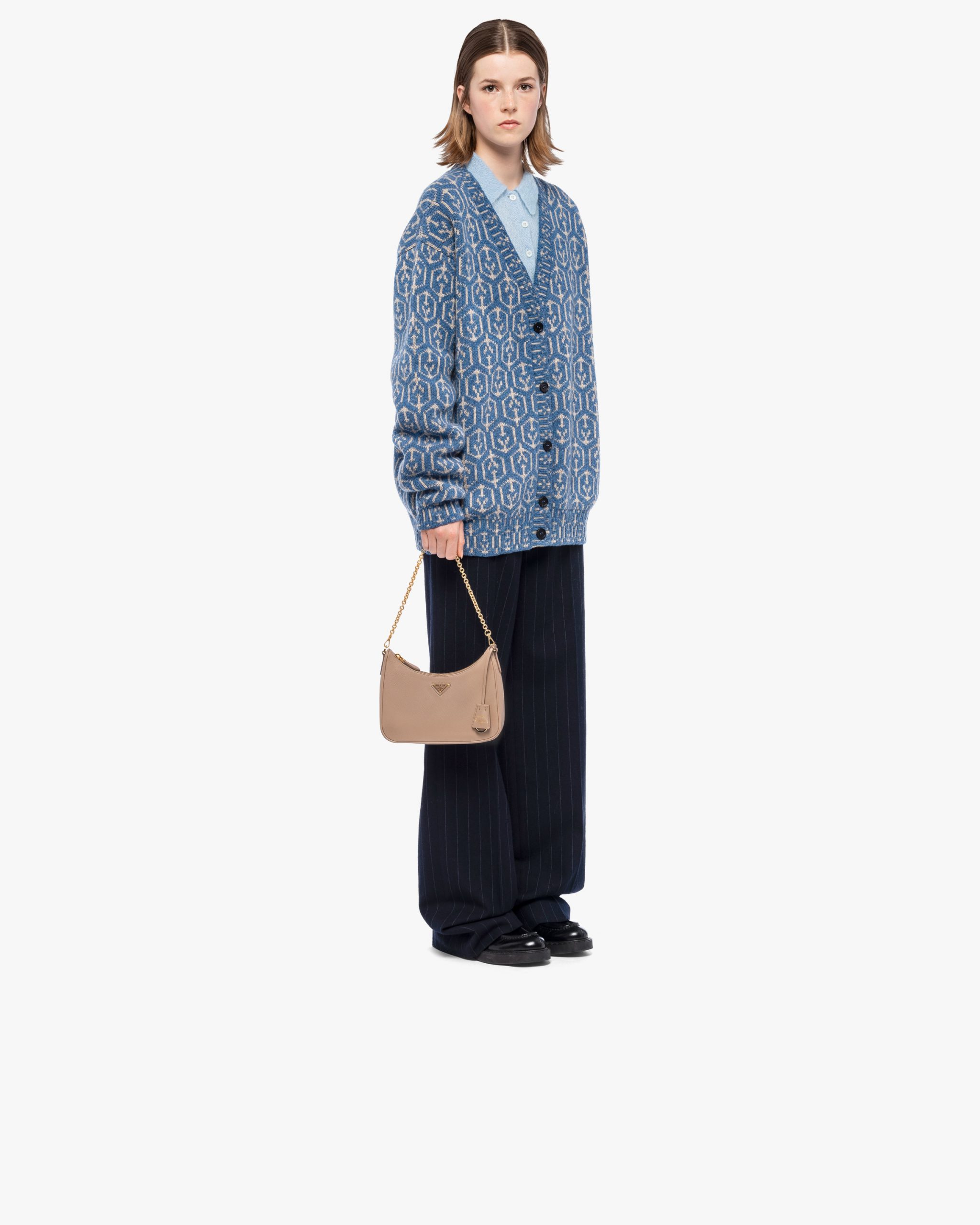 An iconic silhouette with sophisticated details that enhance the design: Prada transforms the classic shoulder bag, reinterpreting it in Saffiano leather with a cross-hatch motif that is a hallmark of the brand. The accessory is completed by a removable leather pouch and Re-Edition keychain, making the bag unique and functional.