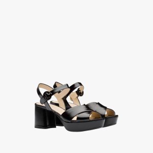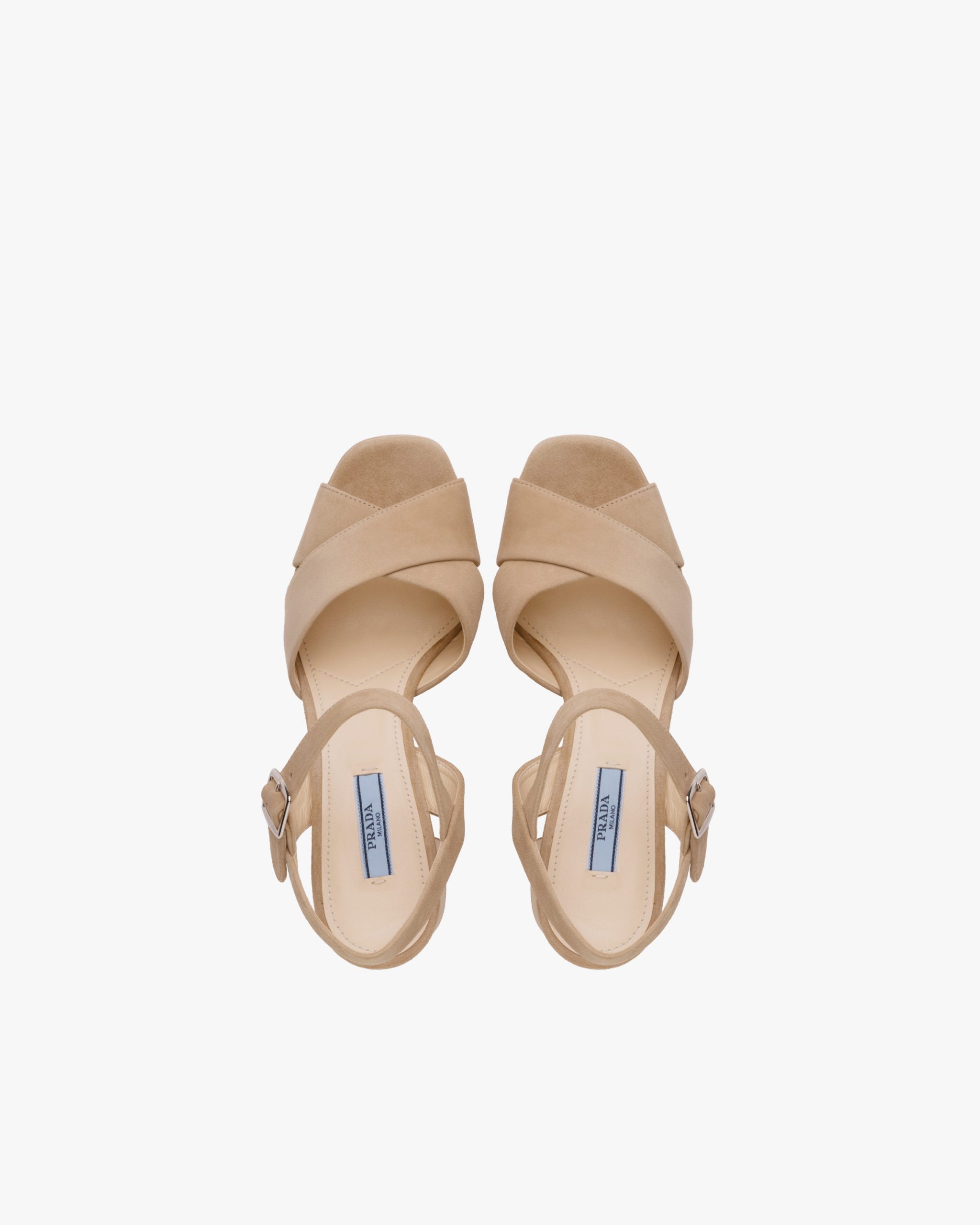 These suede sandals with high column heel are characterized by the double crisscross band on the front. The strap with metal buckle completes the design.