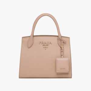 This leather handbag with metal logo has a practical shoulder strap and is characterized by functional details such as the two external zipper pockets.
