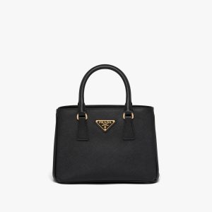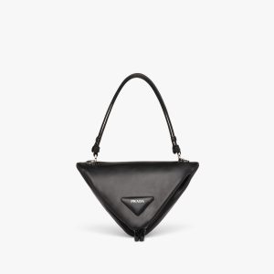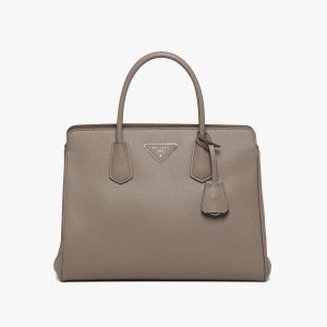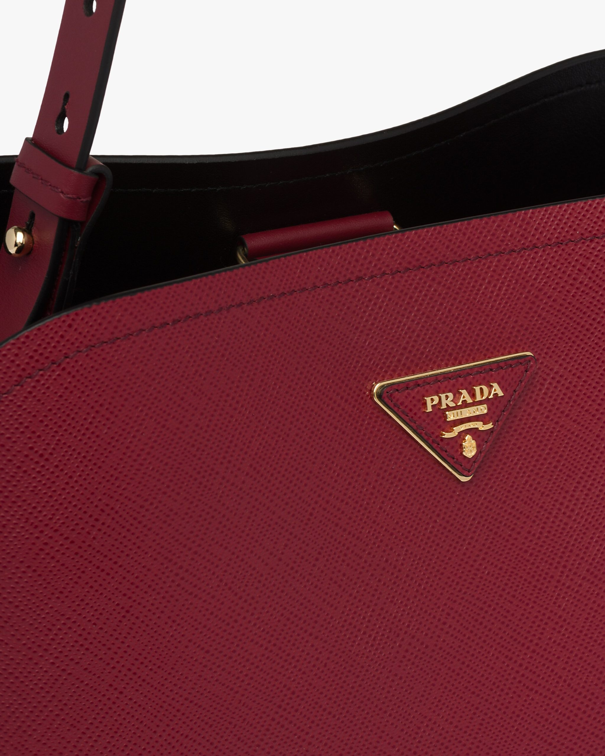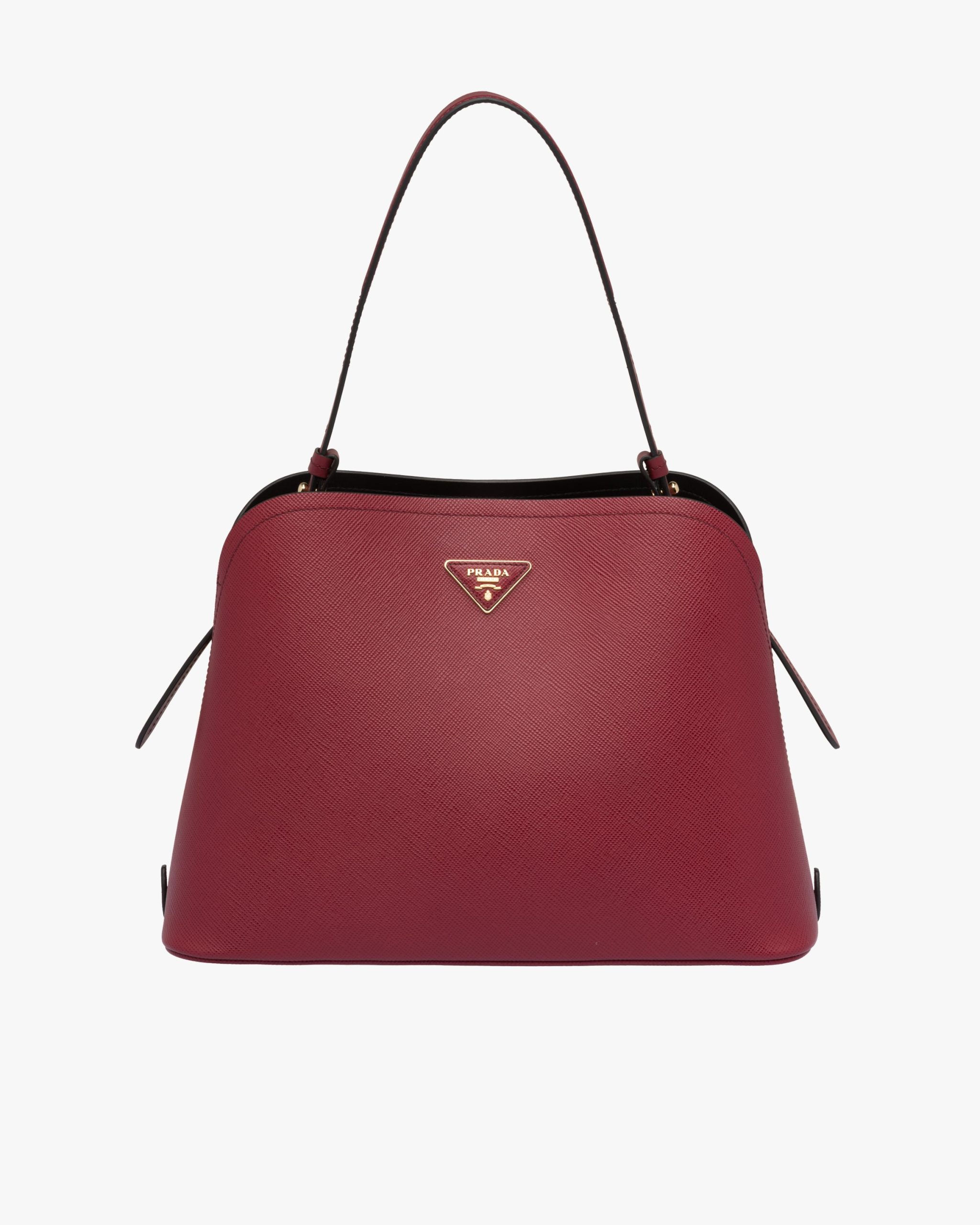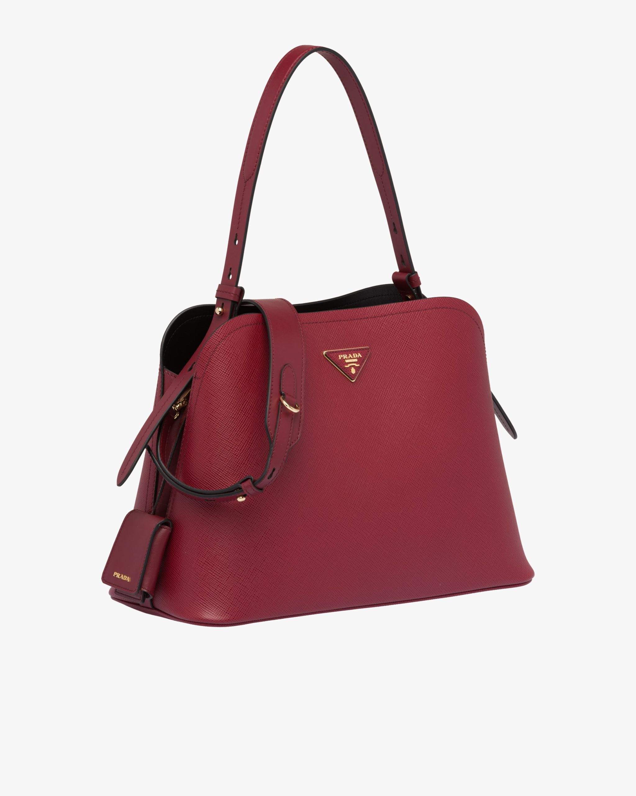 The Prada Matin?e handbag made of Saffiano leather stands out for its metal triangle logo and detachable adjustable leather shoulder strap.