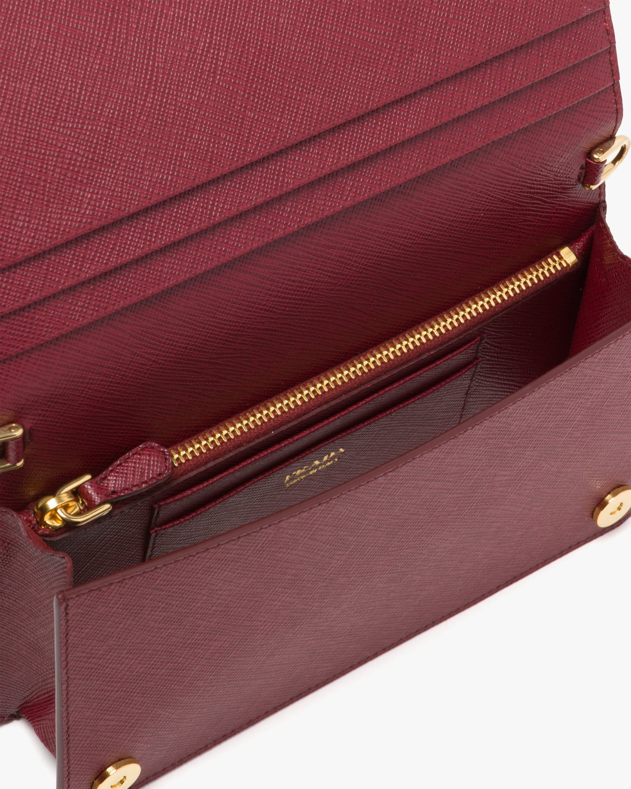 Refined and with a minimal design, this Saffiano leather mini-bag has a detachable chain shoulder strap.