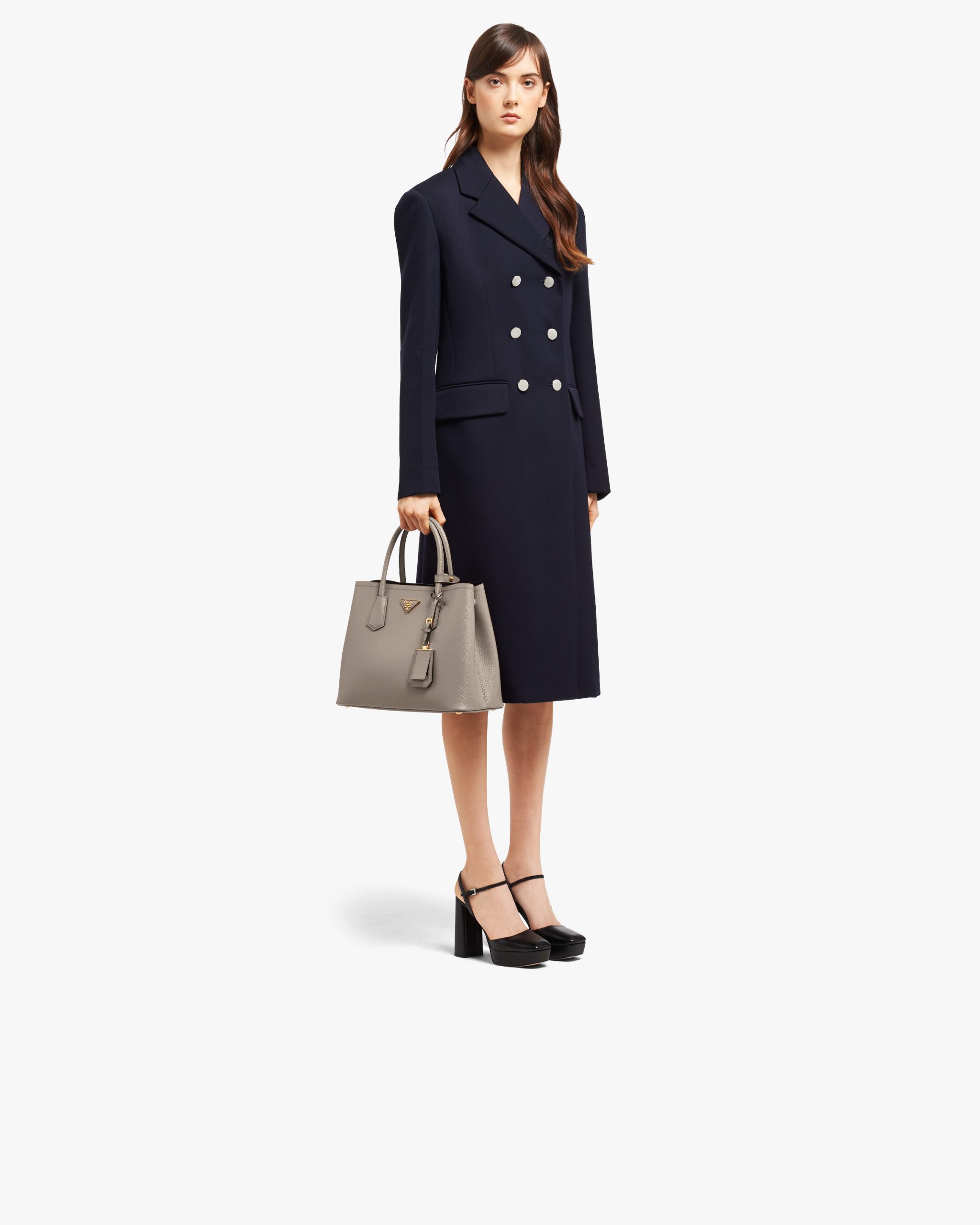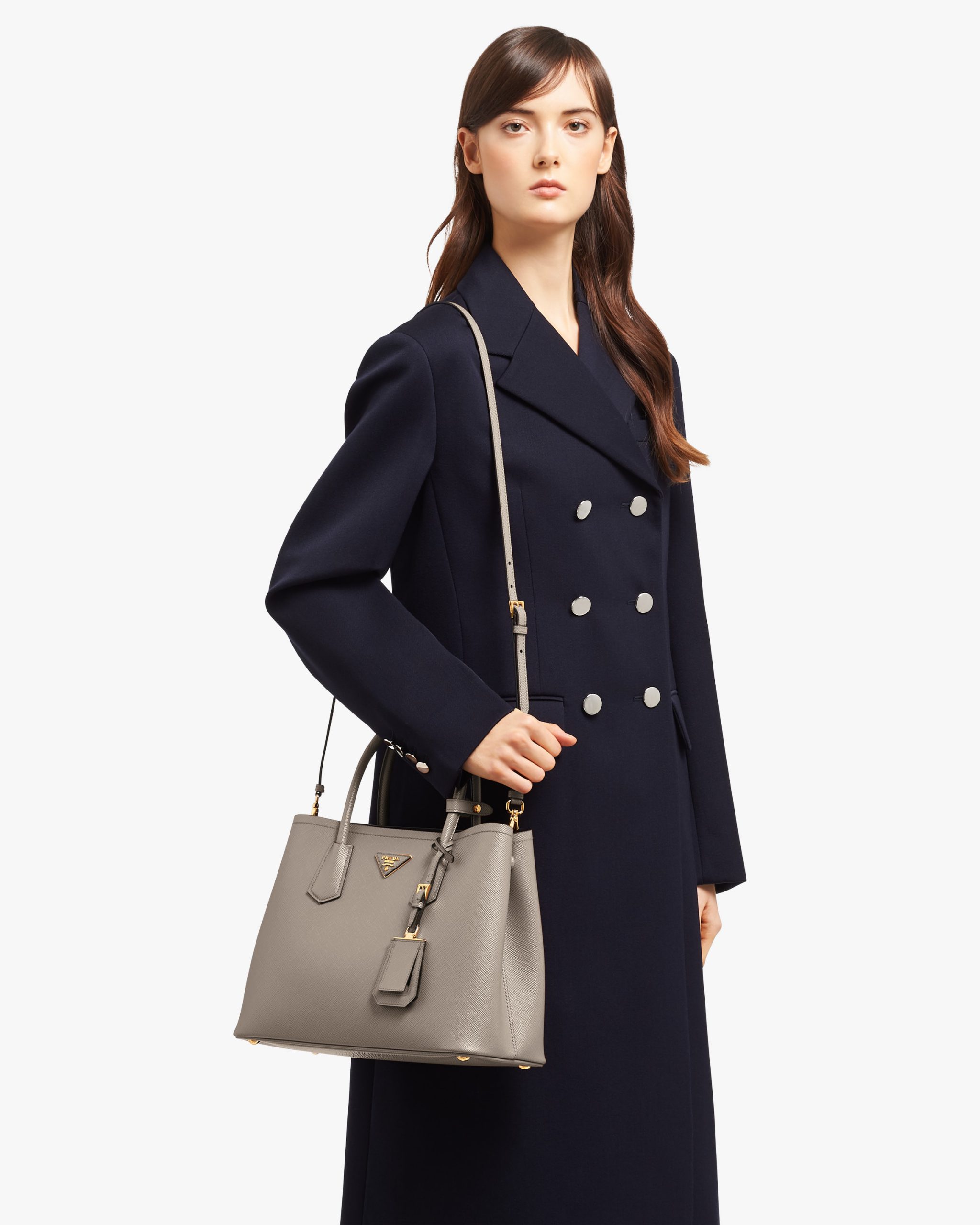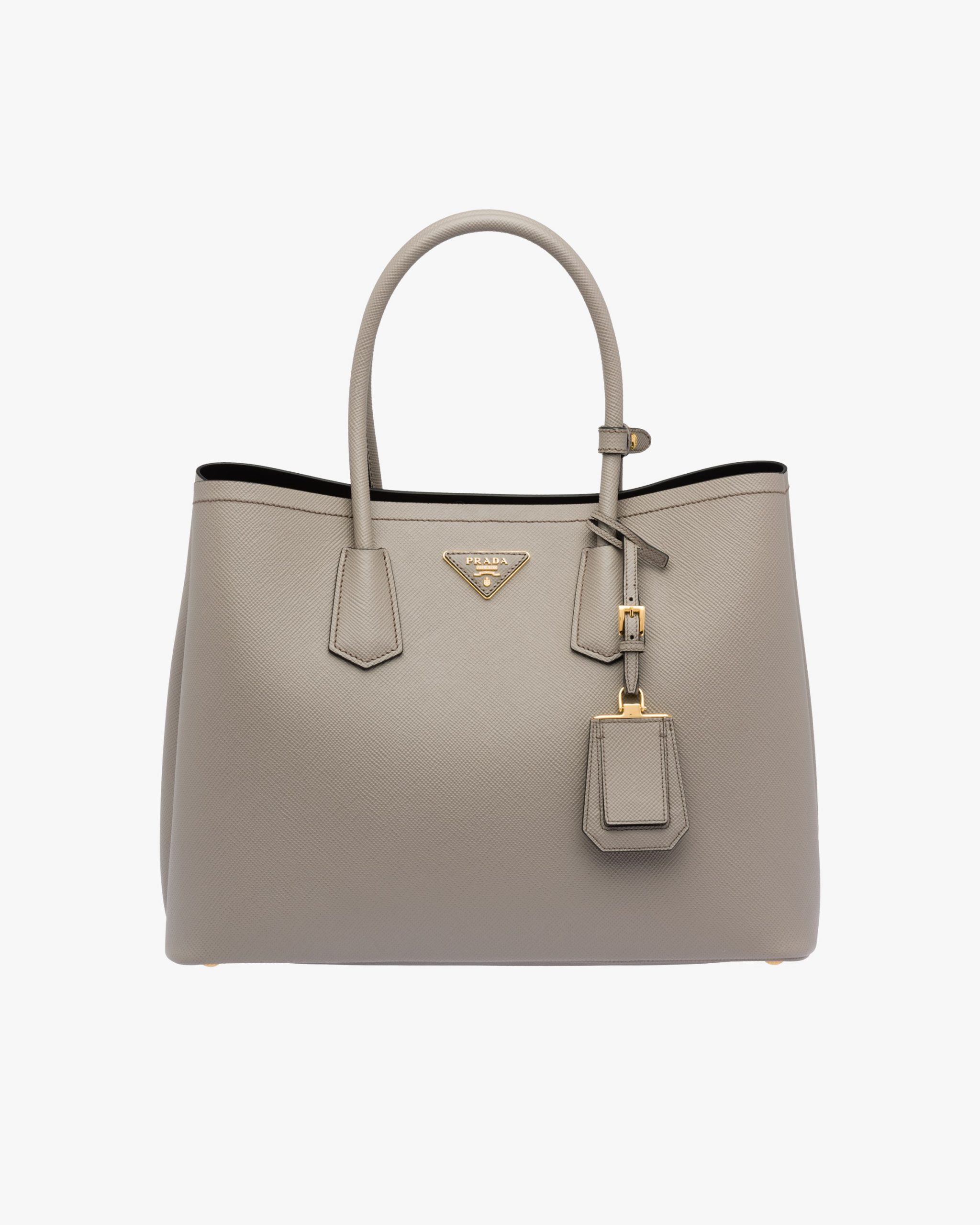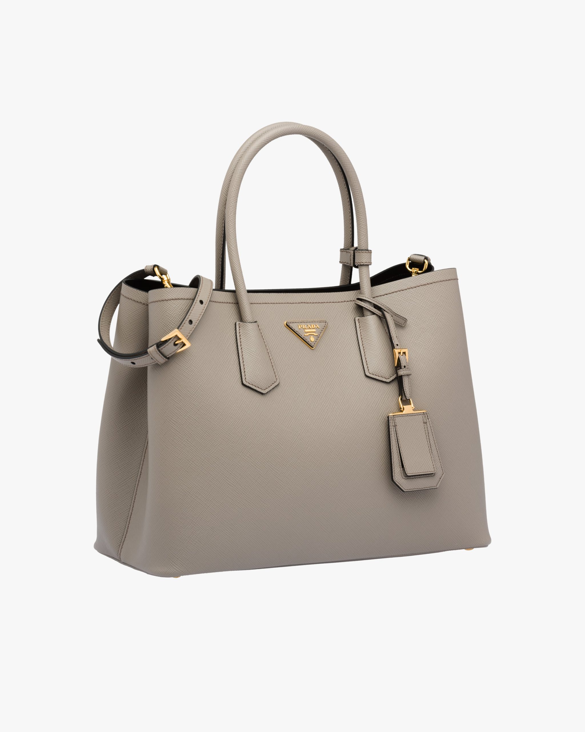 This Prada Double tote is crafted in Saffiano leather. It features a double handle, detachable shoulder strap and nappa leather lining, all accented with gold-toned hardware and the Prada logo.