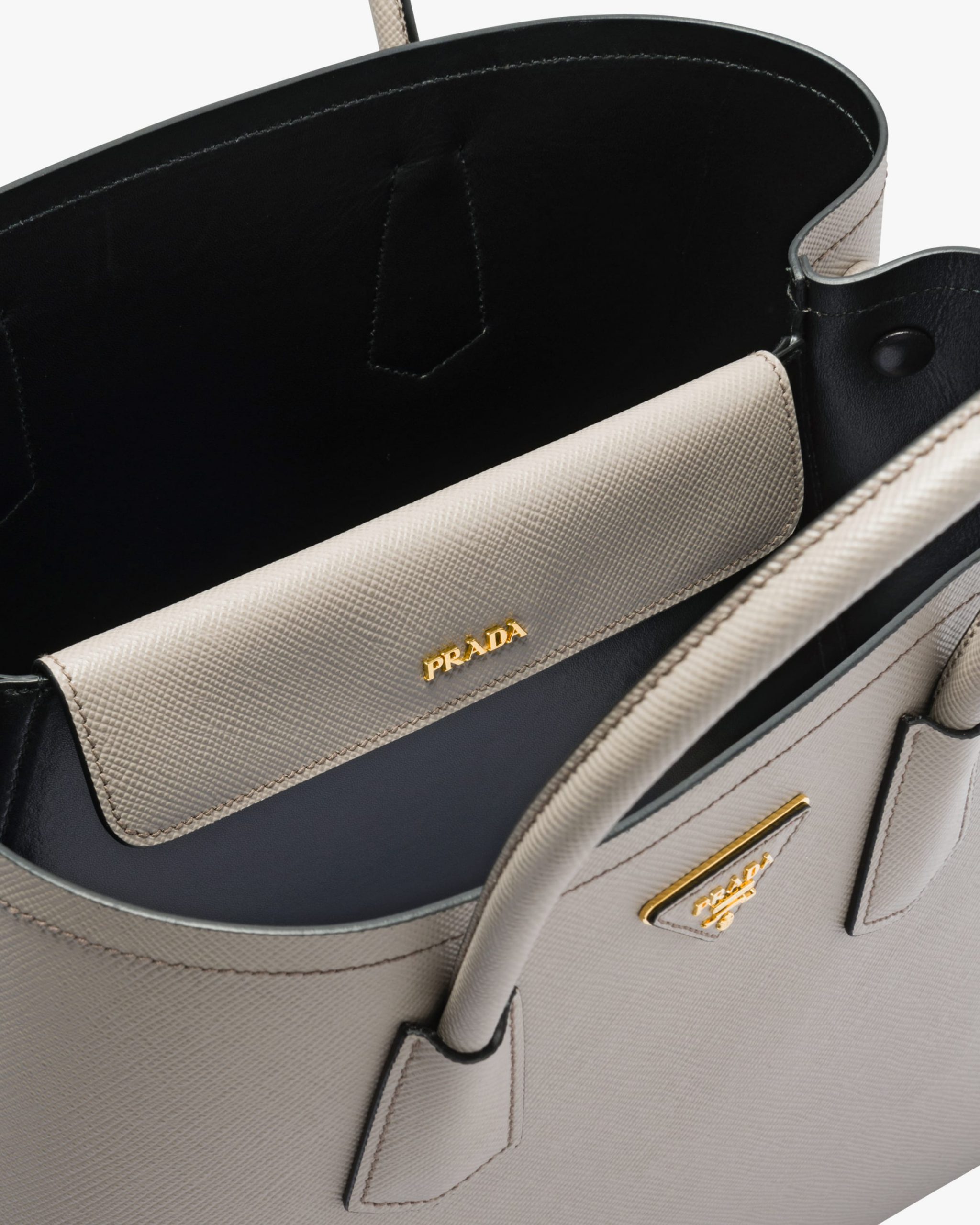 Clay/ Black Medium Saffiano Leather Double Prada Bag