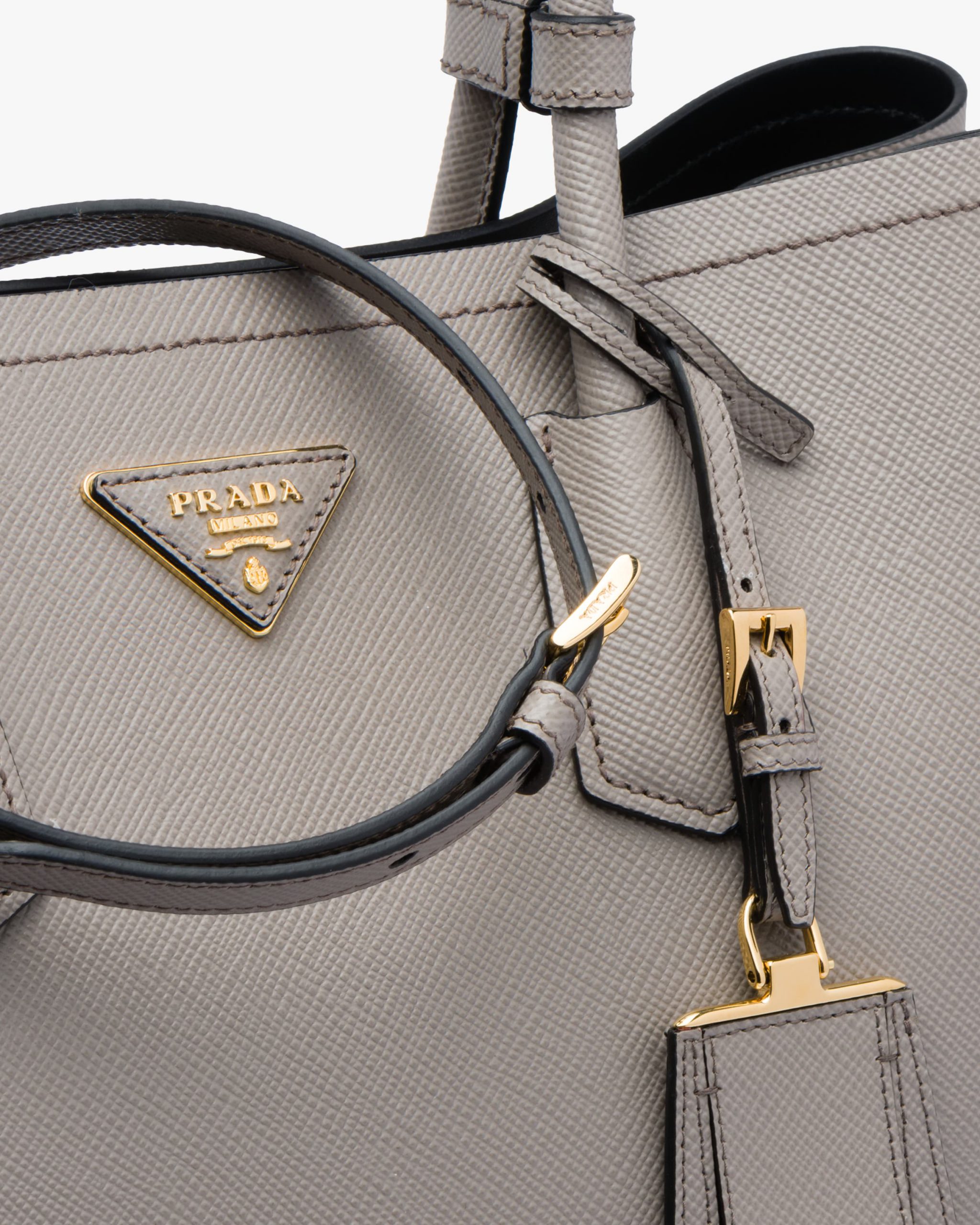 Be the first to review “Clay/ Black Medium Saffiano Leather Double Prada Bag”