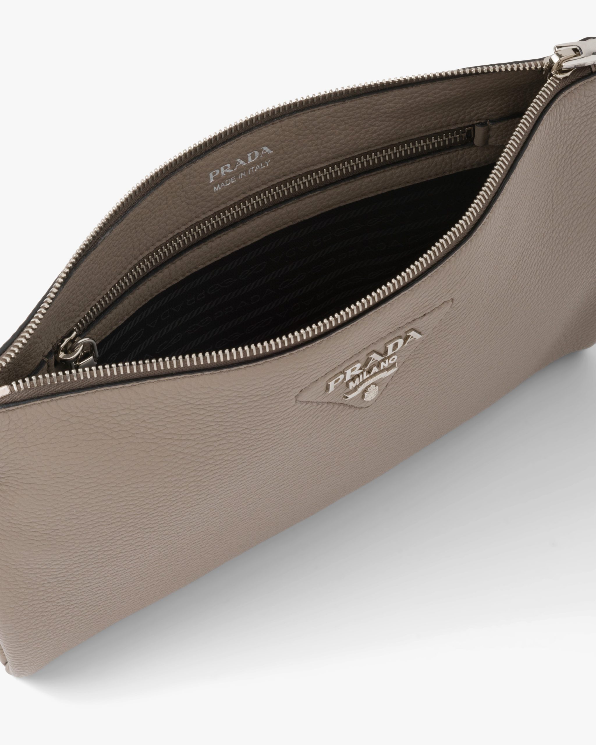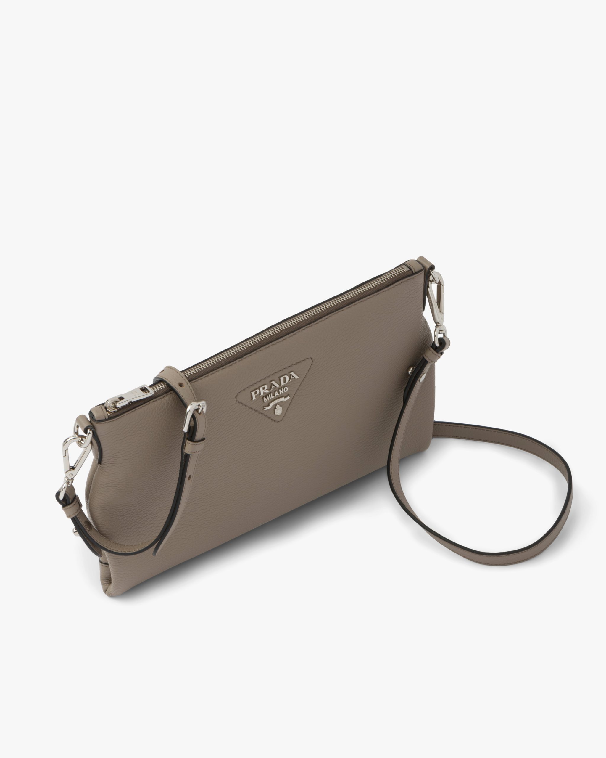 Clay Gray Prada Flou leather shoulder bag