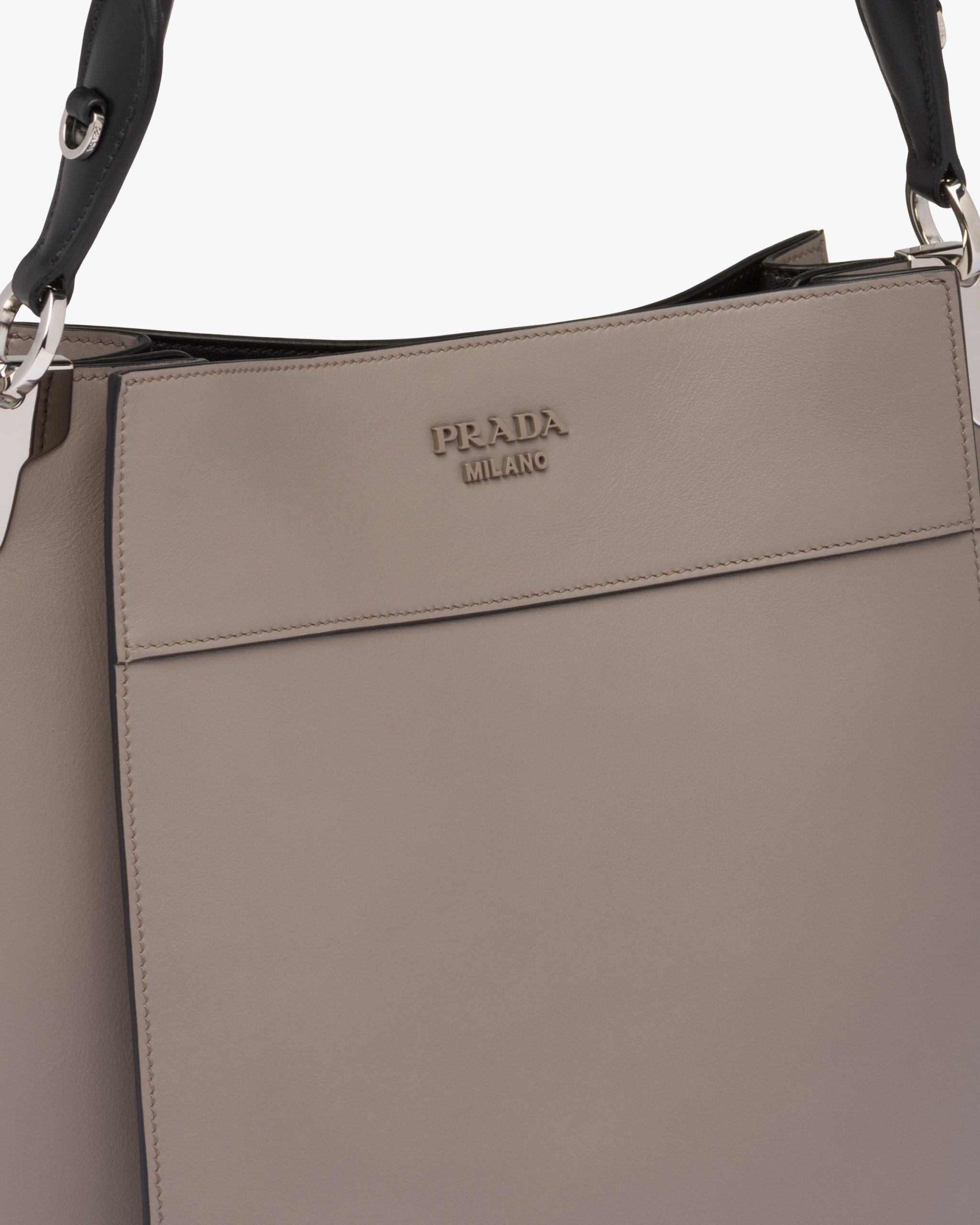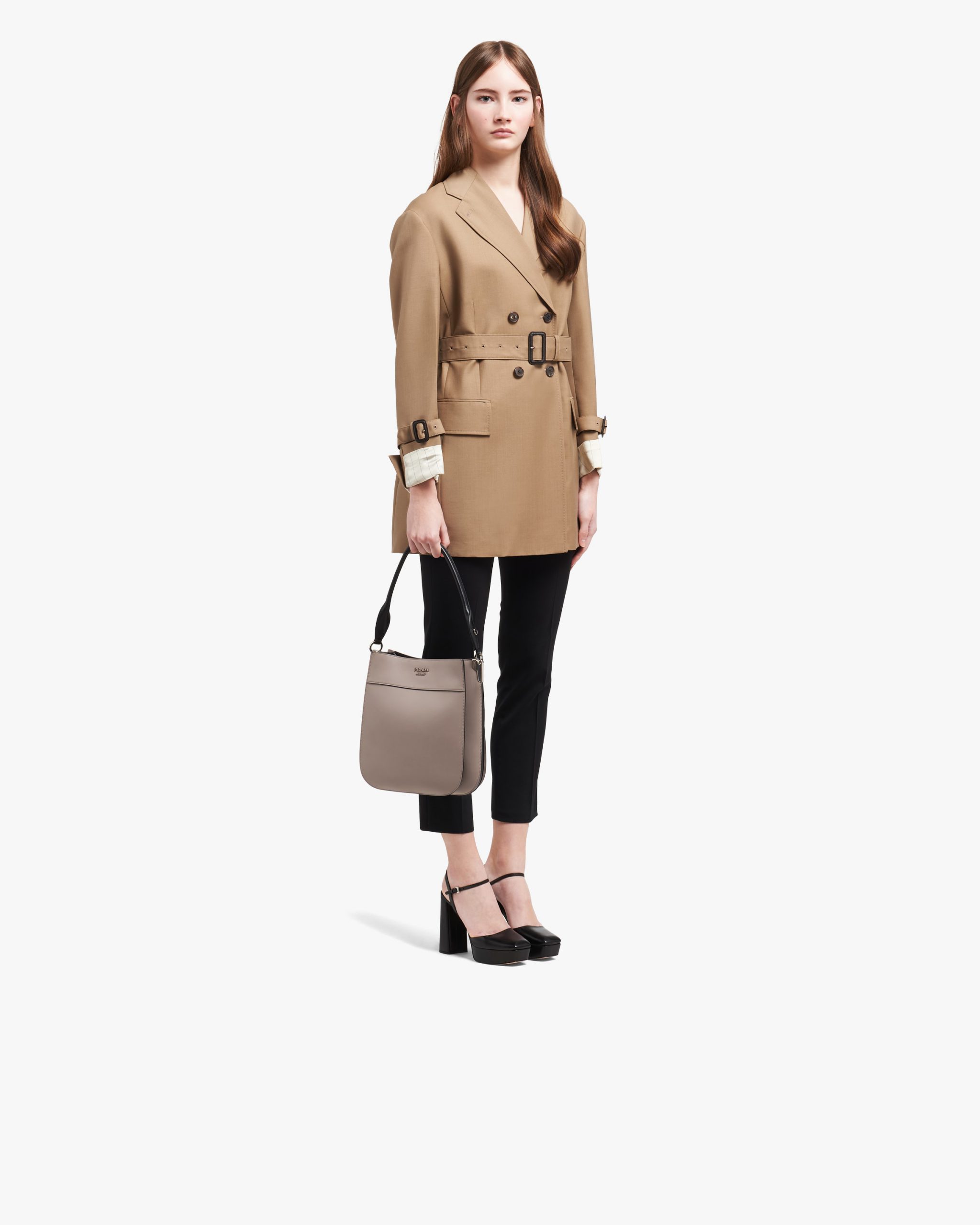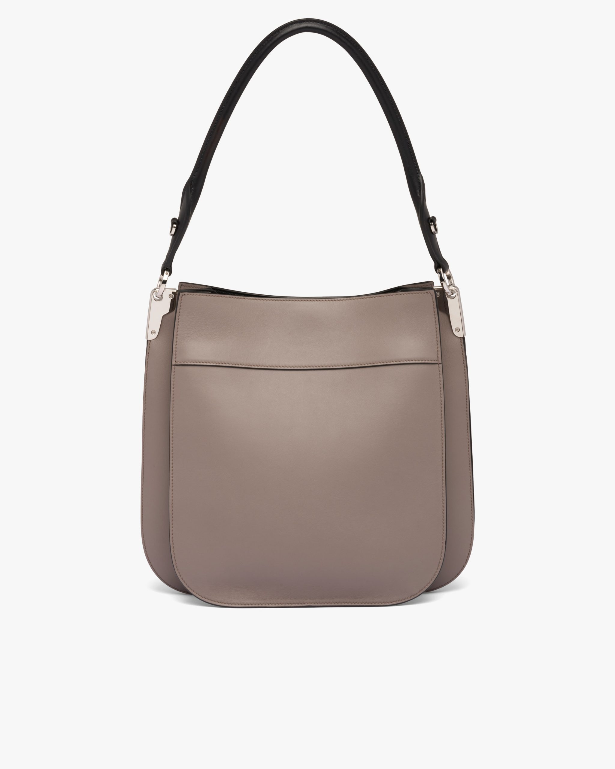 The Prada Margit shoulder bag has an iconic design. The leather bag comes with a shoulder strap.