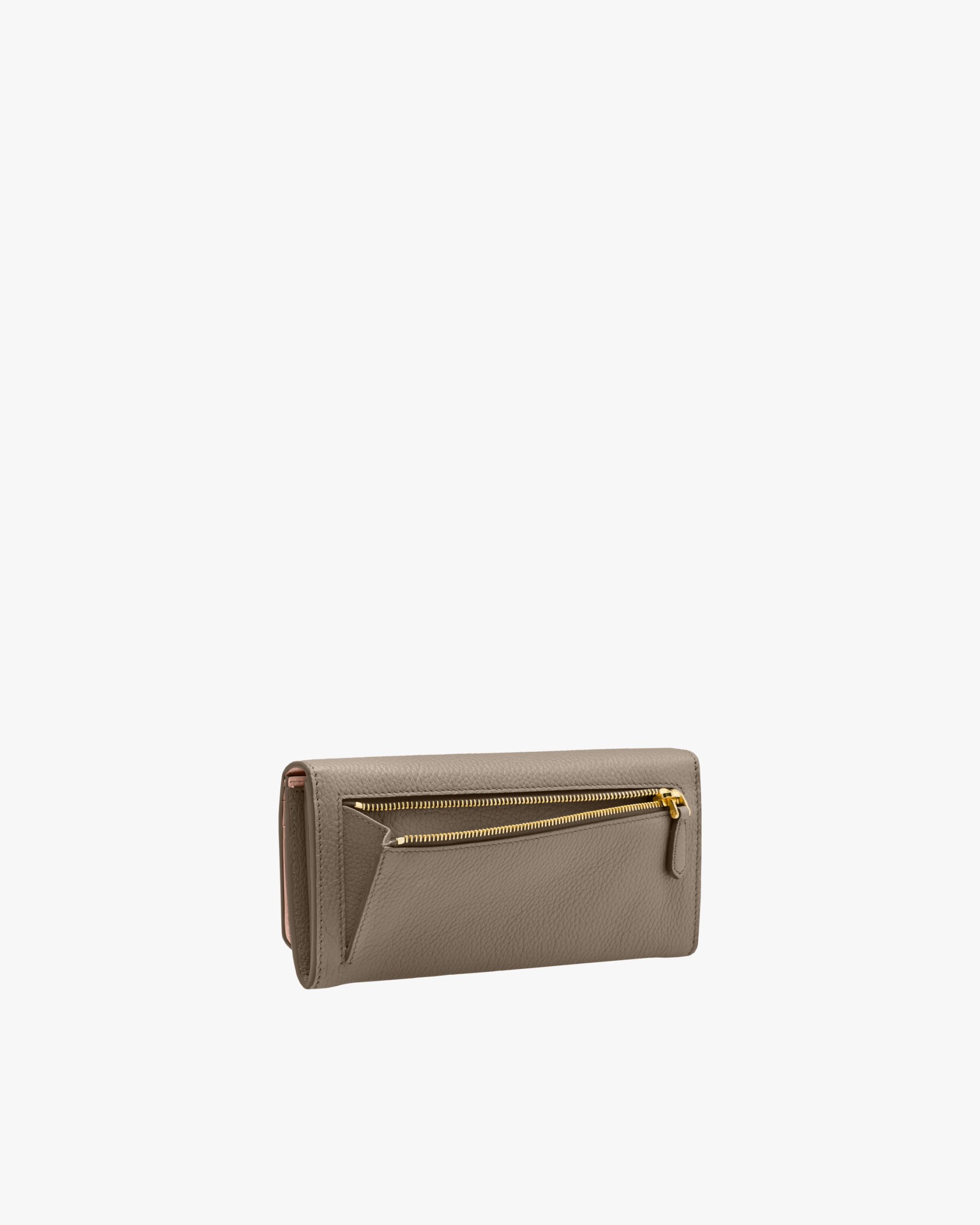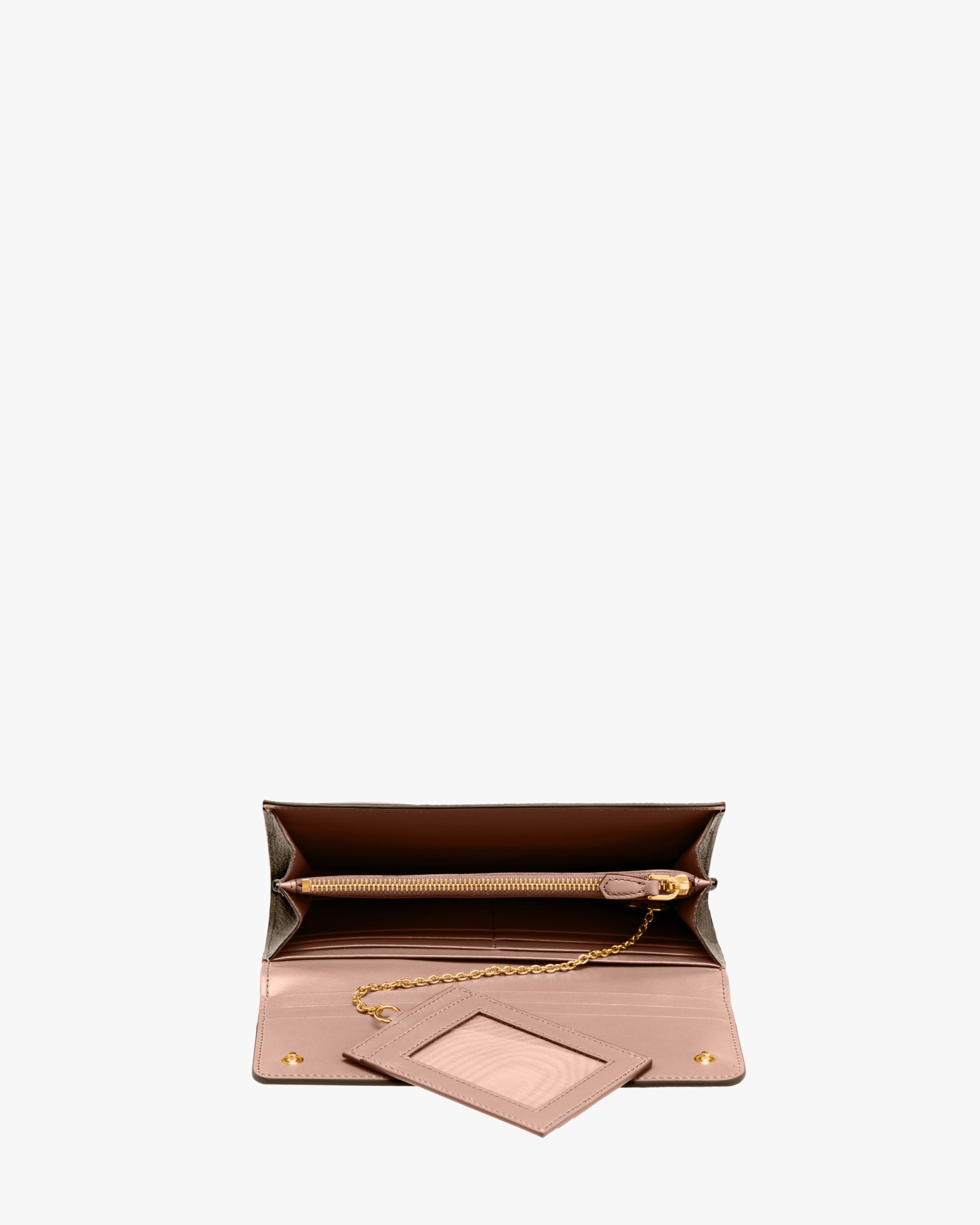 This flap wallet features lining in a contrasting color. The inside contains pockets, compartments and slots, as well as an extractable badge holder, while the outside is embellished with gold-toned Prada lettering.