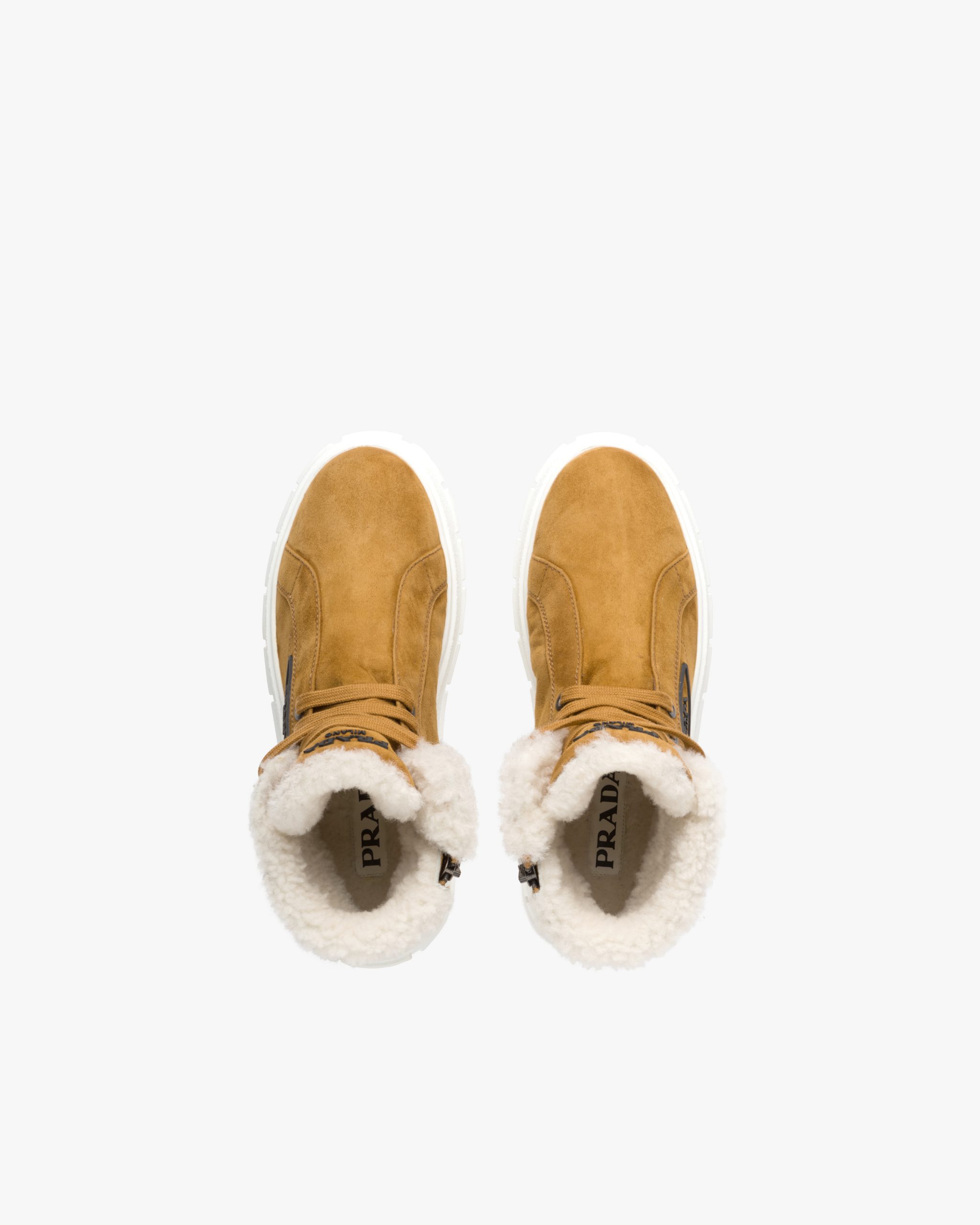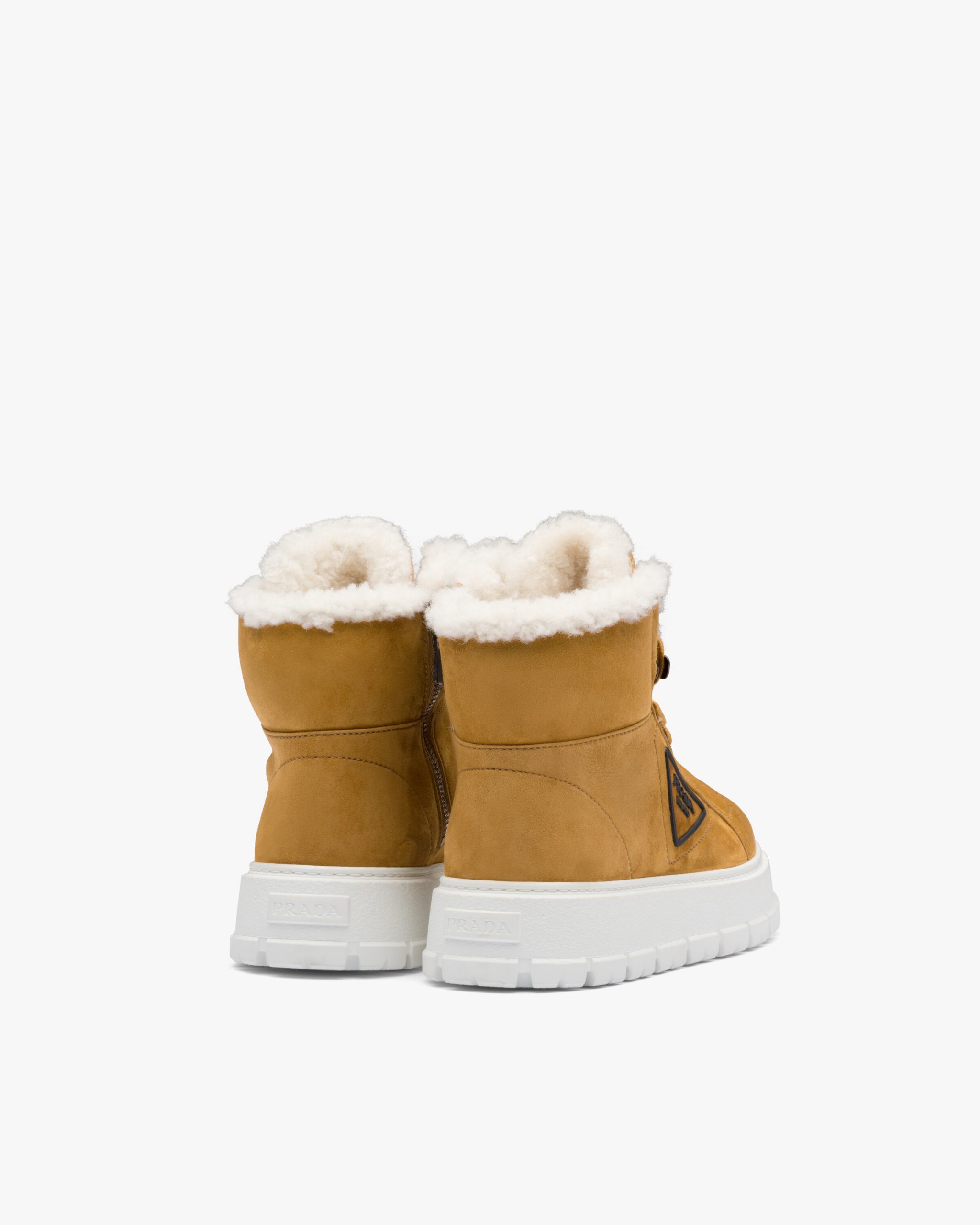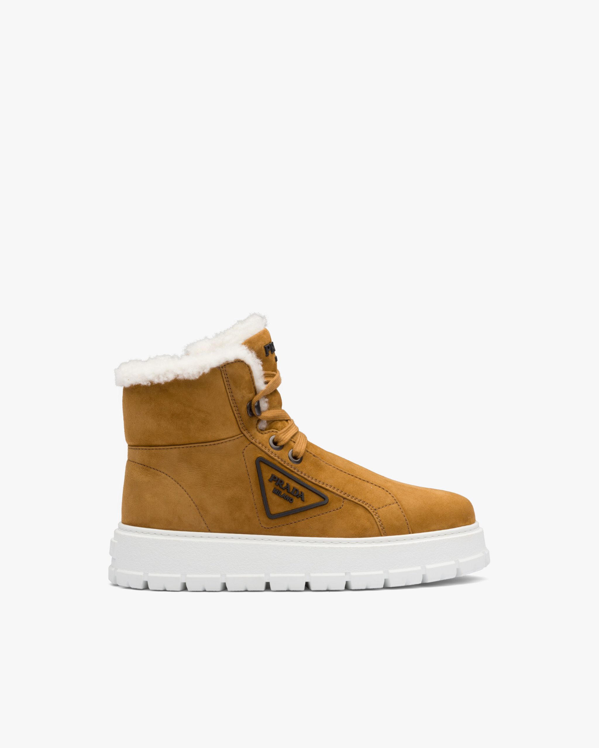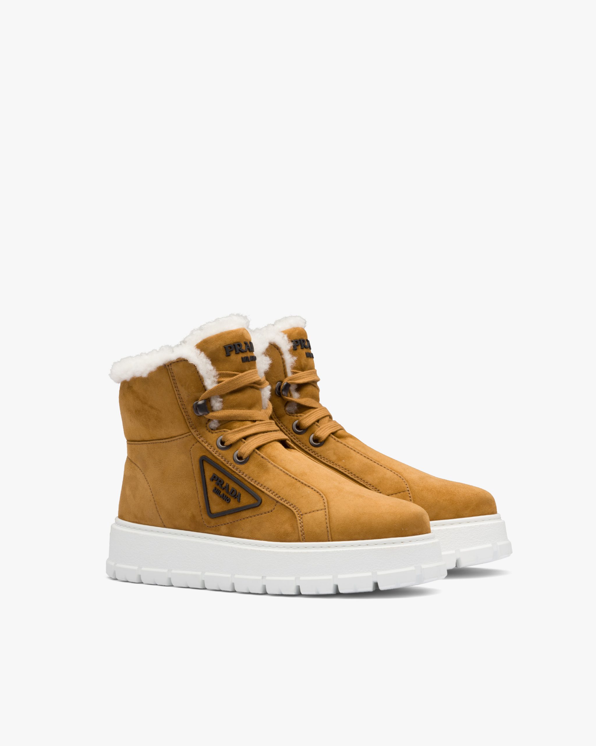 Mountain-inspired details are reinterpreted through a modern design in these shearling lace-up booties. The three-dimensional rubber logo accents the footwear.