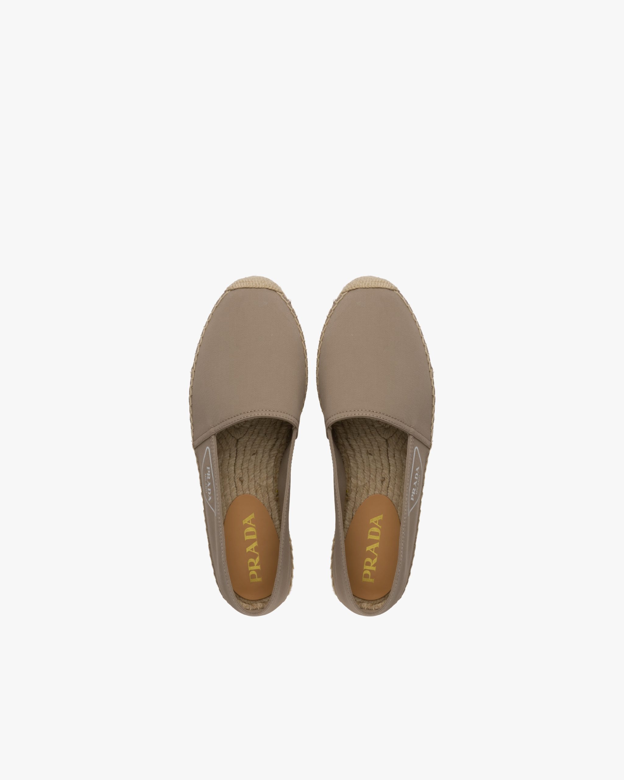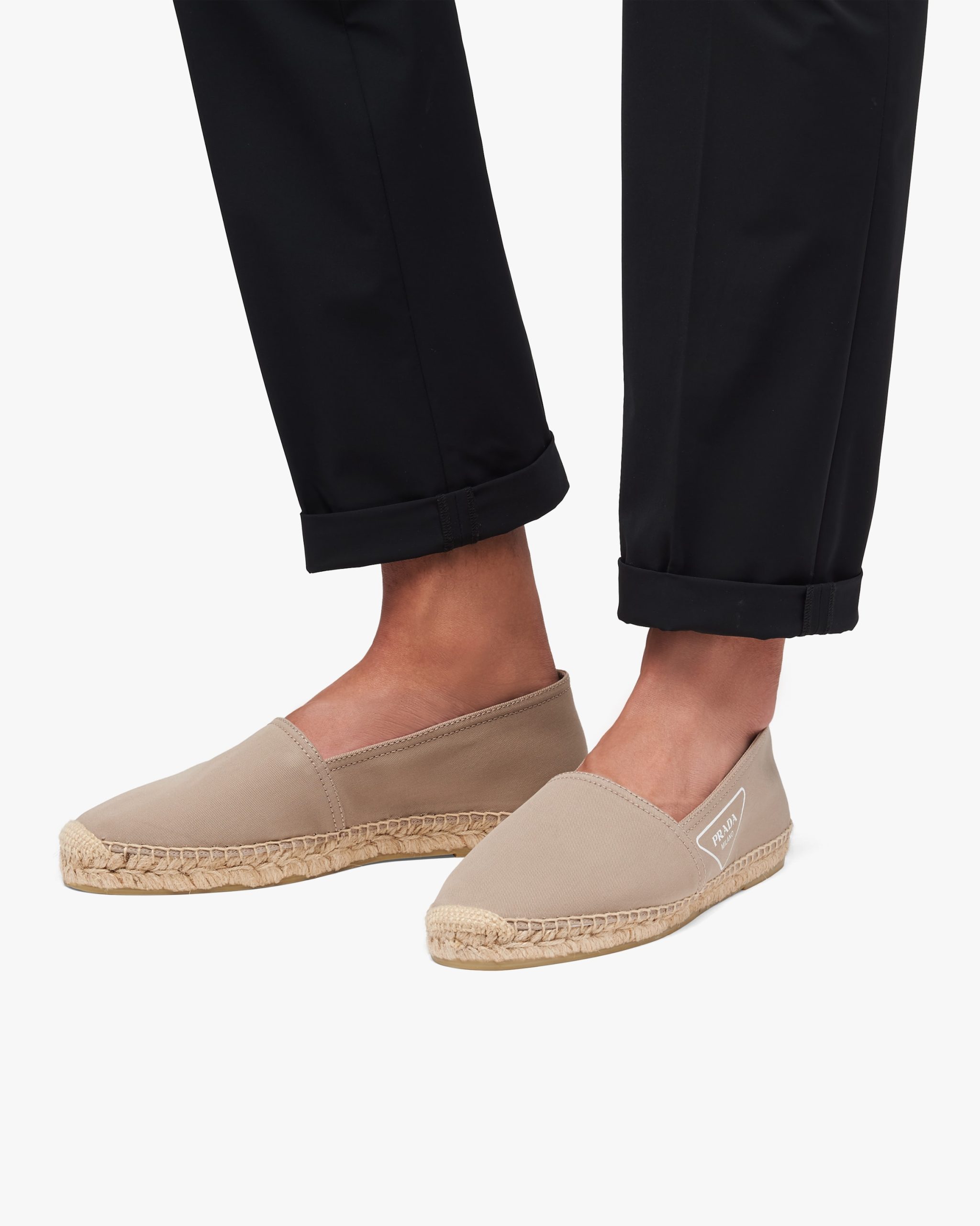 The classic espadrille style is reinterpreted with the Prada logo and a hand-made hemp mid-sole stitched directly to the upper.
