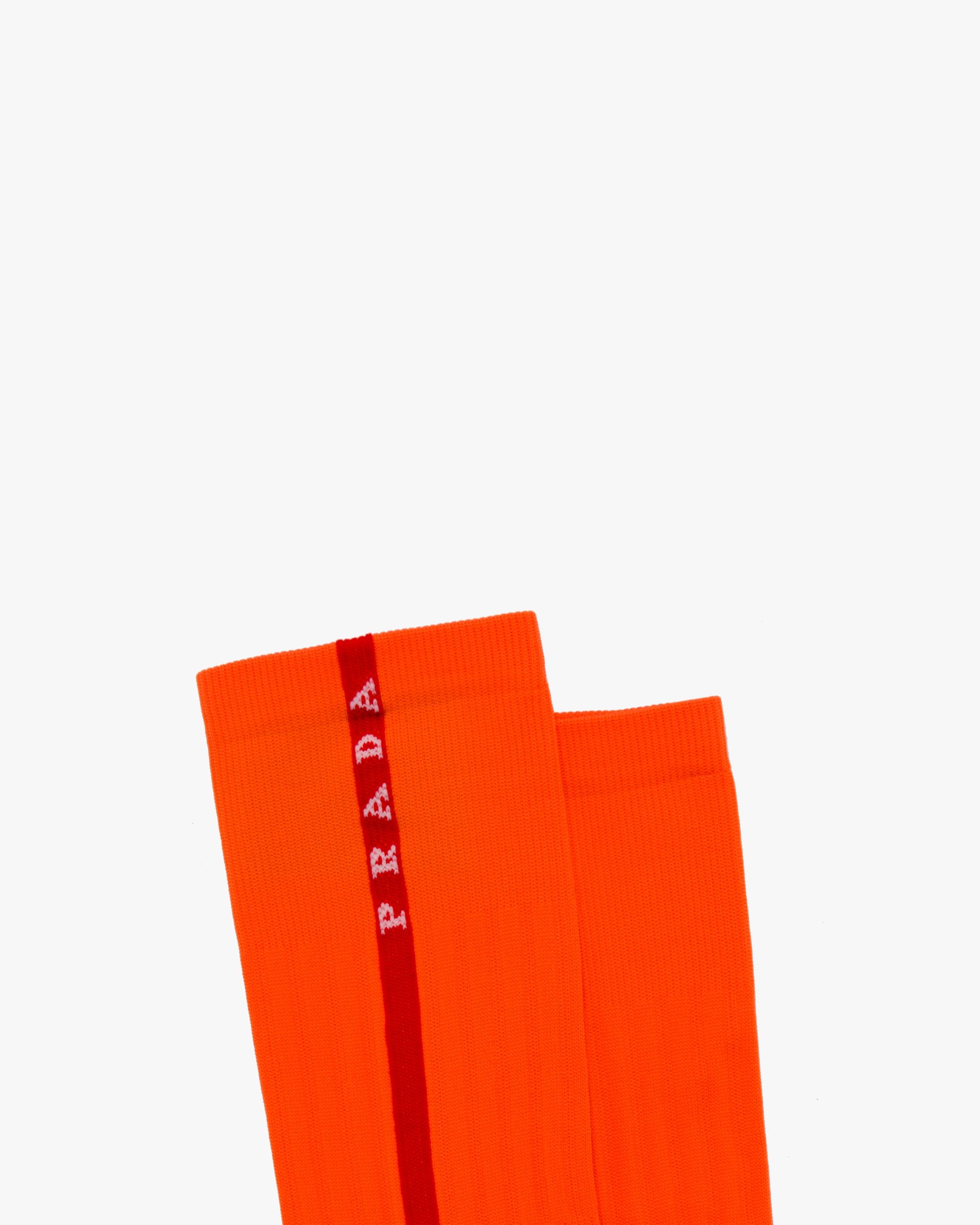 Ribbed knit nylon socks with Prada Linea Rossa intarsia logo.