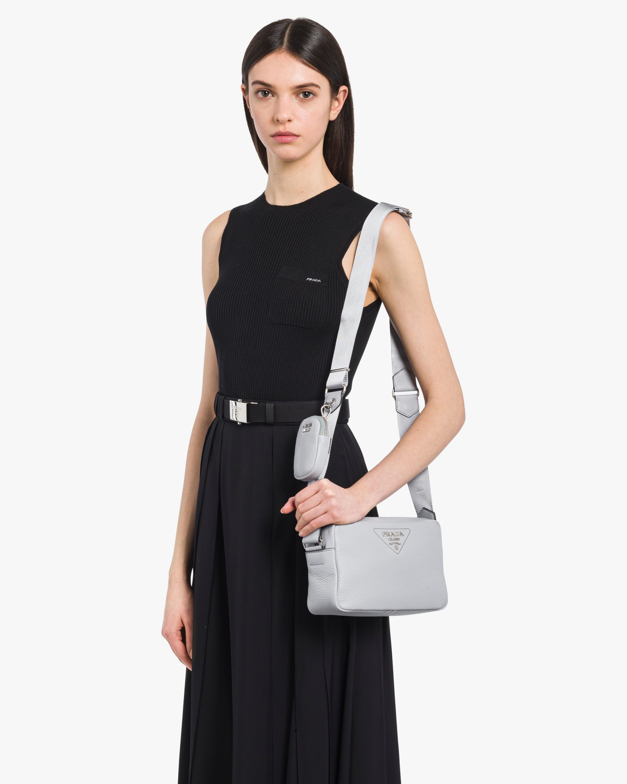 • Prada logo nylon lining with zipper pocket