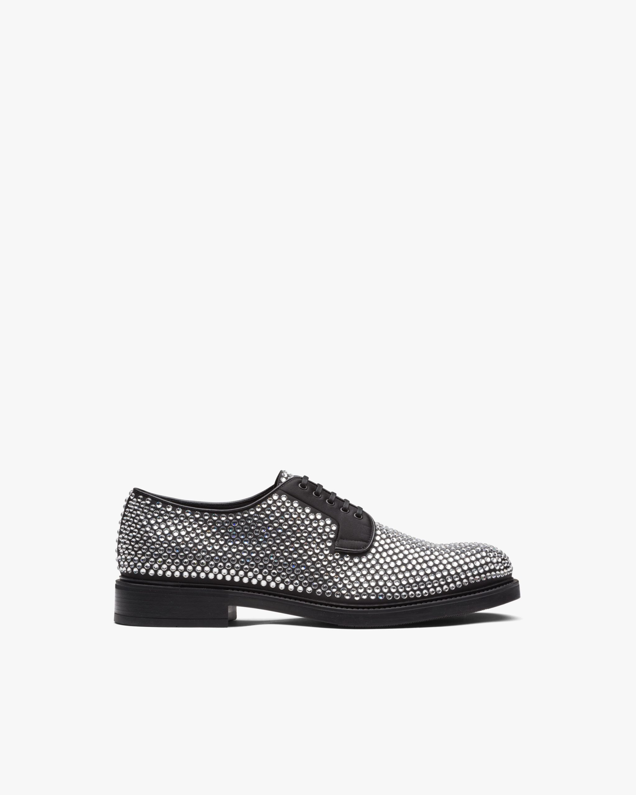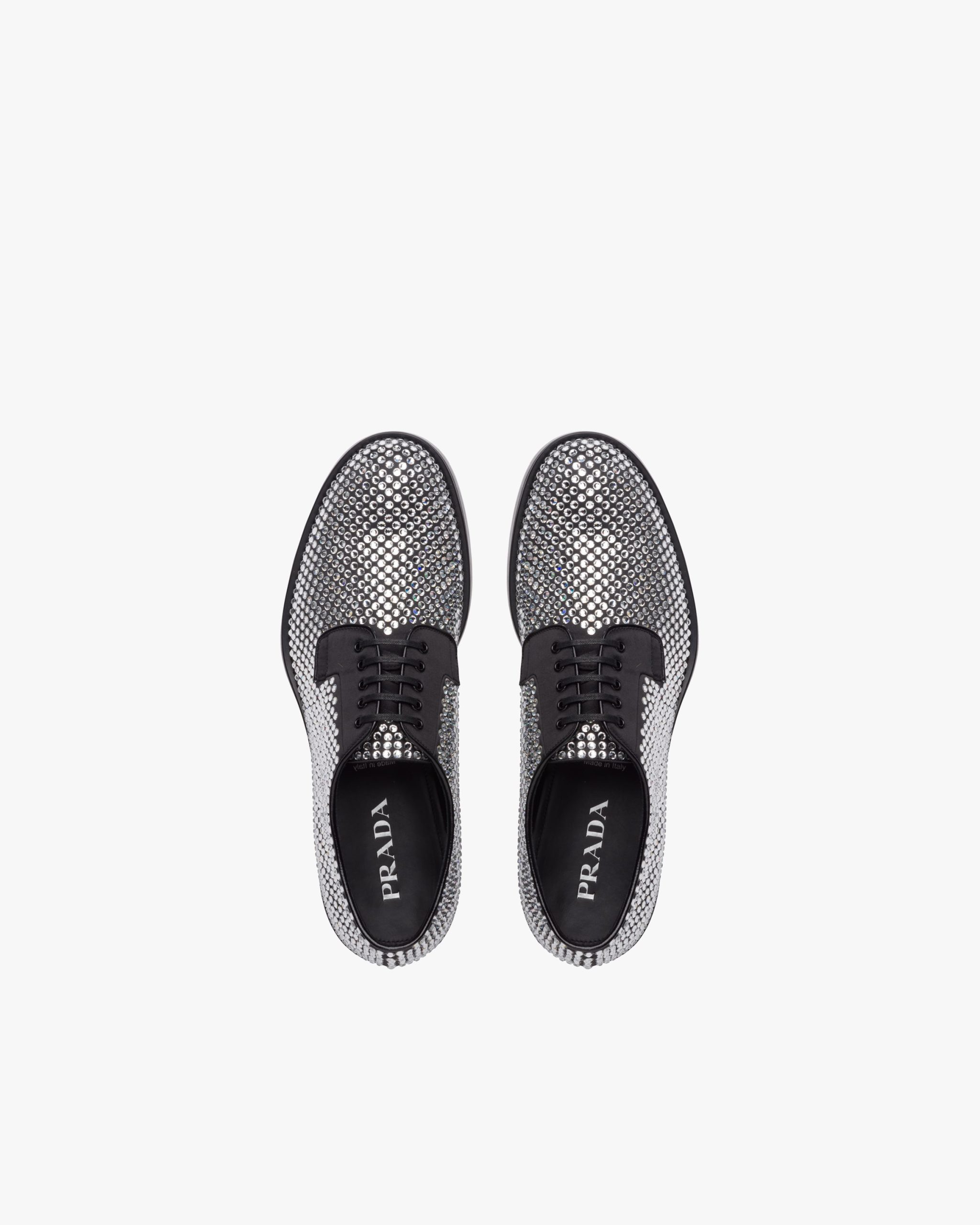 A sea of precious crystals illuminates these shoes with elegant and refined allure. The classic artisan design of Prada shoes meets exquisite workmanship to create a unique line.