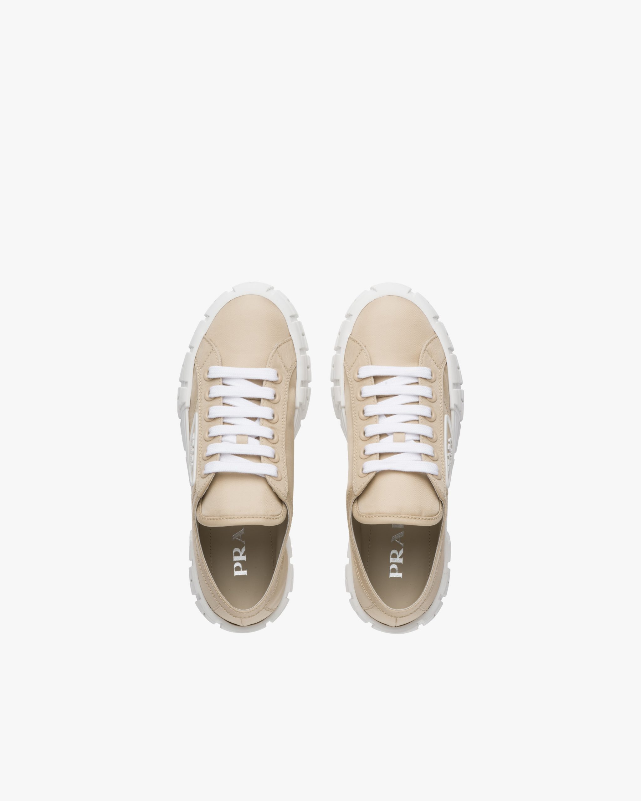 An innovative design with a retro soul defines these Double Wheel sneakers. A chunky textured sole is combined with the most classic gabardine upper featuring the rubber triangle logo.