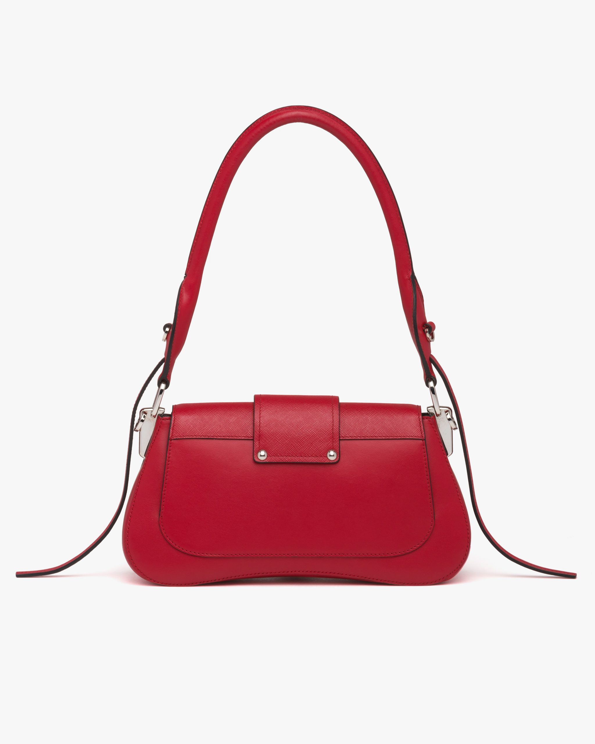 A sinuous line designs the silhouette of the Prada Sidonie bag. Made of leather, it is characterized by the front strap.