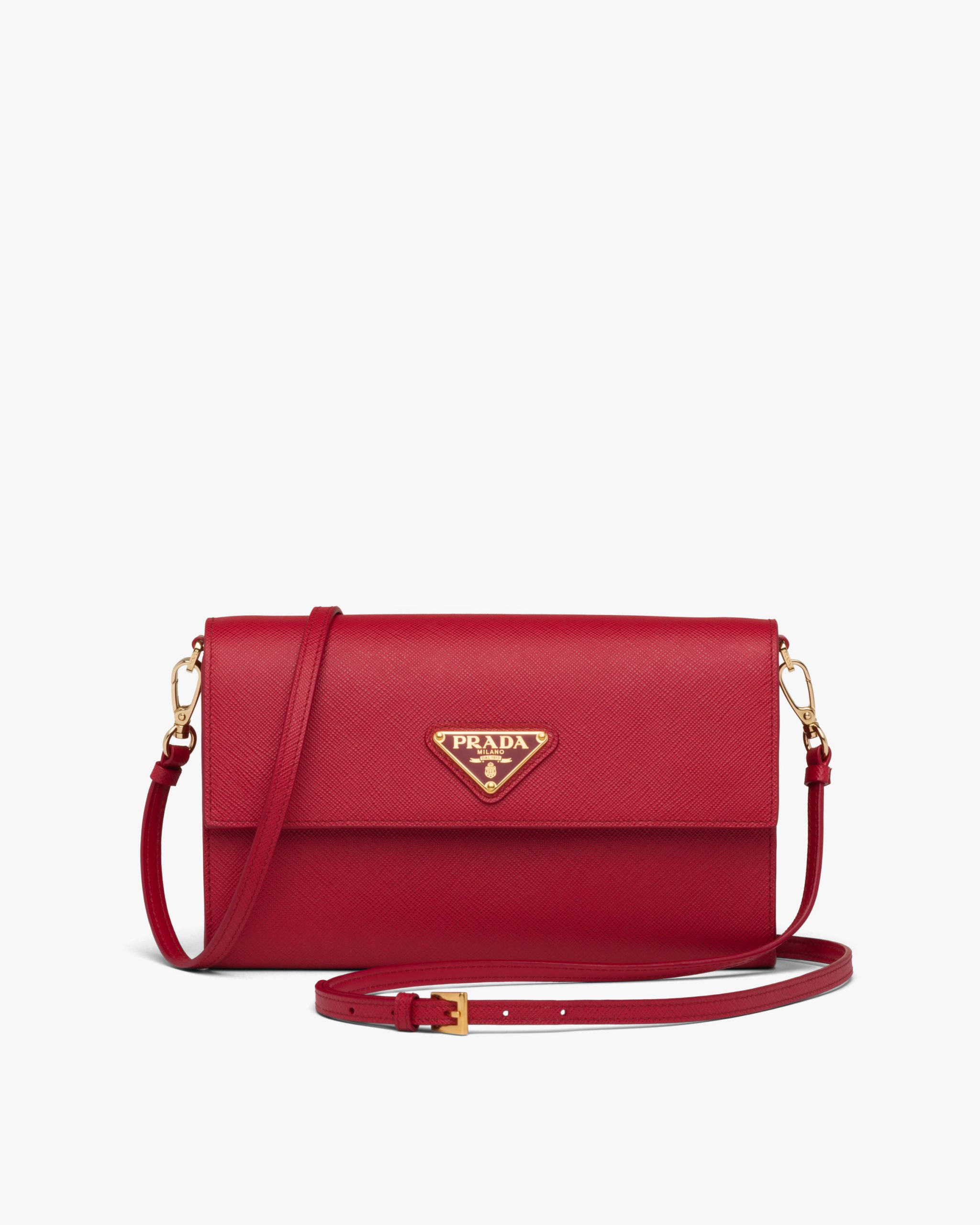 Fiery Red Saffiano and leather wallet with shoulder strap