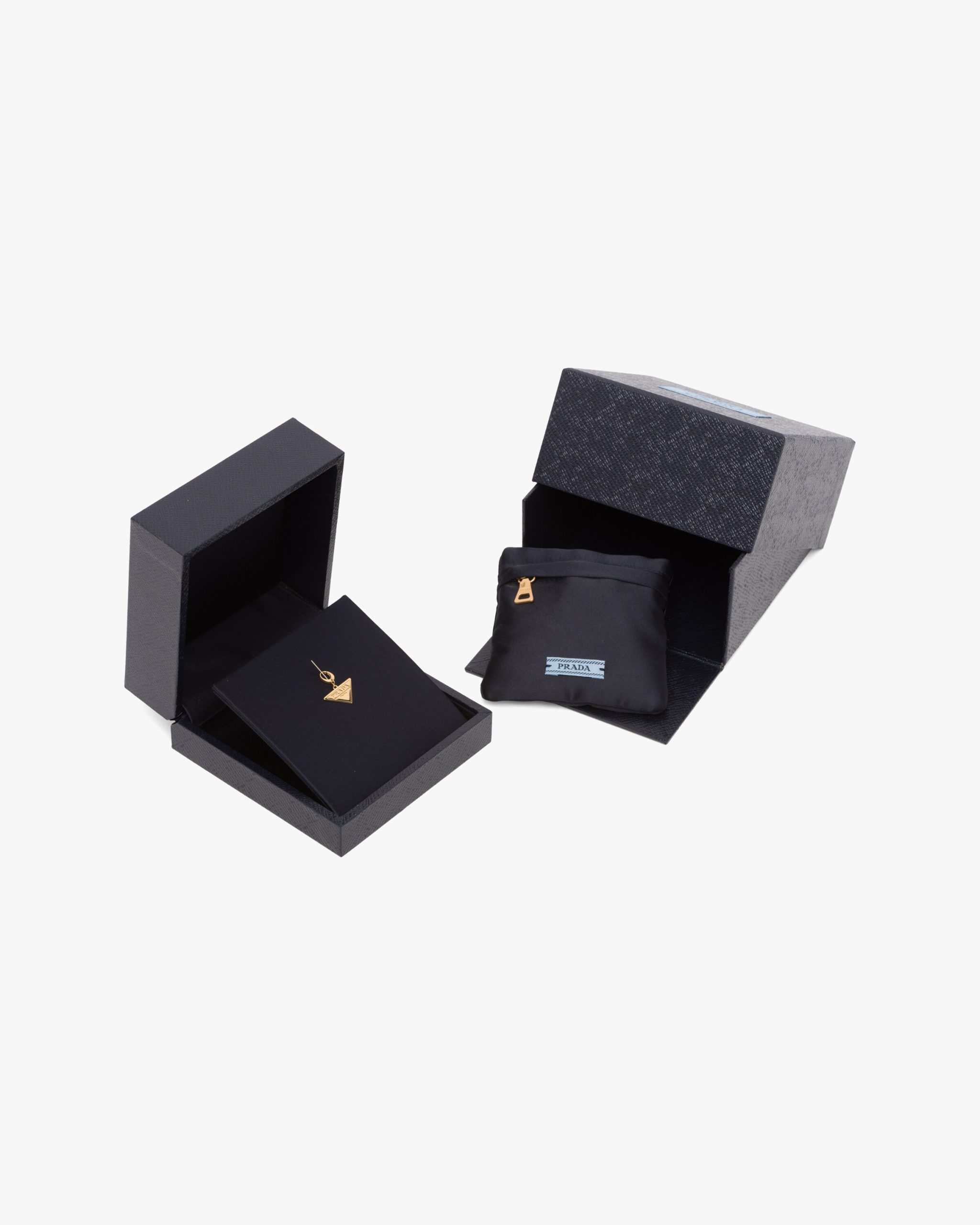 The iconic Prada triangle gives shape to this gold pendant.