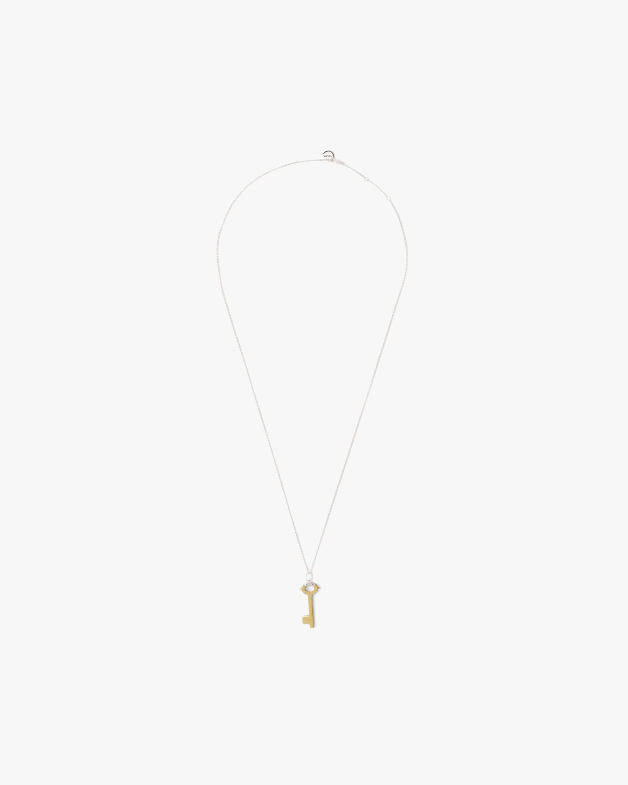 The elegant yellow gold chain is decorated with a precision cast key-shaped pendant in yellow, white and rose gold.