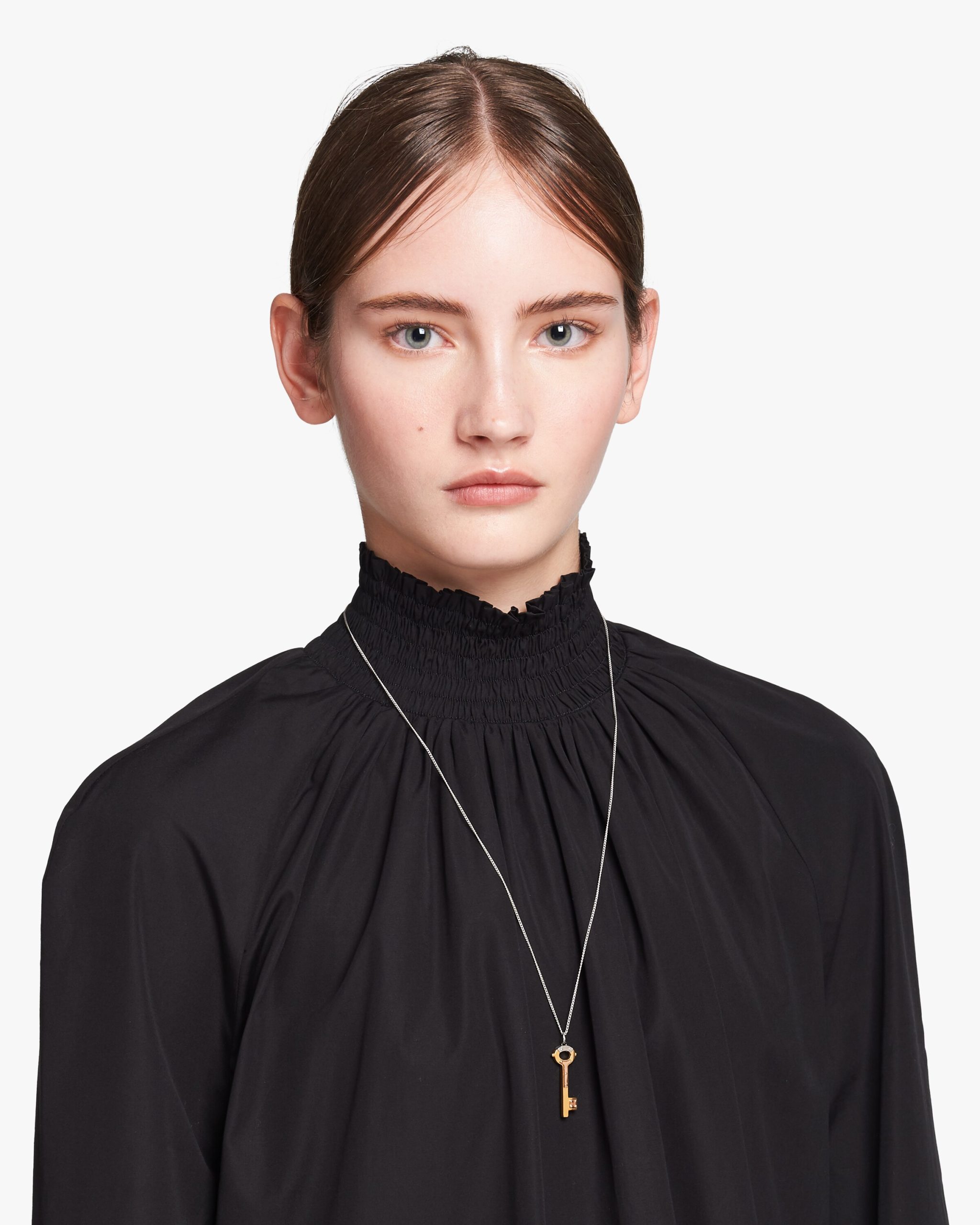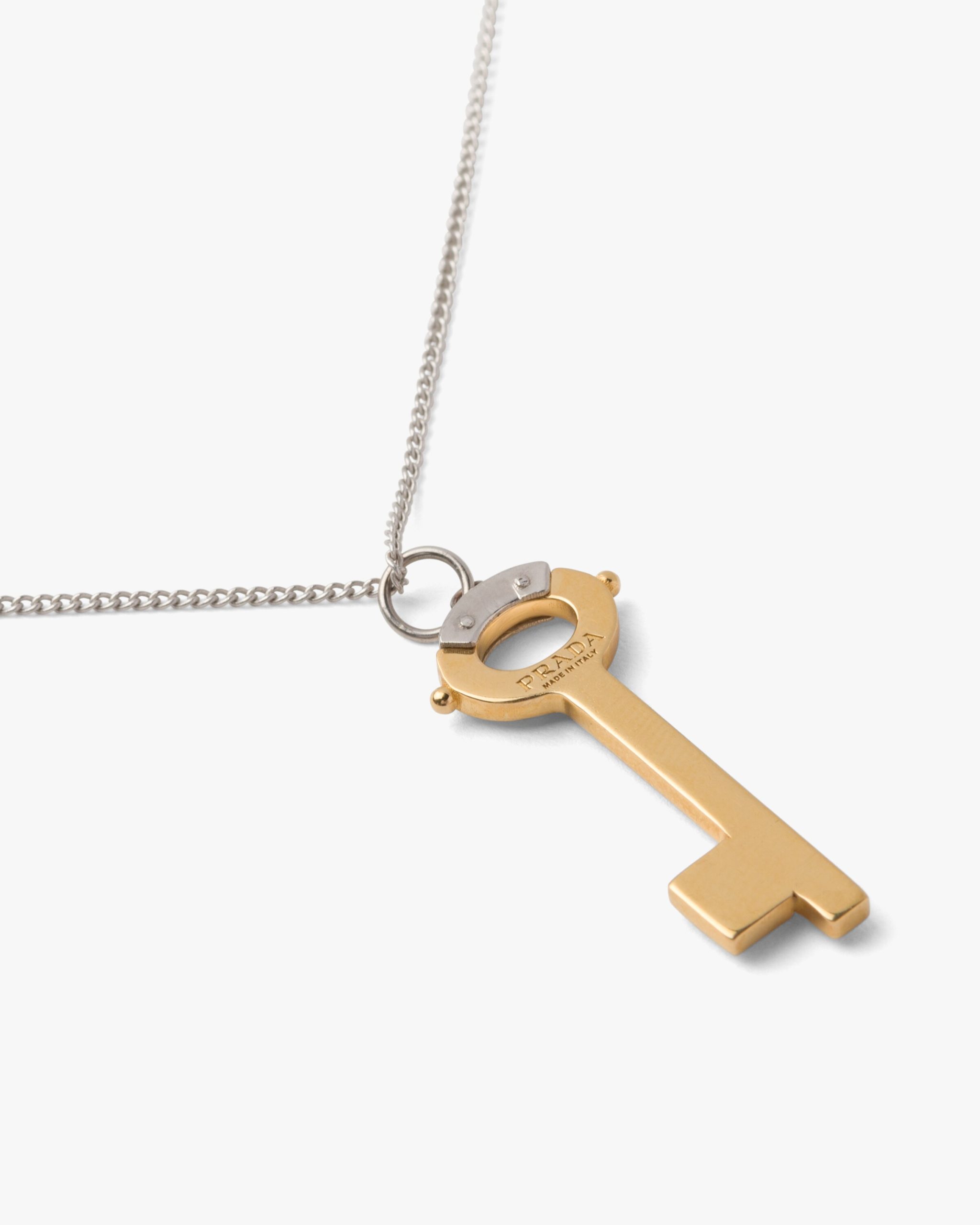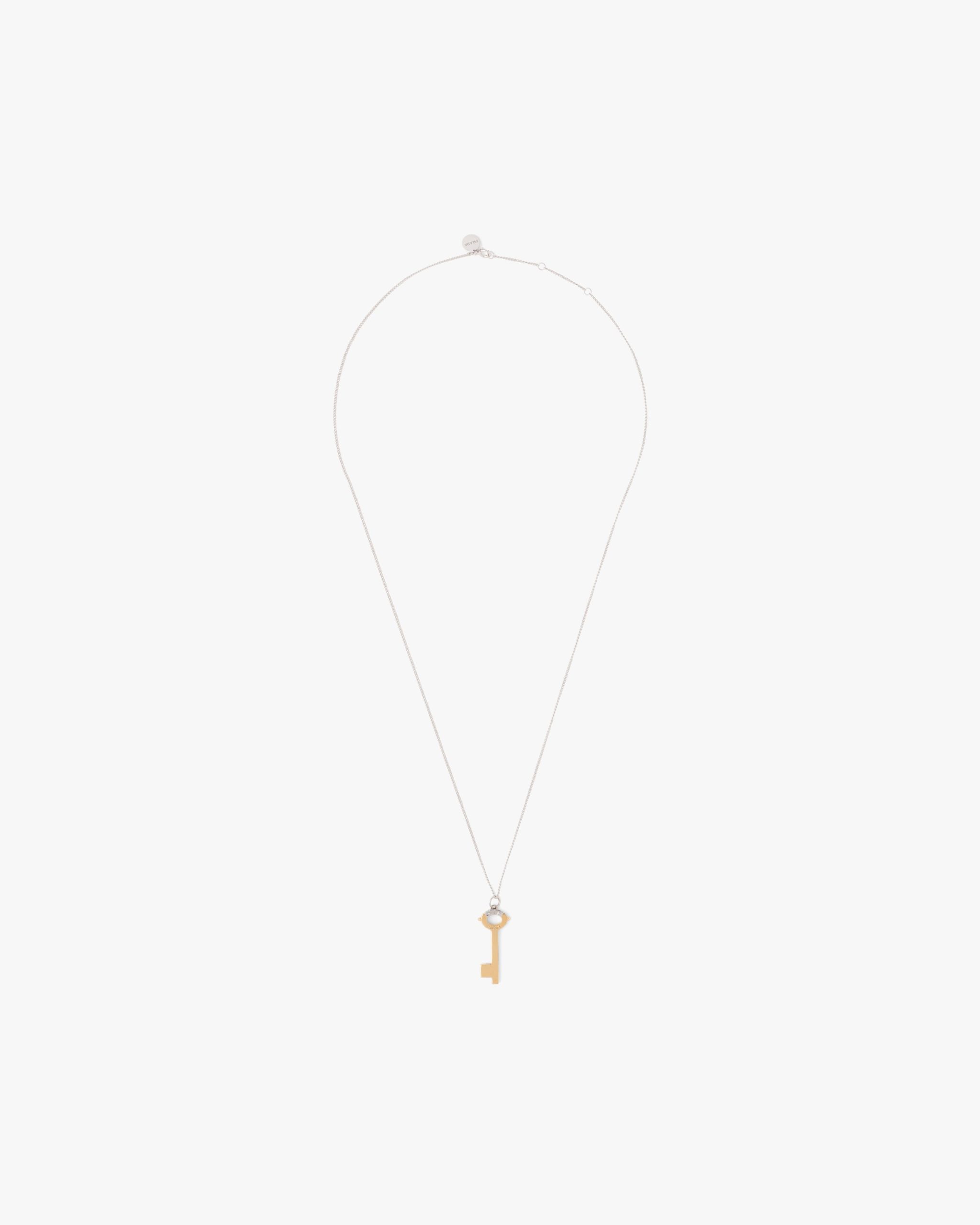 This key-shaped pendant decorating the necklace comes in yellow, white and rose gold.