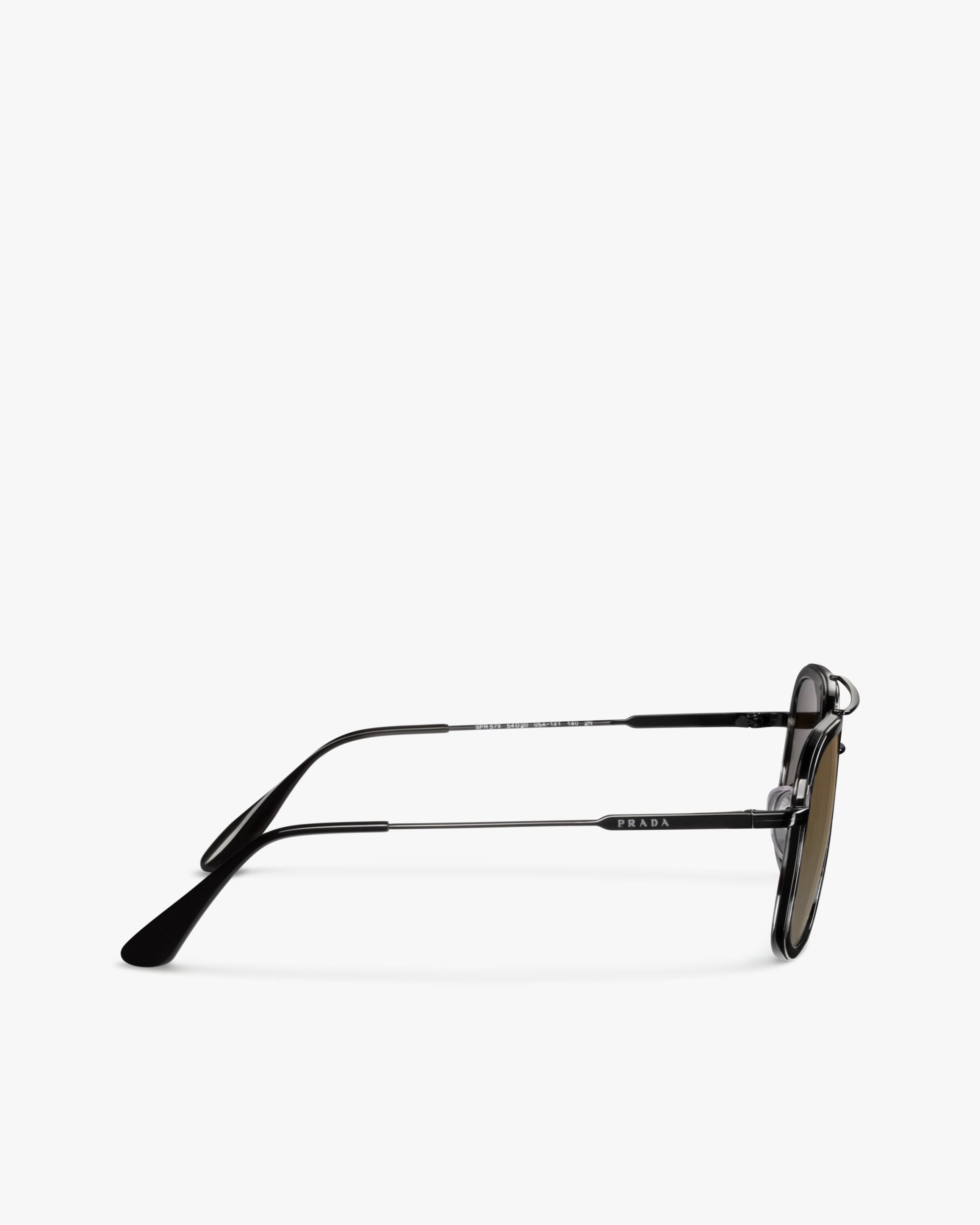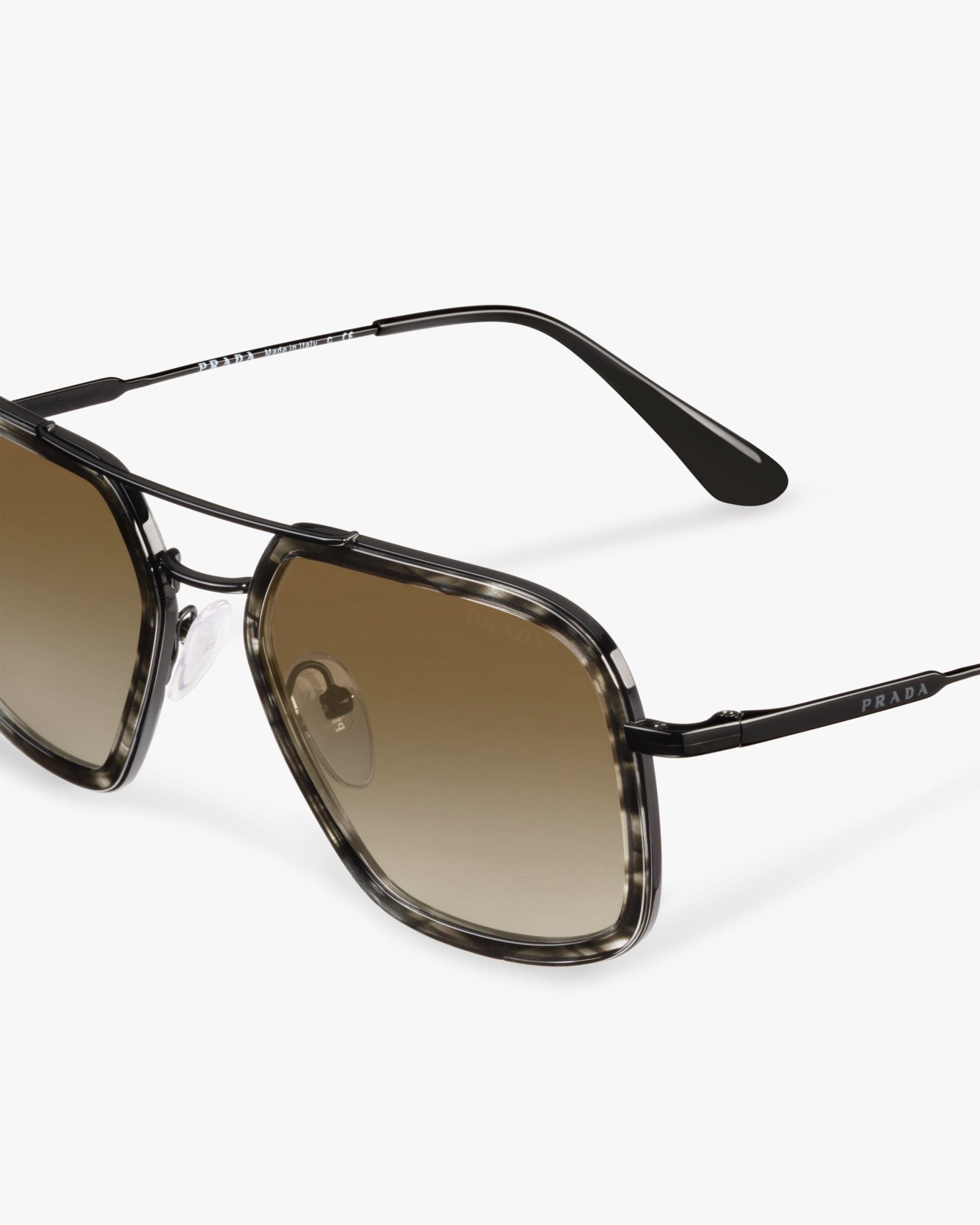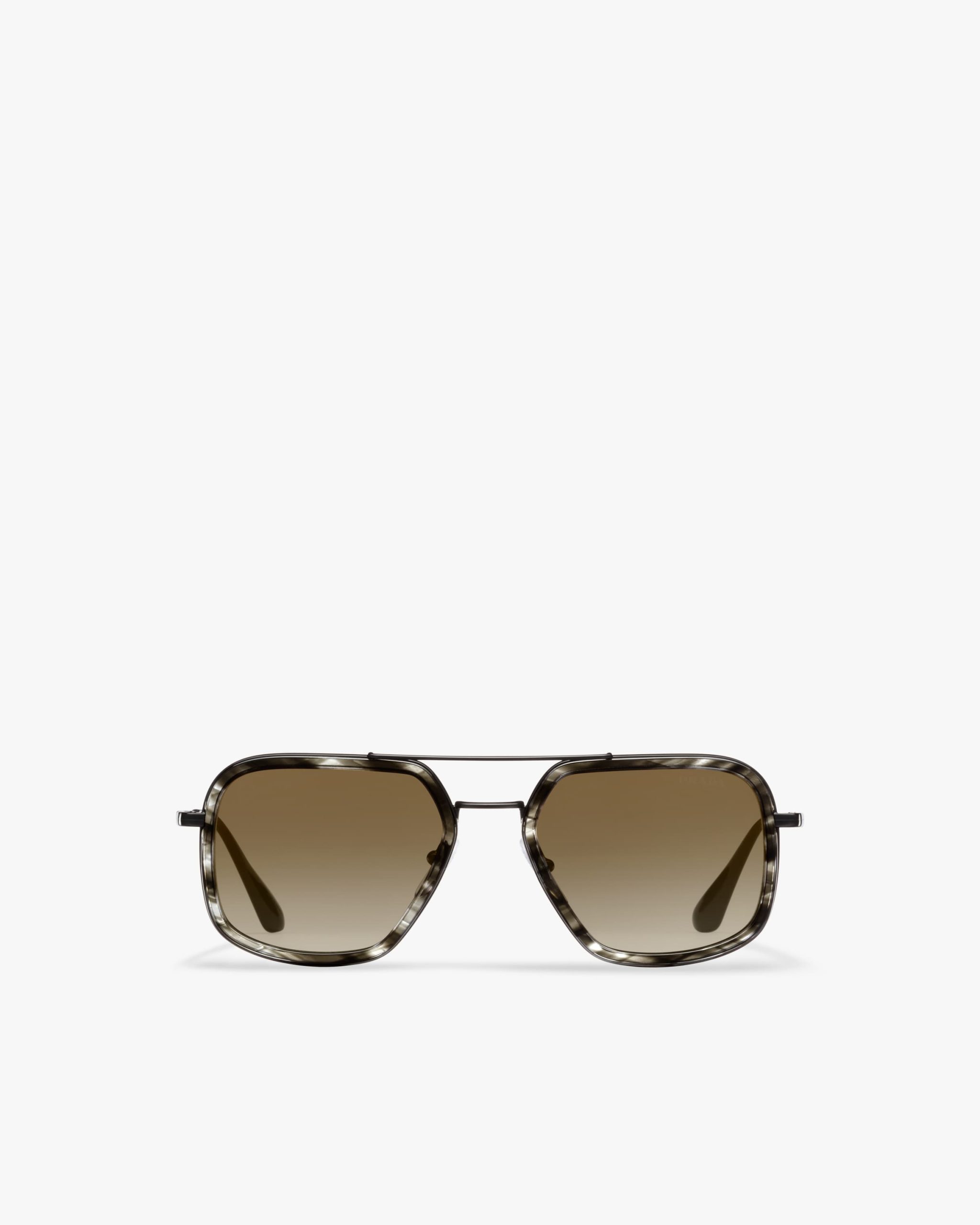 These sunglasses are defined by their rectangular silhouette elegant acetate rims and a double metal bridge with a contemporary touch. Prada lettering logo.