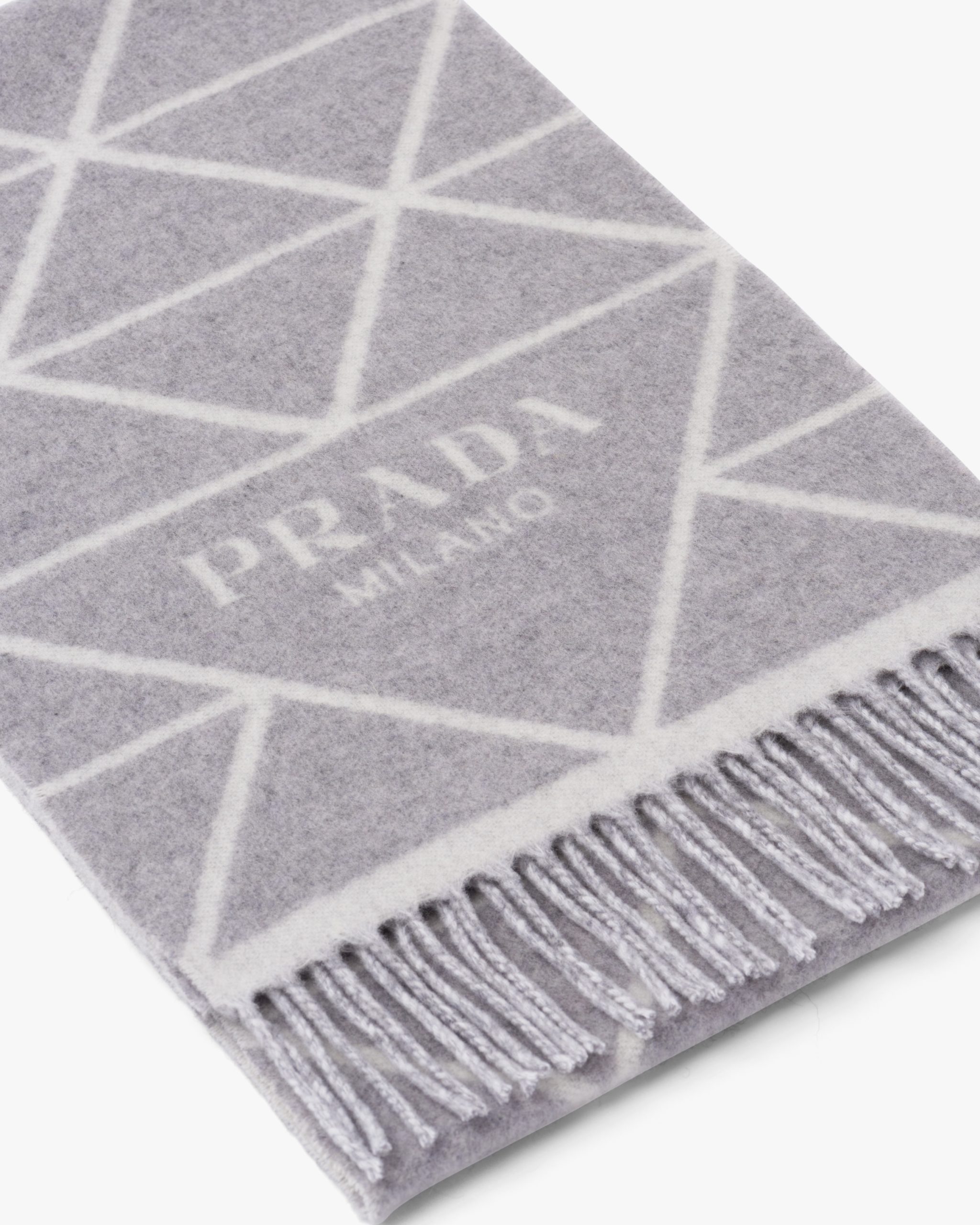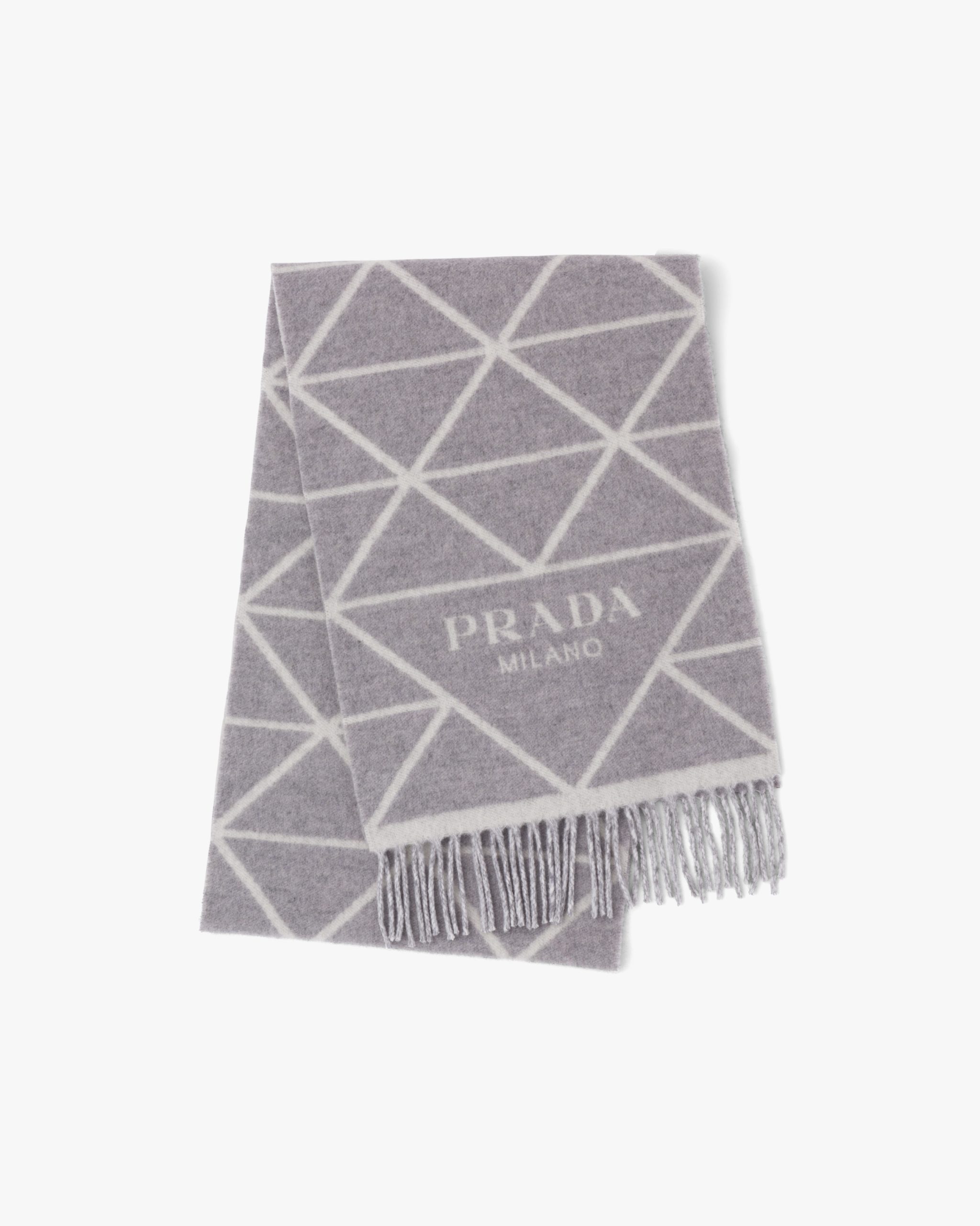 The triangle with lettering logo, an iconic symbol of the brand since 1913, is reinterpreted in a contemporary way and combined with a triangular geometric pattern of the jacquard motif decorating this soft double cashmere scarf. Fringe trim on the edge completes the accessory.