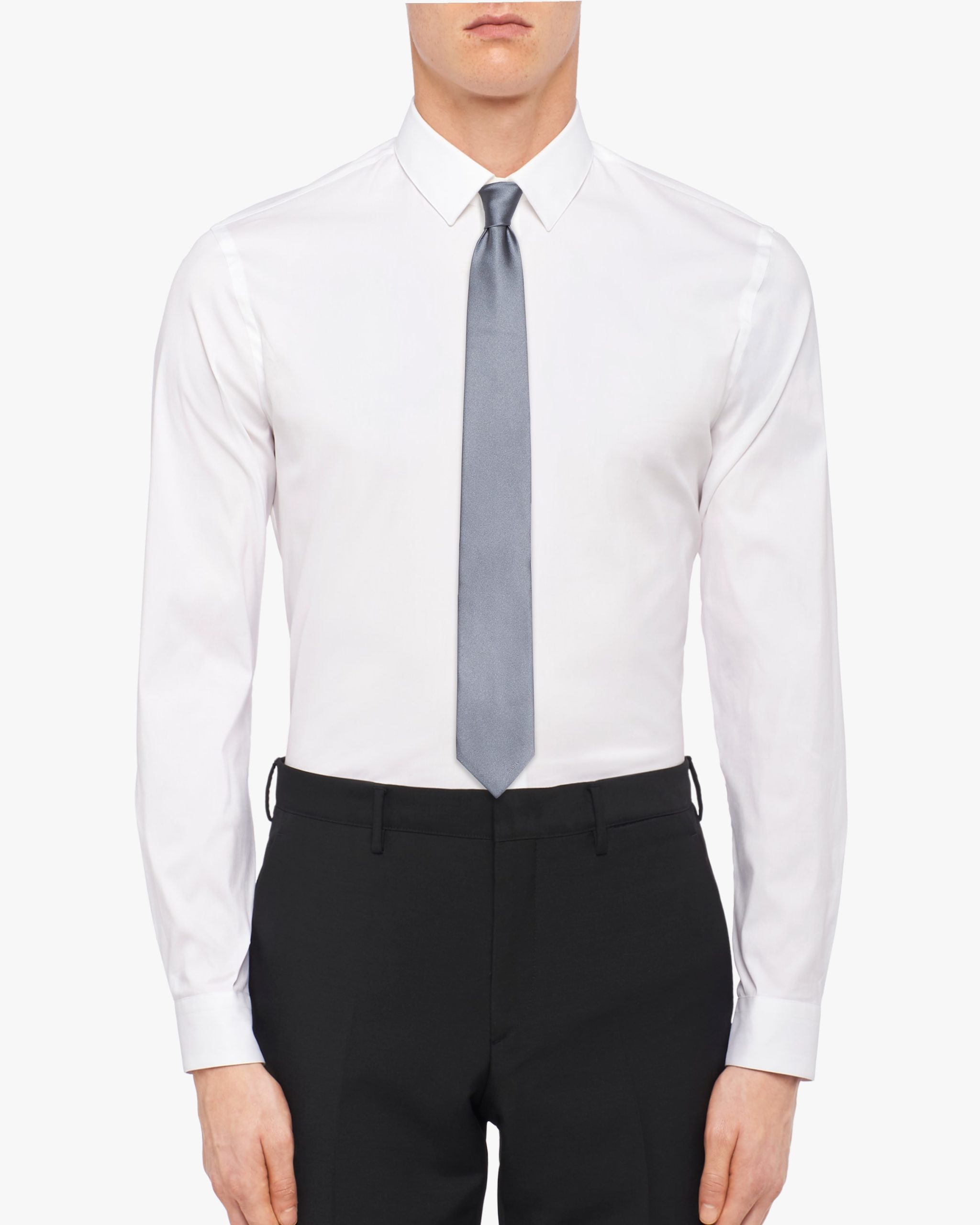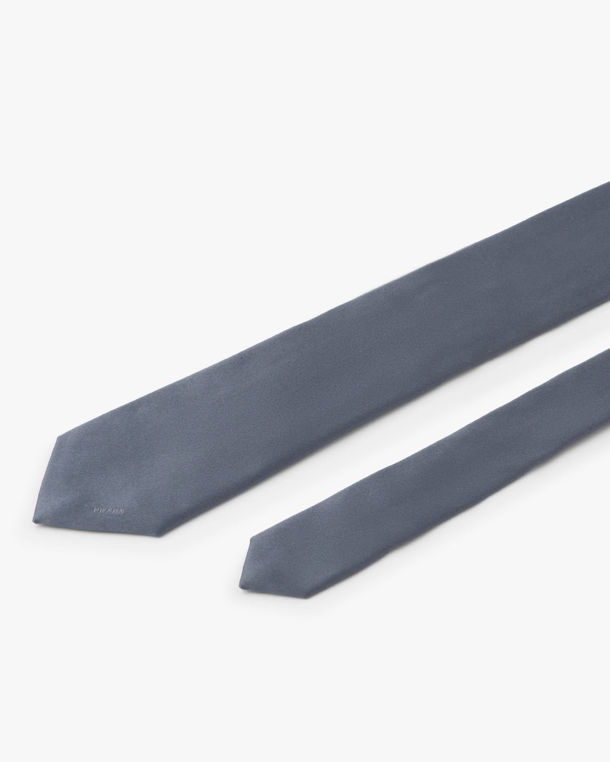 This satin tie comes in an elegant monochrome shade. The accessory is embellished by the discreet lettering logo on the front.