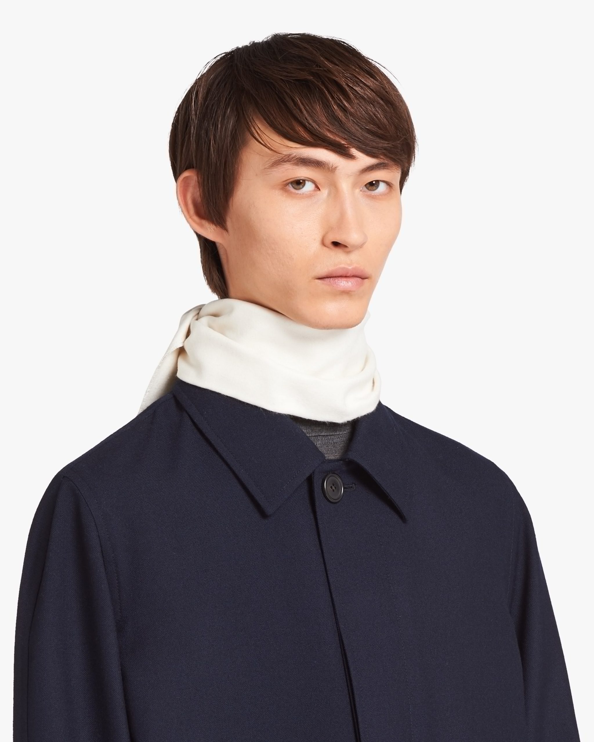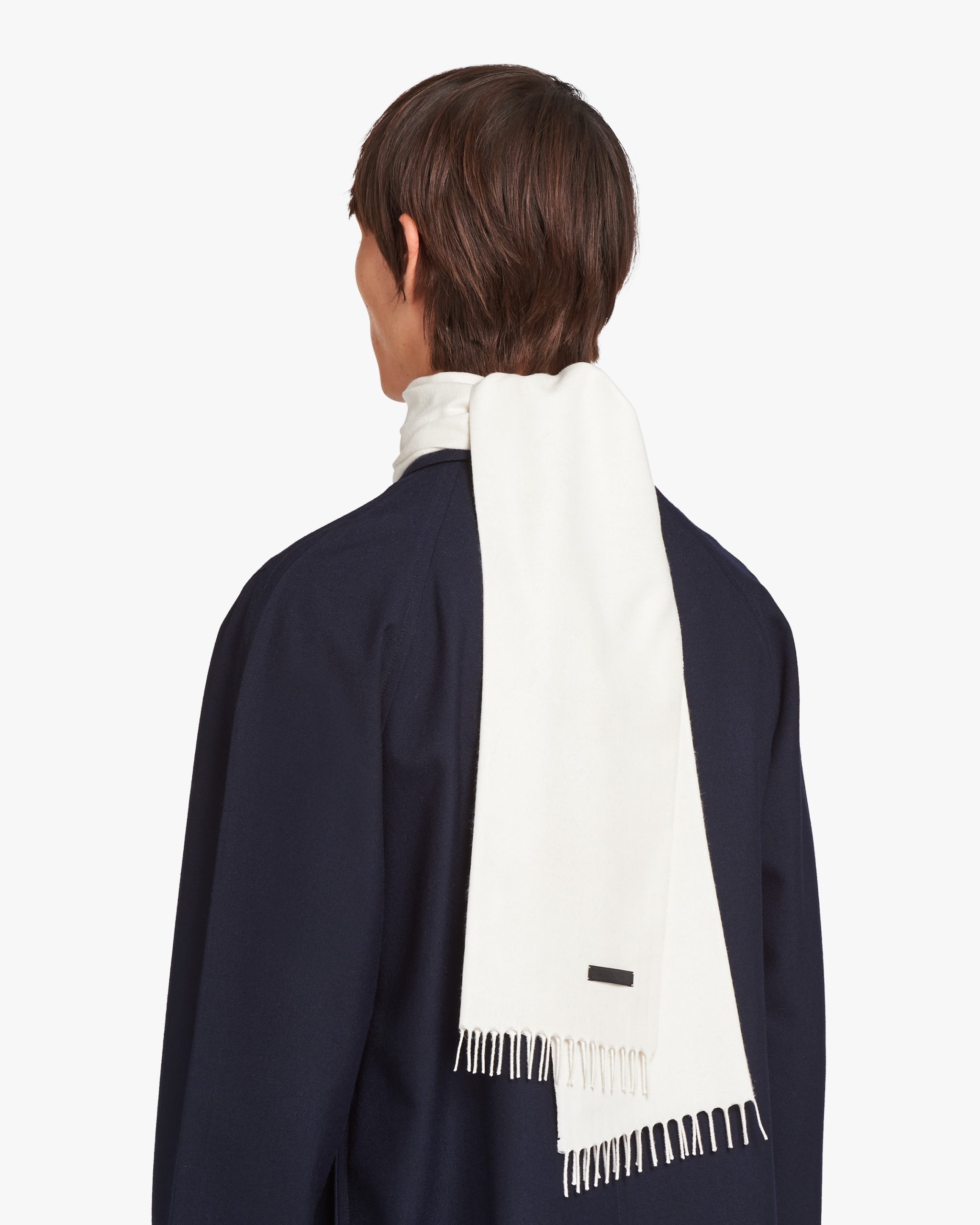 The natural sheen of tuxedo velour gives a refined character to this scarf with sartorial allure. The distinctive fringe completes the design of this accessory.