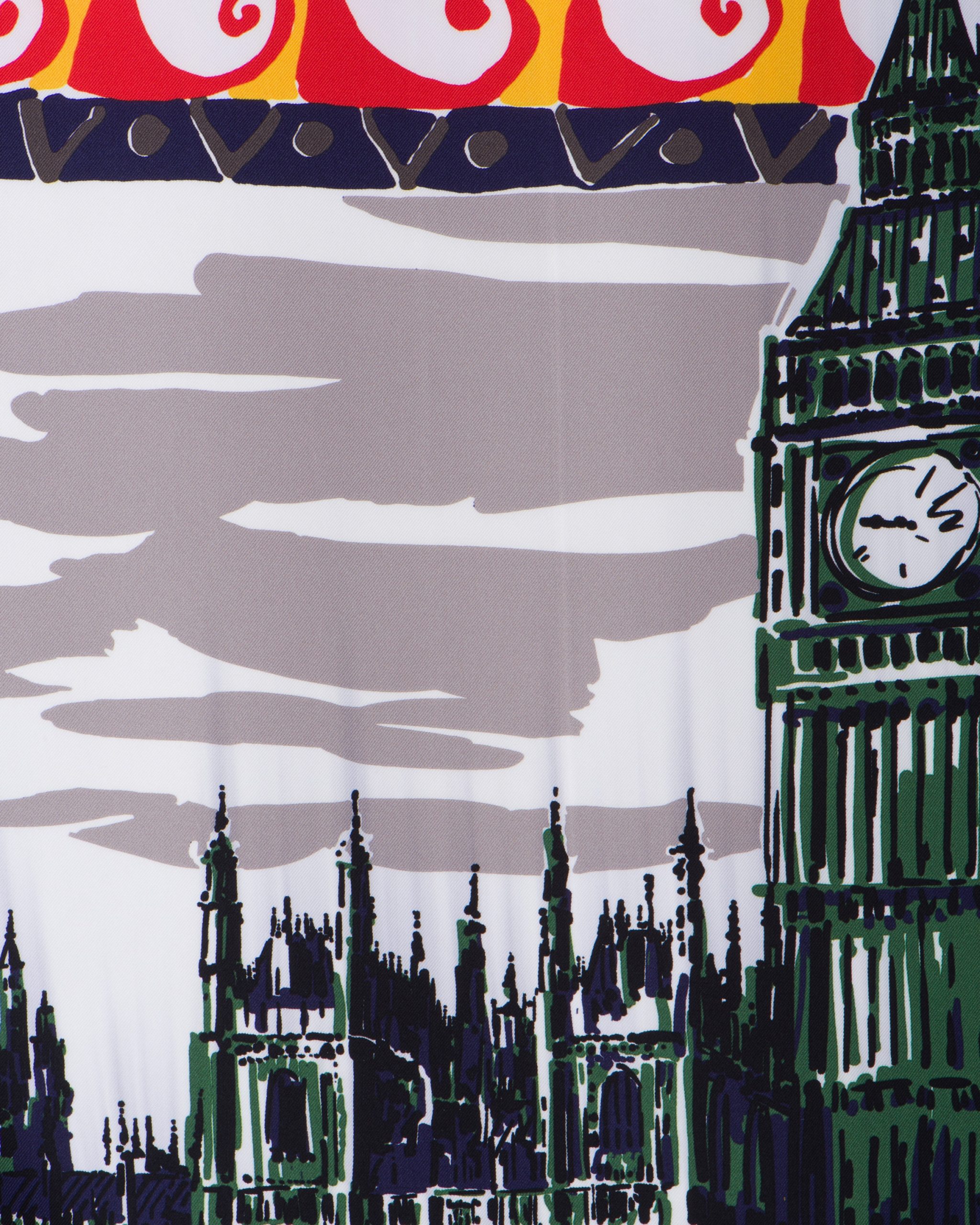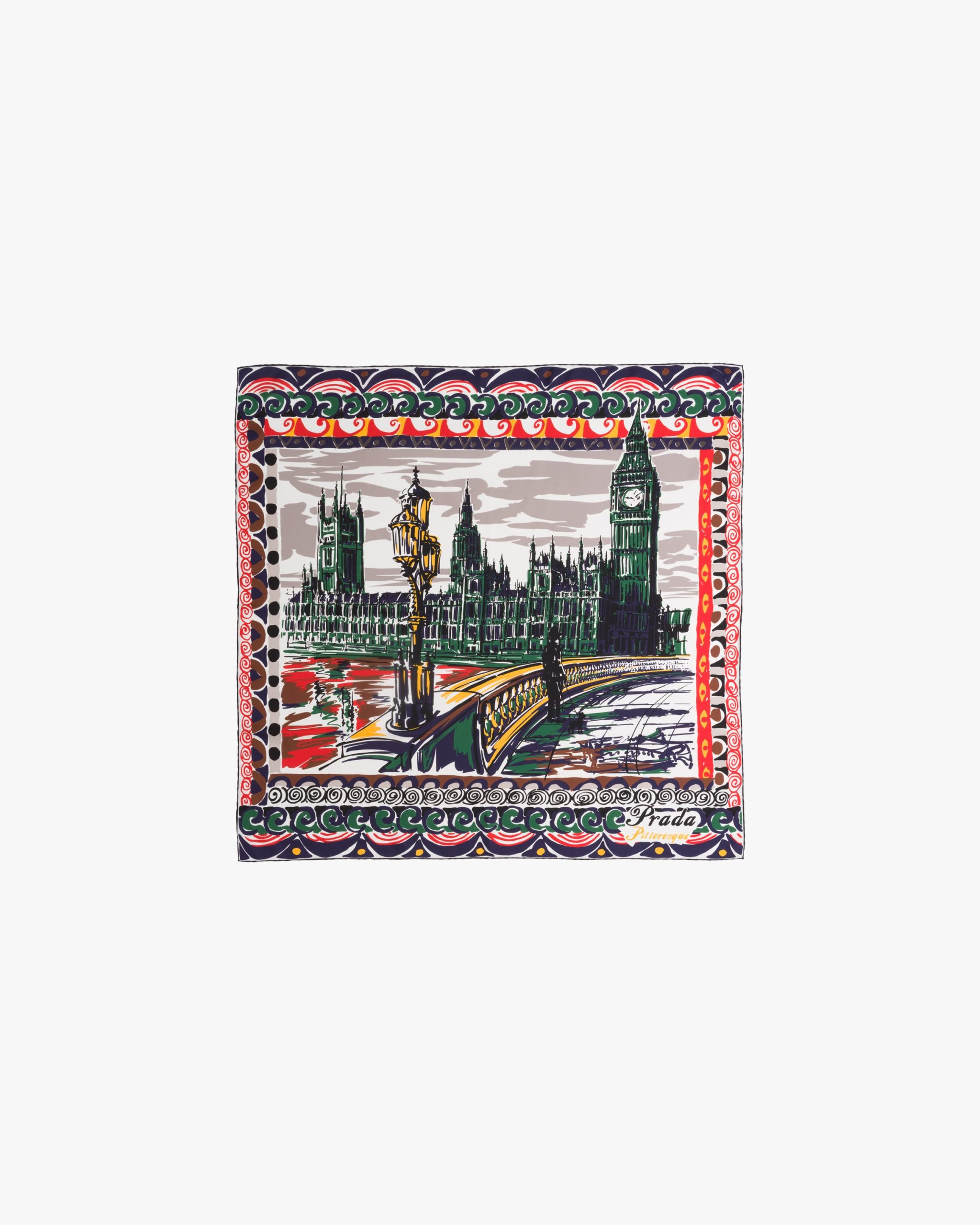 On a colorful journey around the globe, the Pittoresque series presents lively prints of important cities of the world. The silk foulard is finely decorated with the hand-drawn London print.
