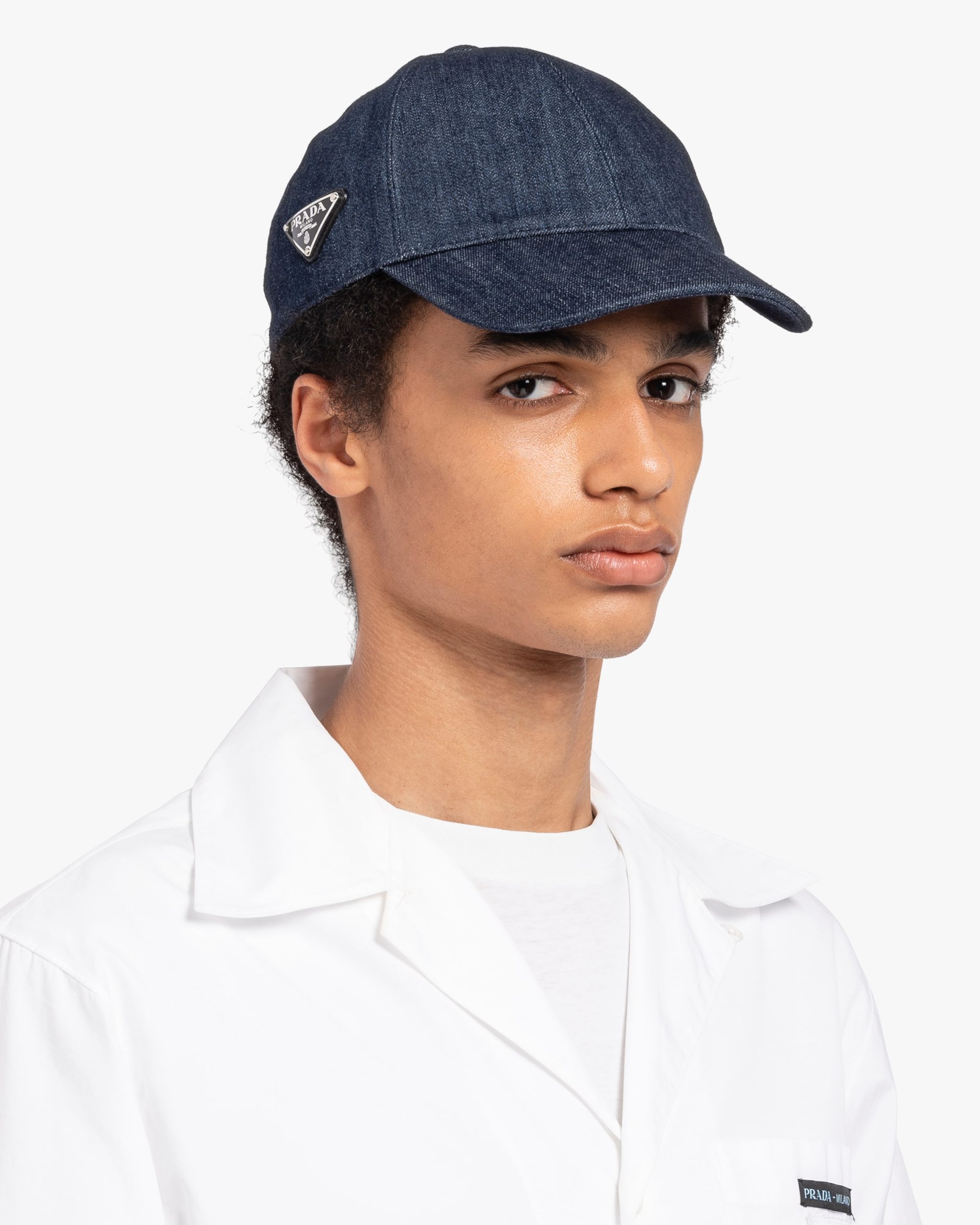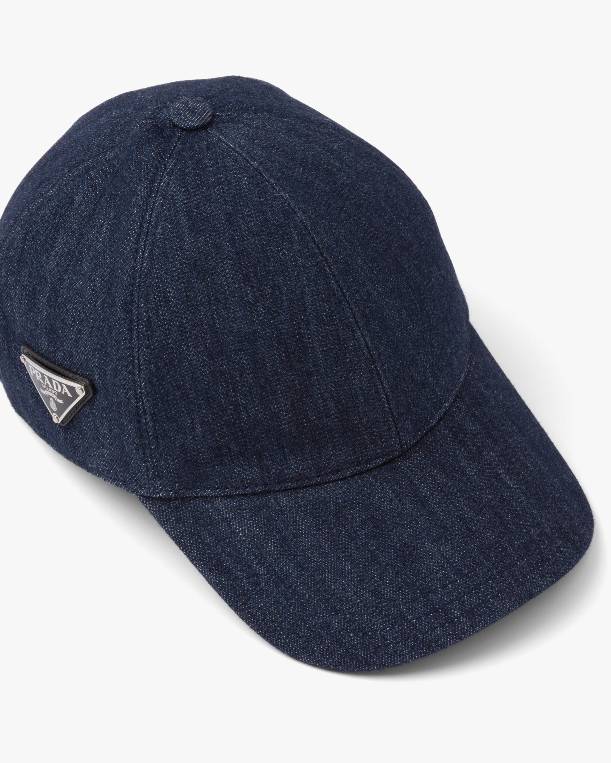 A cult fabric for streetwear and casual apparel, denim is reinterpreted by Prada on new garments and accessories with contemporary spirit like this baseball cap made iconic with the enamel triangle logo.