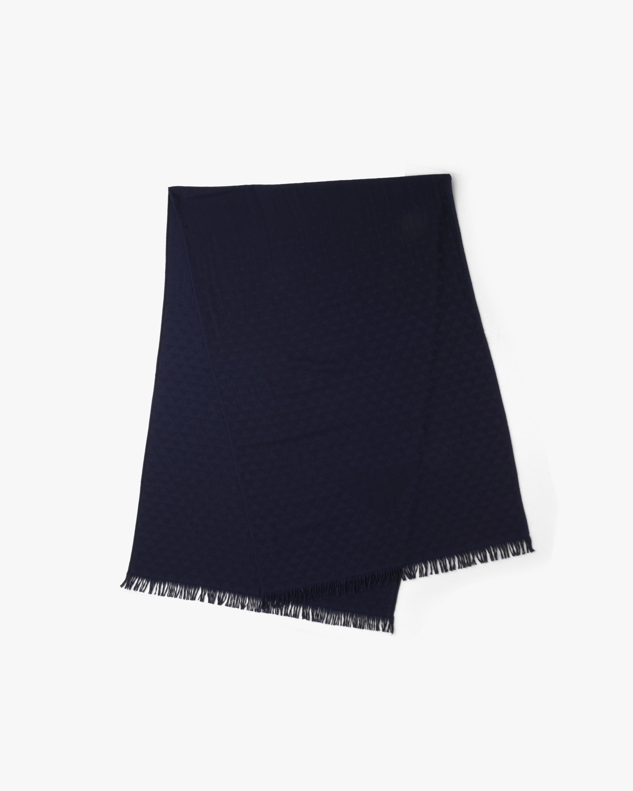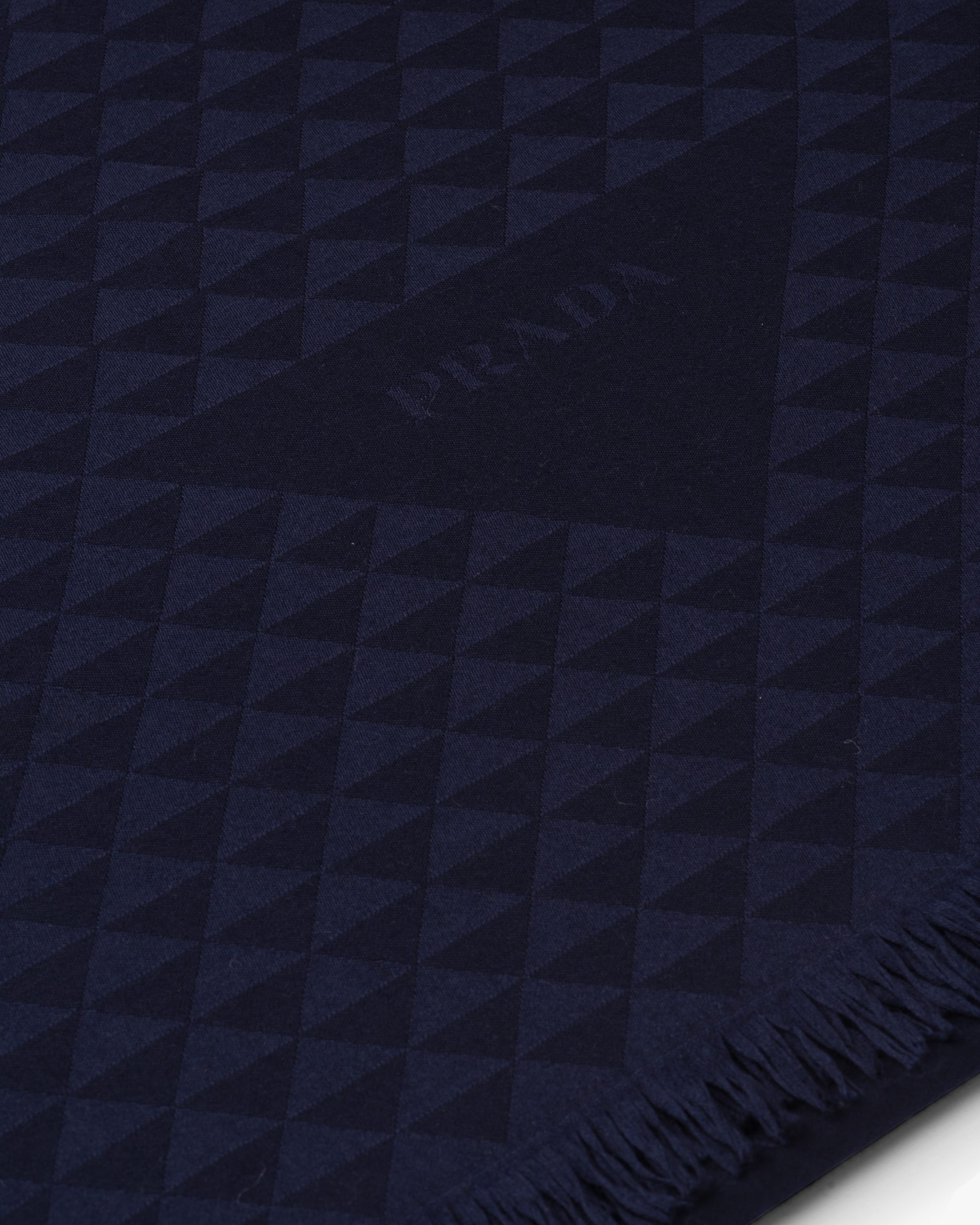 A delicate geometric pattern runs through this jacquard cashmere scarf, accented by the Prada triangle with lettering logo at the center. Fringe trim on the edge completes the accessory.