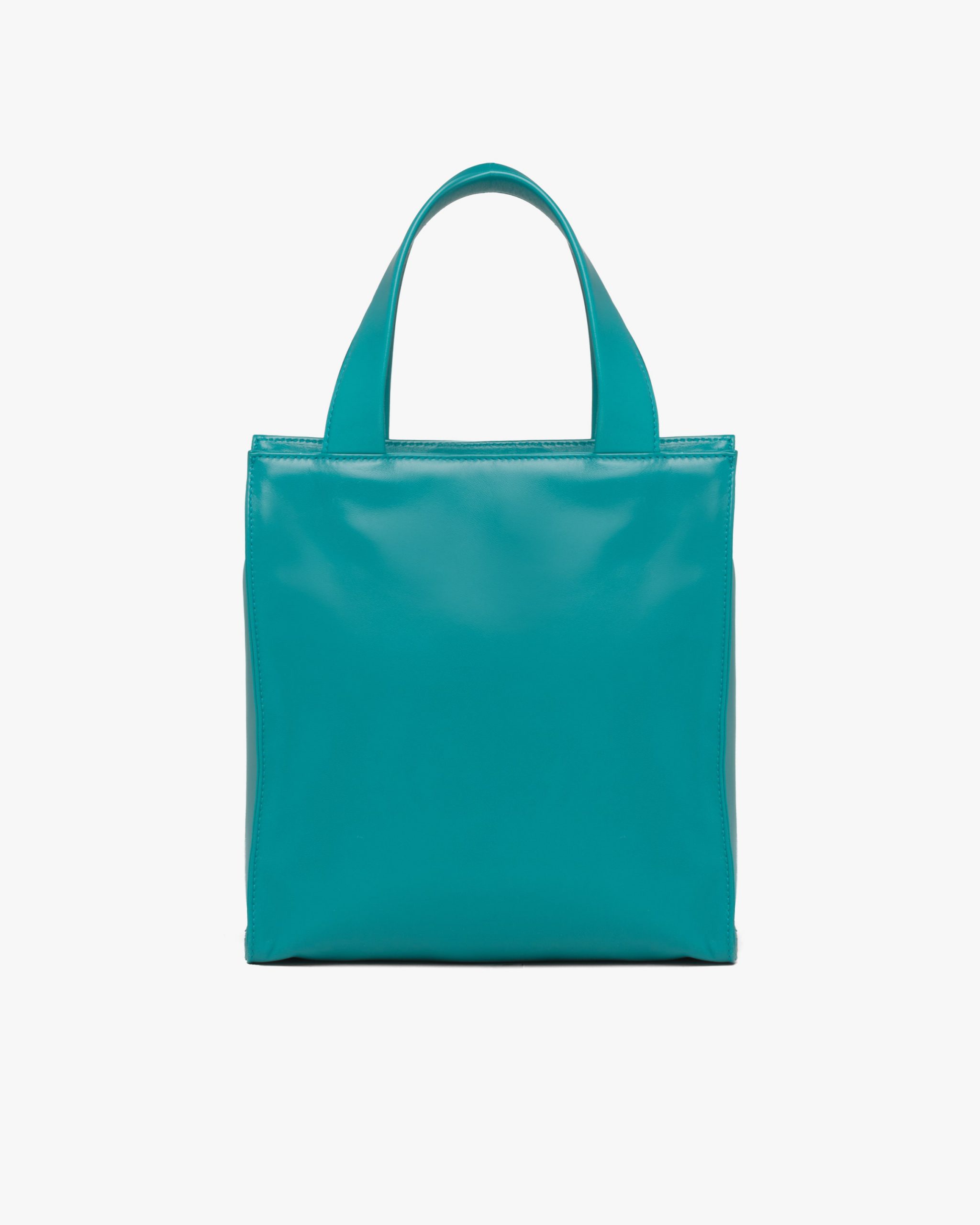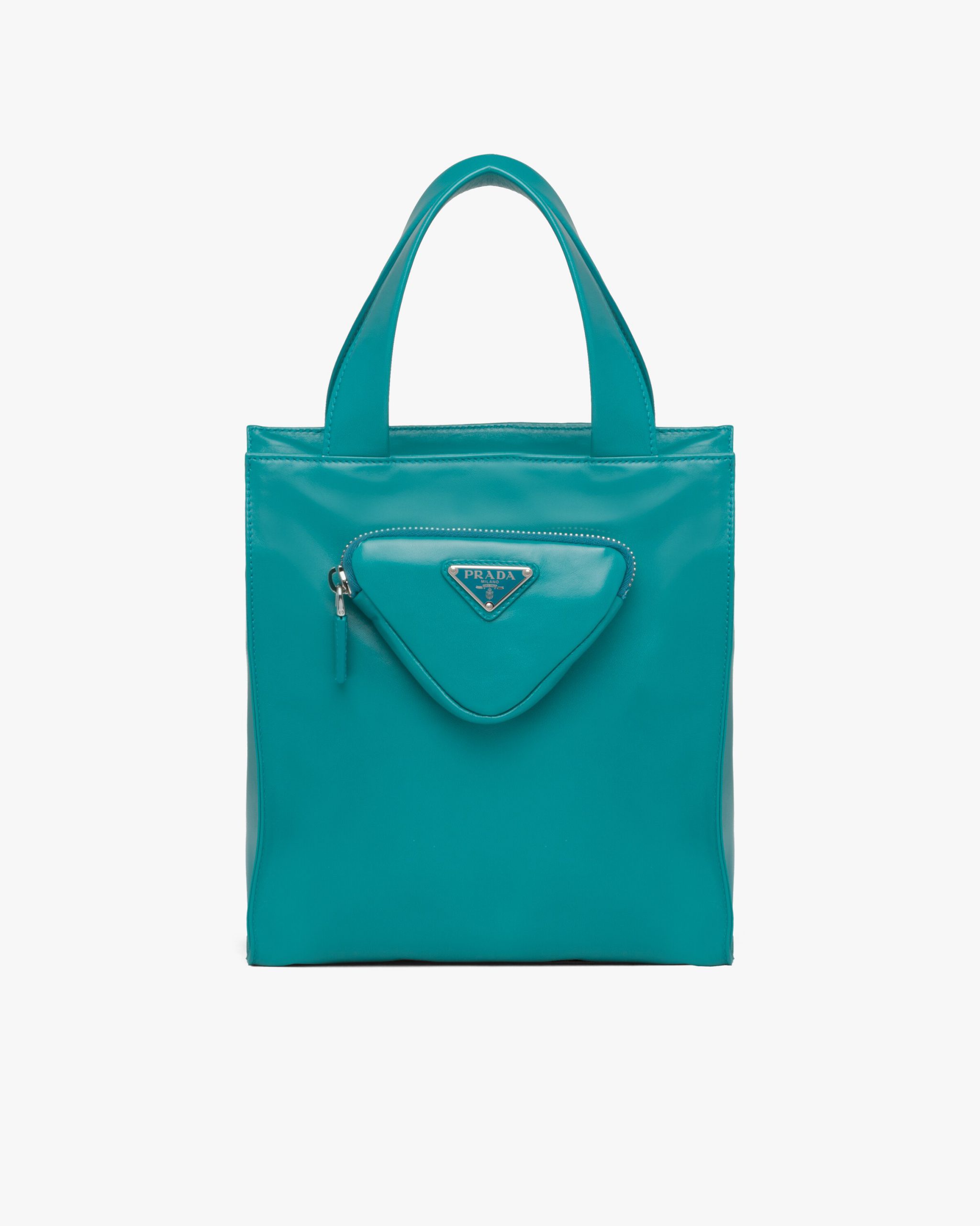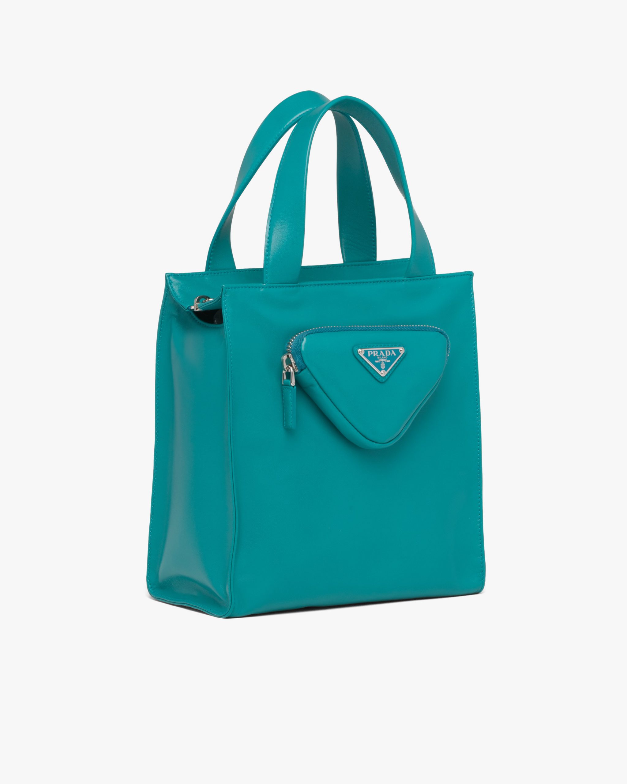 A study of the triangle inspires new geometric details and unique interpretations of the historic Prada logo. The iconic shape is proposed in the three-dimensional pocket that decorates this soft nappa leather tote. Sleek, minimalist lines give a contemporary attitude to this accessory with double handle and detachable shoulder strap so it can be worn in different ways.