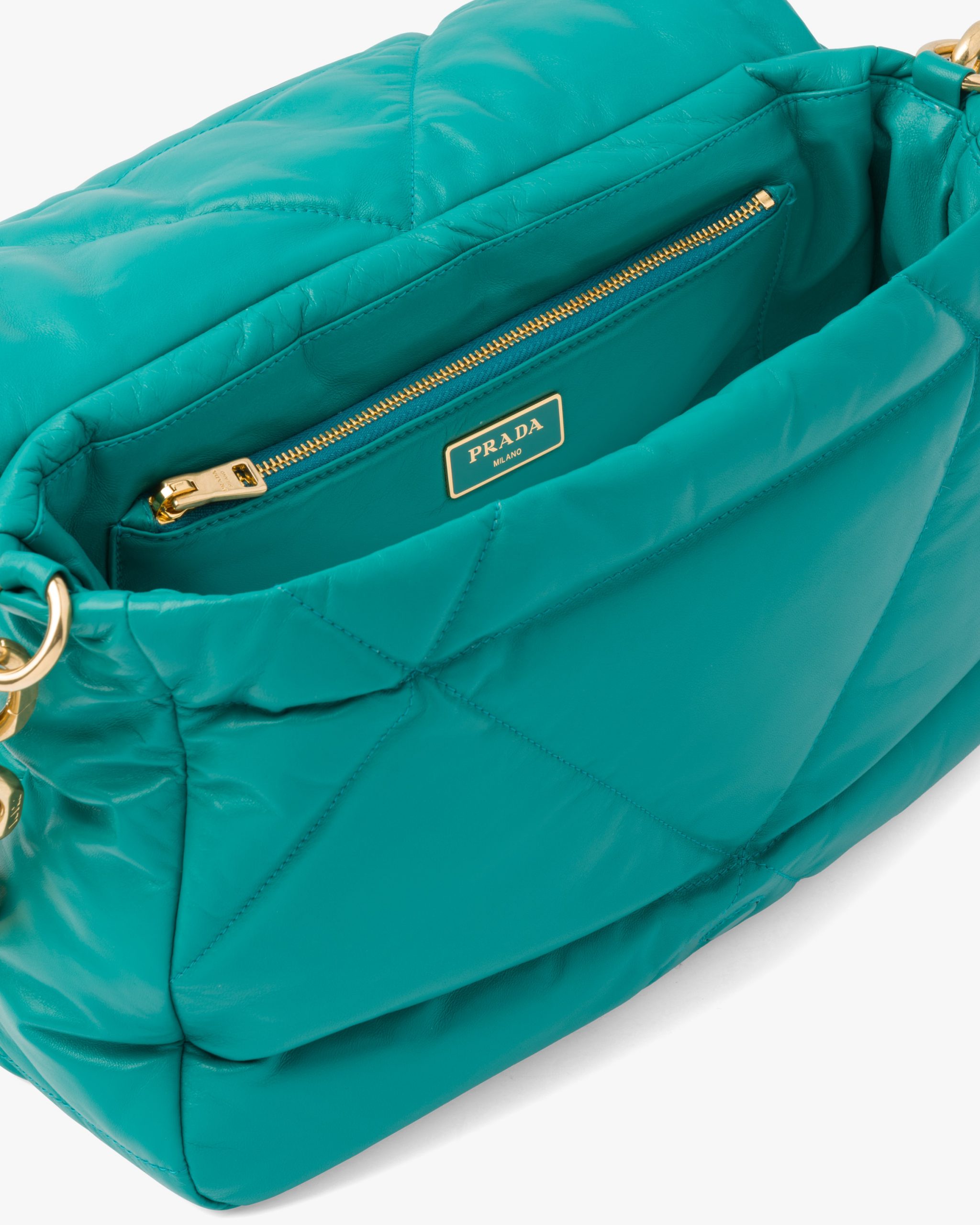 Peacock Blue Padded nappa leather shoulder bag