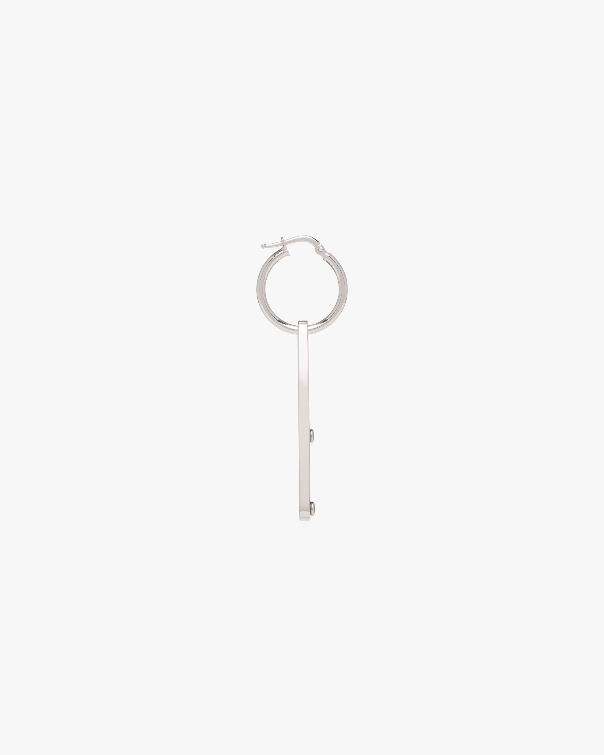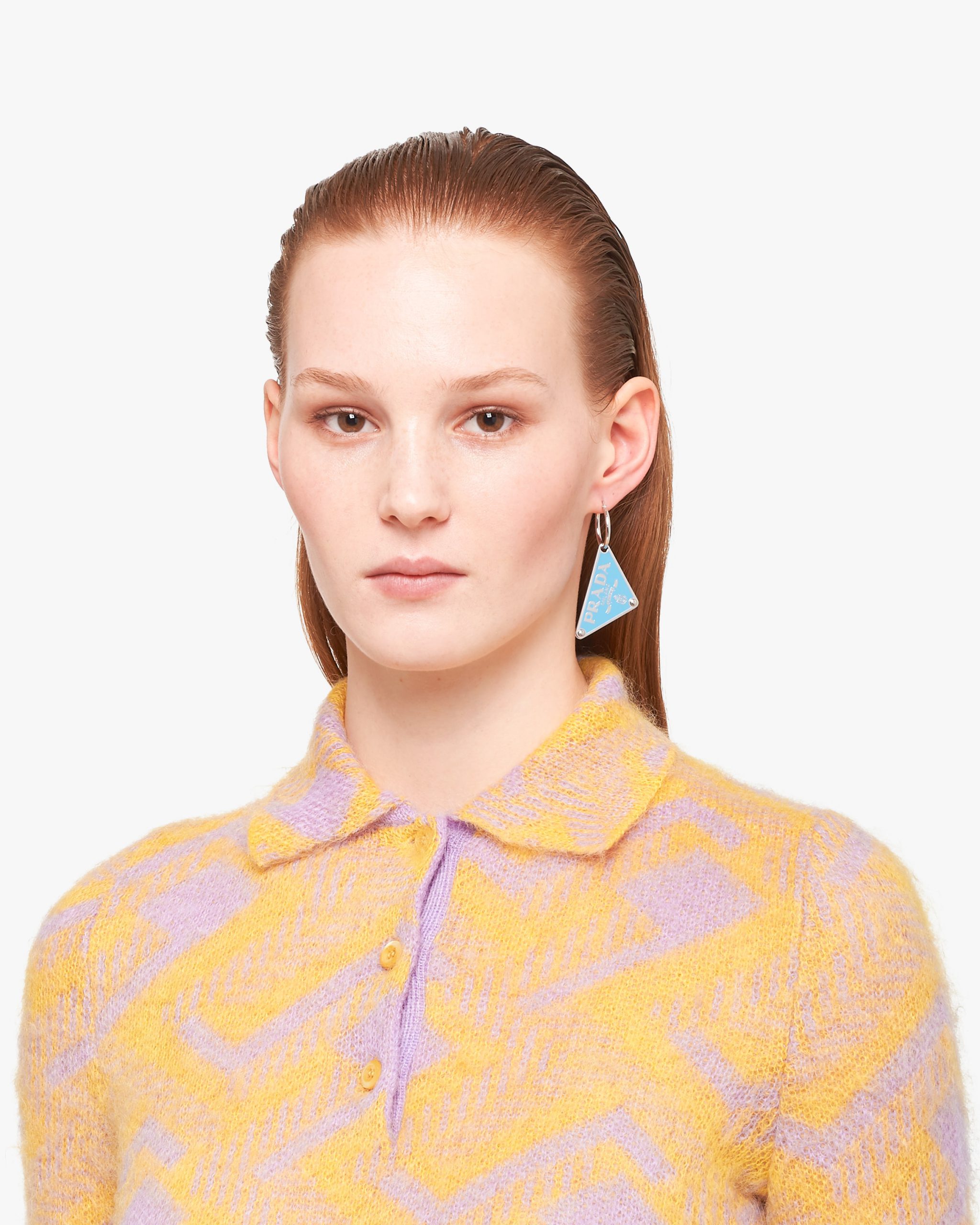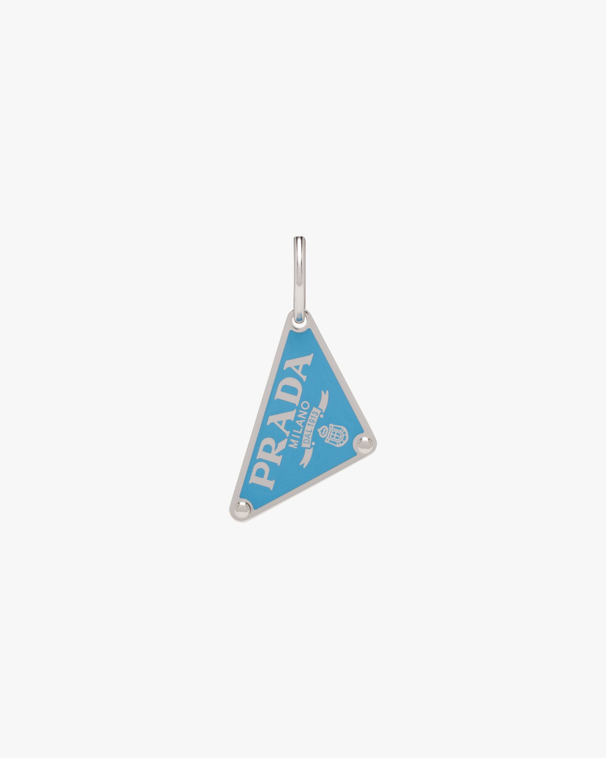 Iconic and sleek, the triangle logo is the protagonist of a new line of jewelry made of 925 sterling silver that reinterprets punk influences in a modern way. Prada’s historic symbol decorated with enamel defines this single earring.