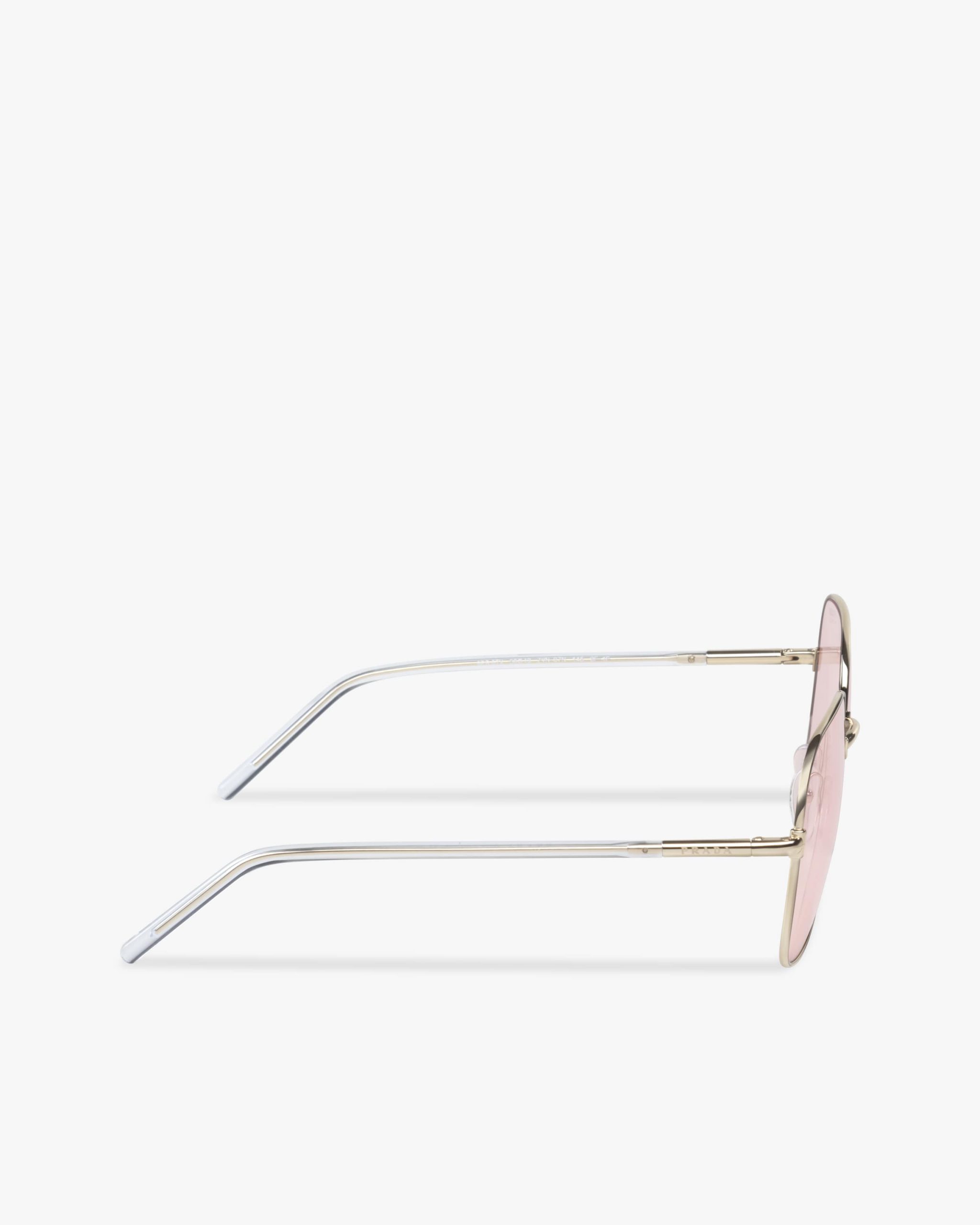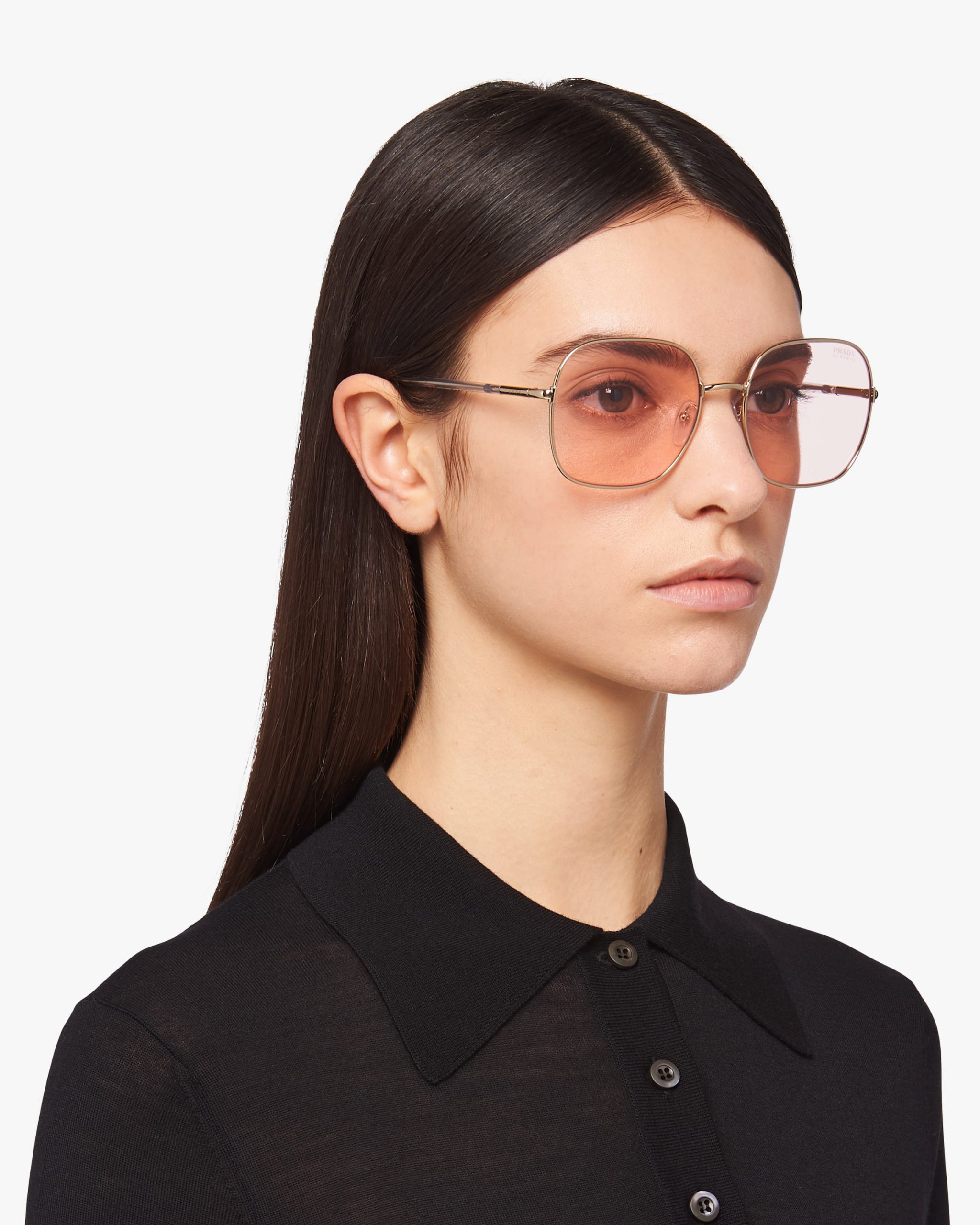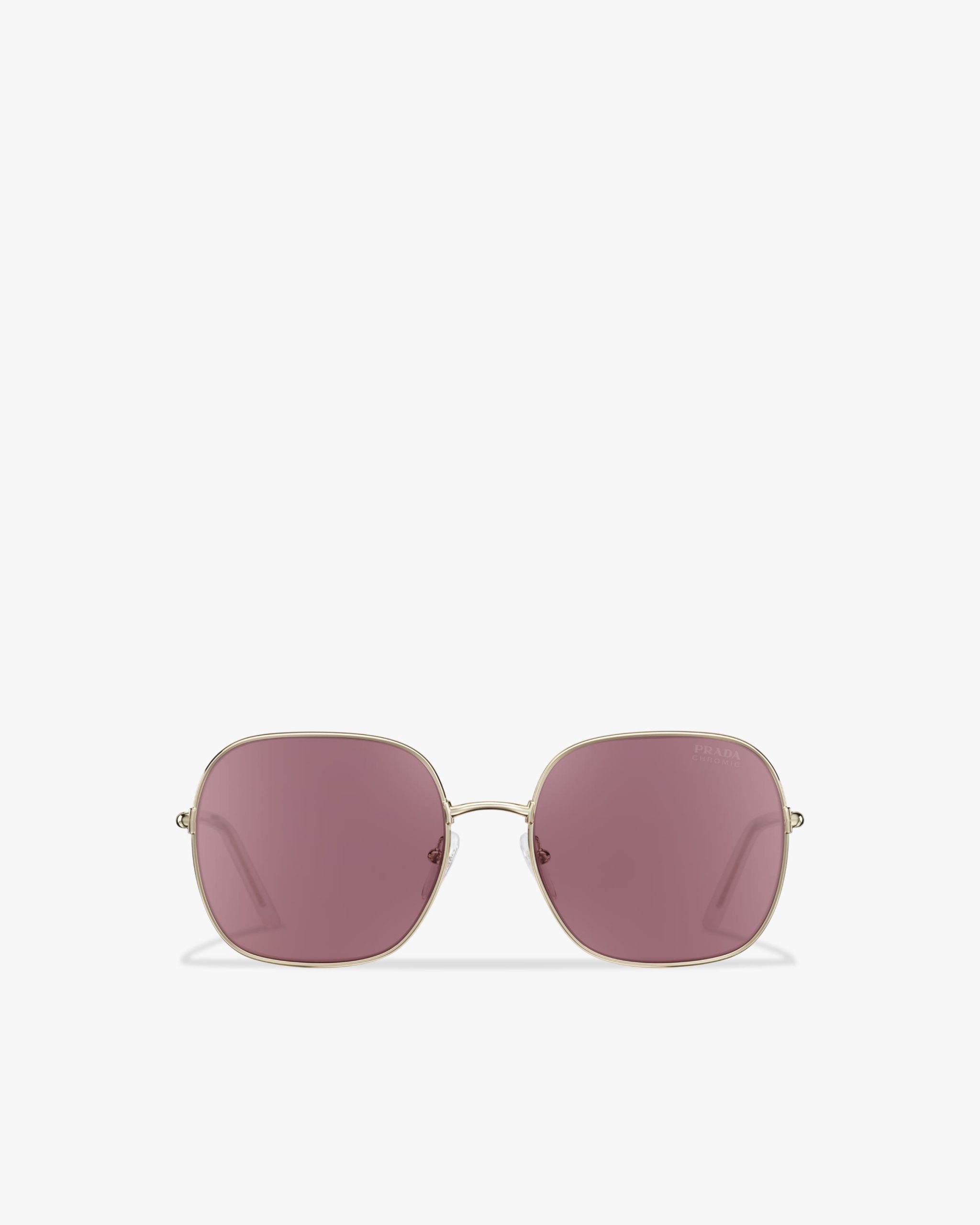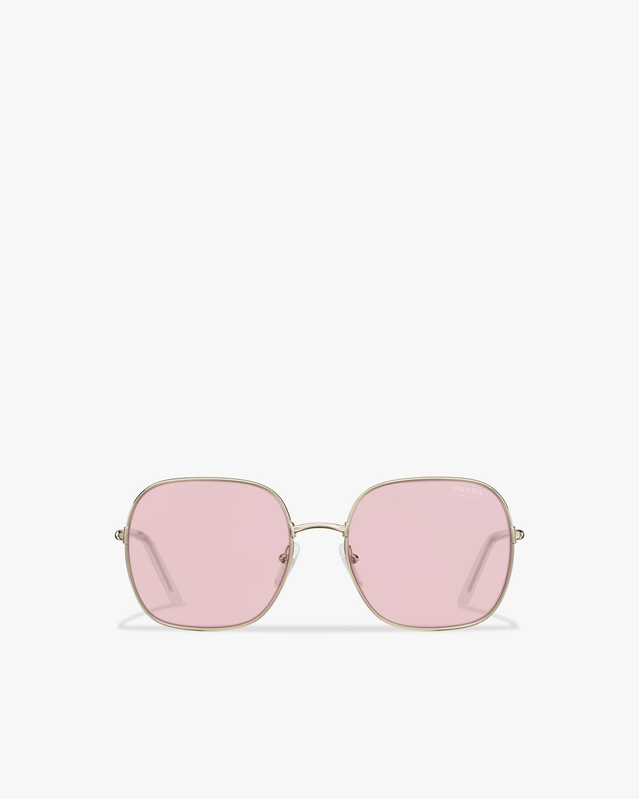 Sunglasses with contemporary, feminine allure characterized by the square design with refined lines. The exclusive Prada Chromic photochromic lenses add a modern touch and adapt to any change in sunlight, darkening in a few seconds. Prada lettering logo.