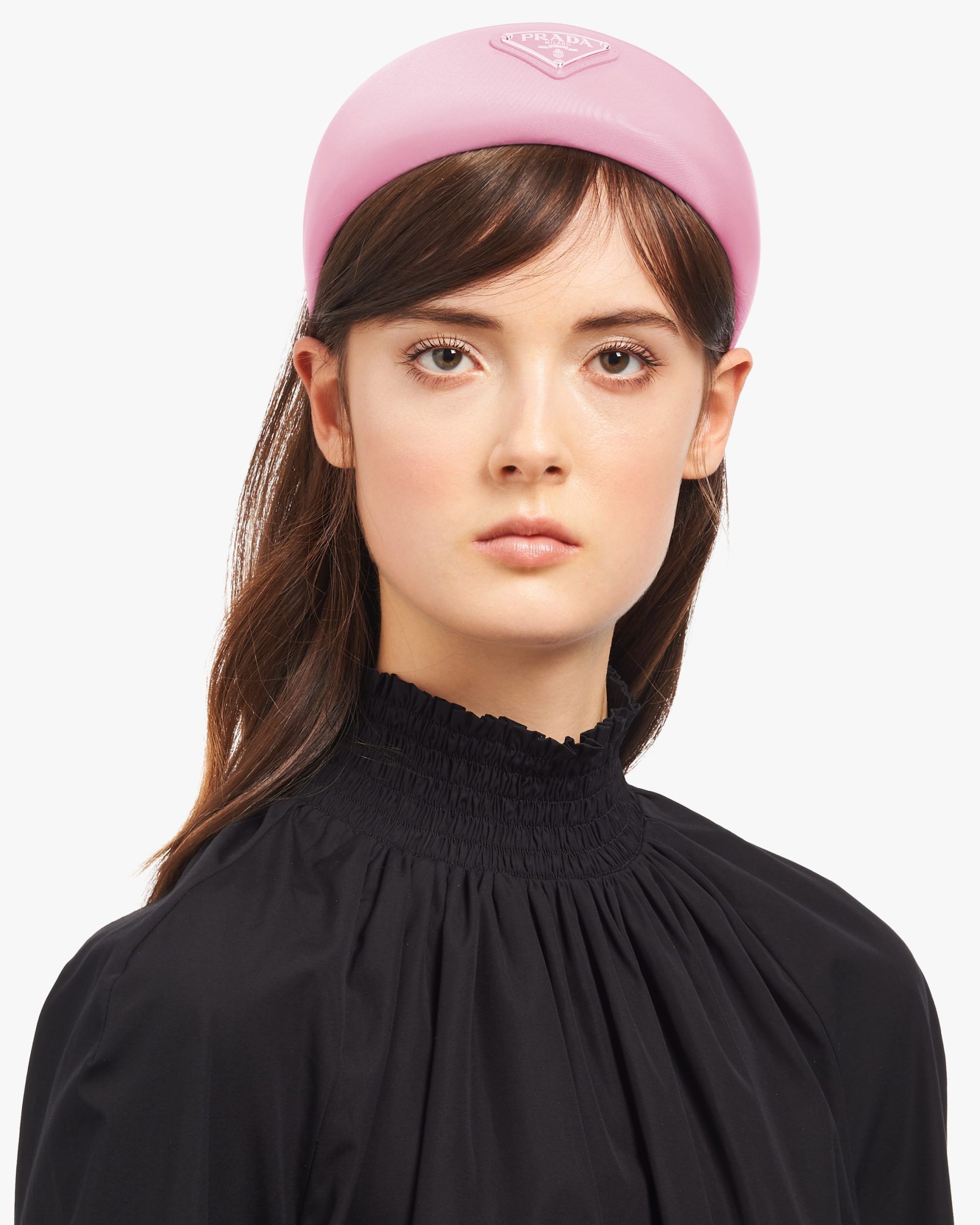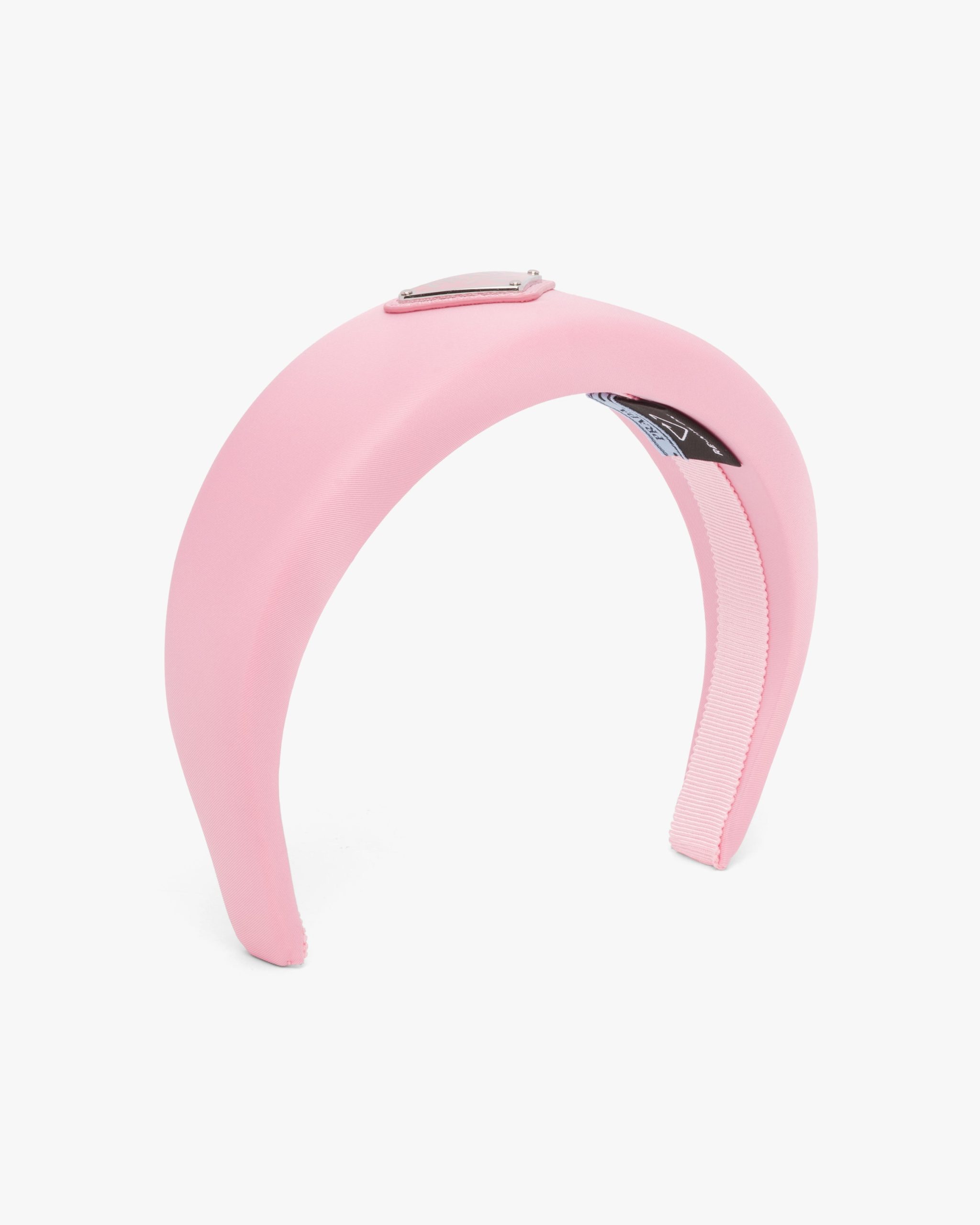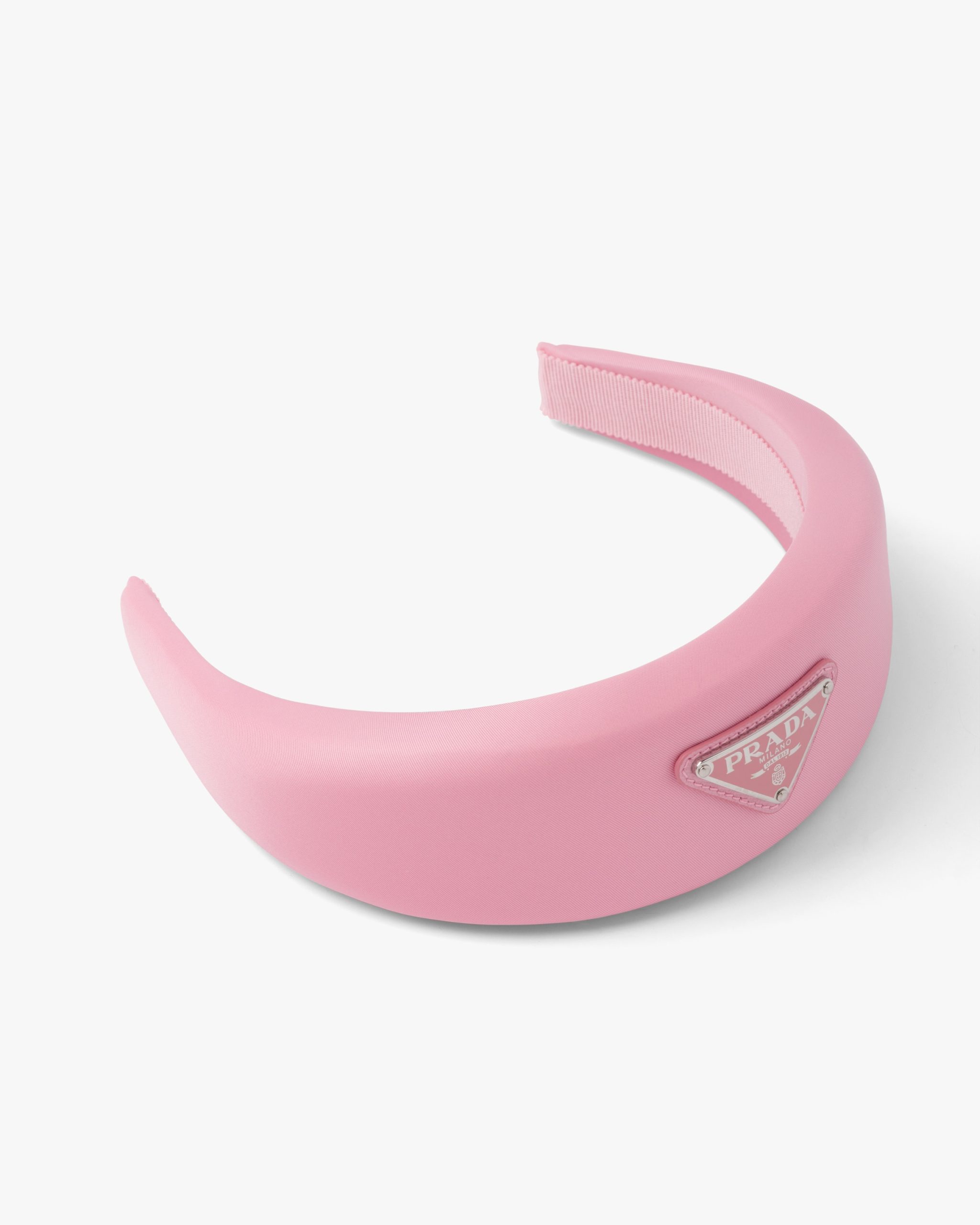 This oversized puffy headband, a sophisticated and emblematic accessory of Prada collectsions, is made of Re-Nylon: regenerated nylon yarn (ECONYL?)produced from recycled, purified plastic trash collectsed in the ocean, fishing nets and textile waste fibers.