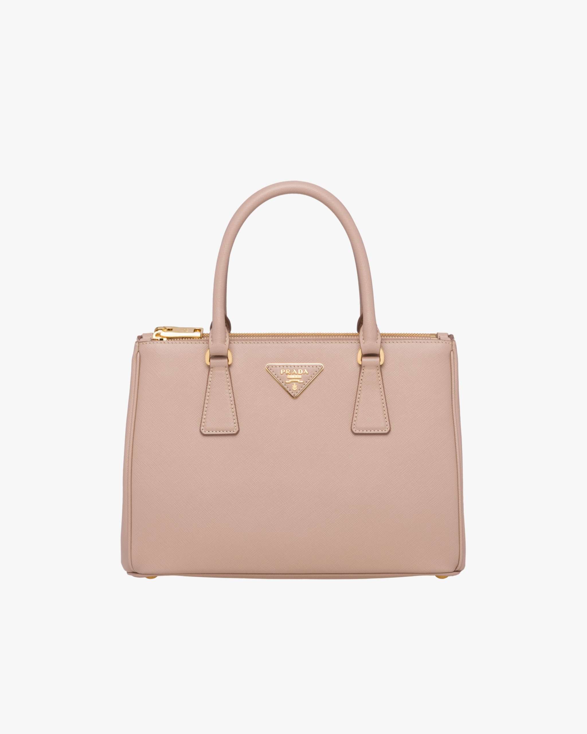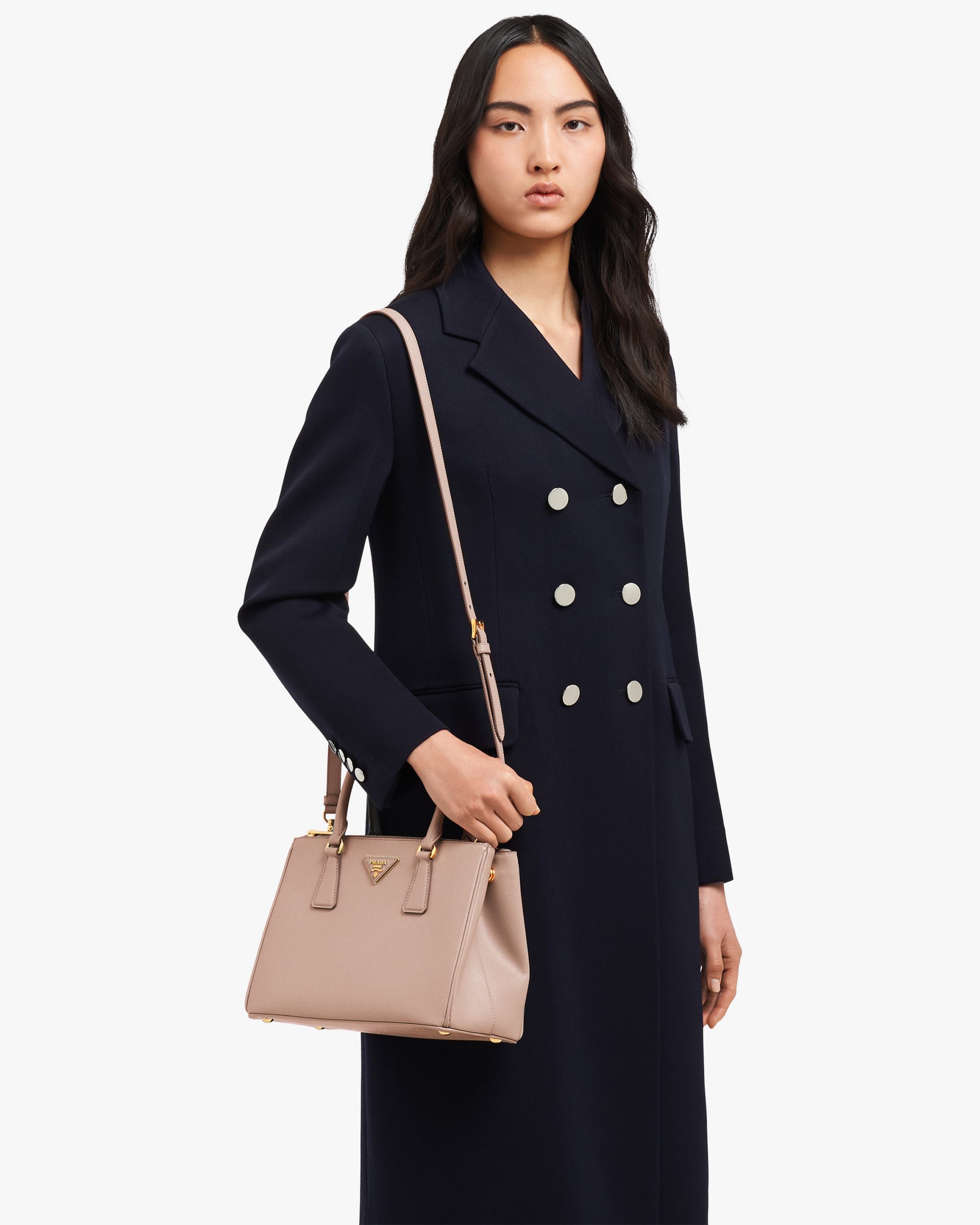 • The Prada Galleria bag, the quintessence of timeless elegance, owes its name to the historic Prada store that Mario Prada opened back in 1913 in Galleria Vittorio Emanuele II in Milan. The accessory made of Saffiano leather has a double handle and detachable shoulder strap that allow it to be worn as a shoulder bag or handbag. The bag stands out for its sophisticated simplicity and is decorated with the leather triangle logo and gold-tone metal hardware.