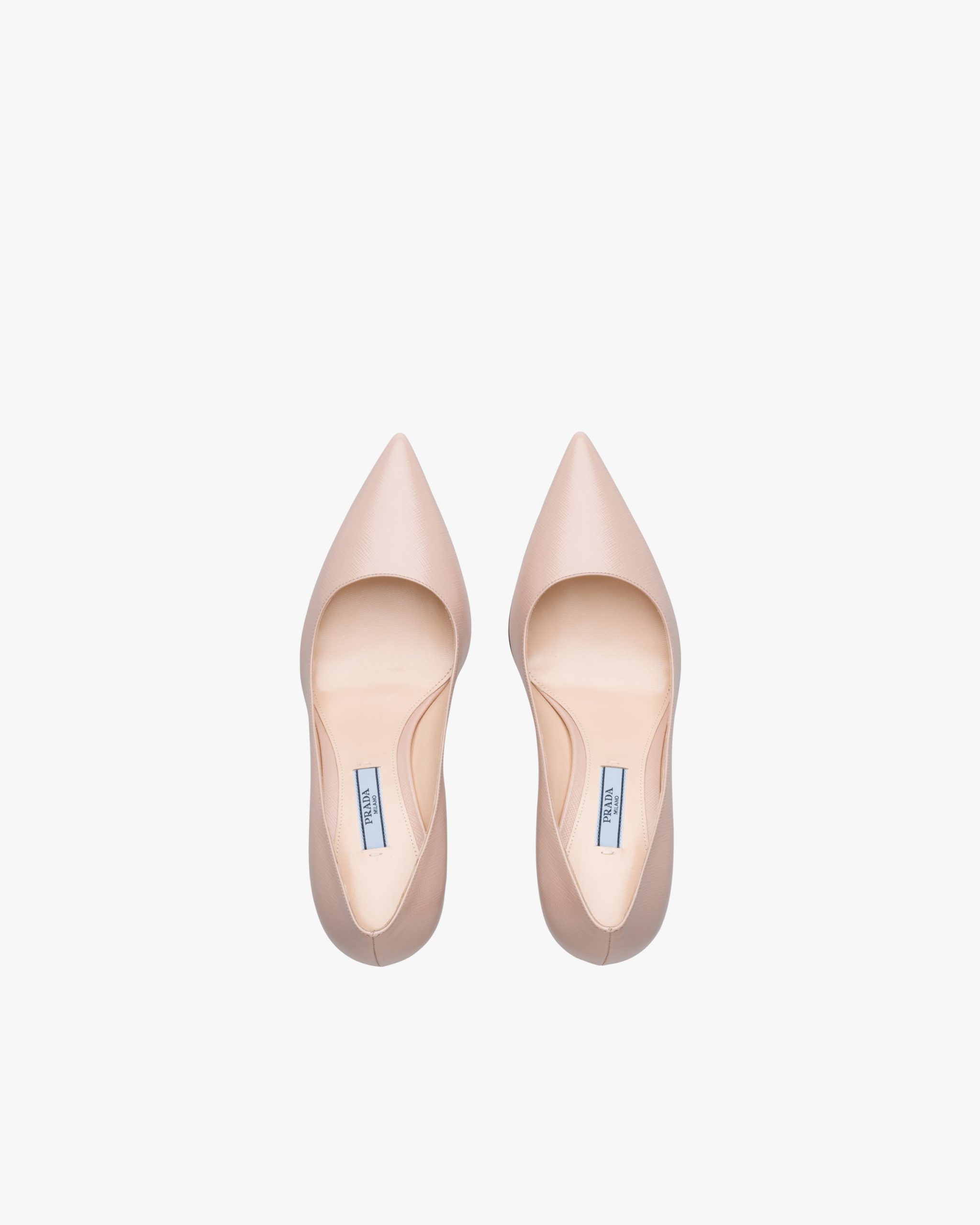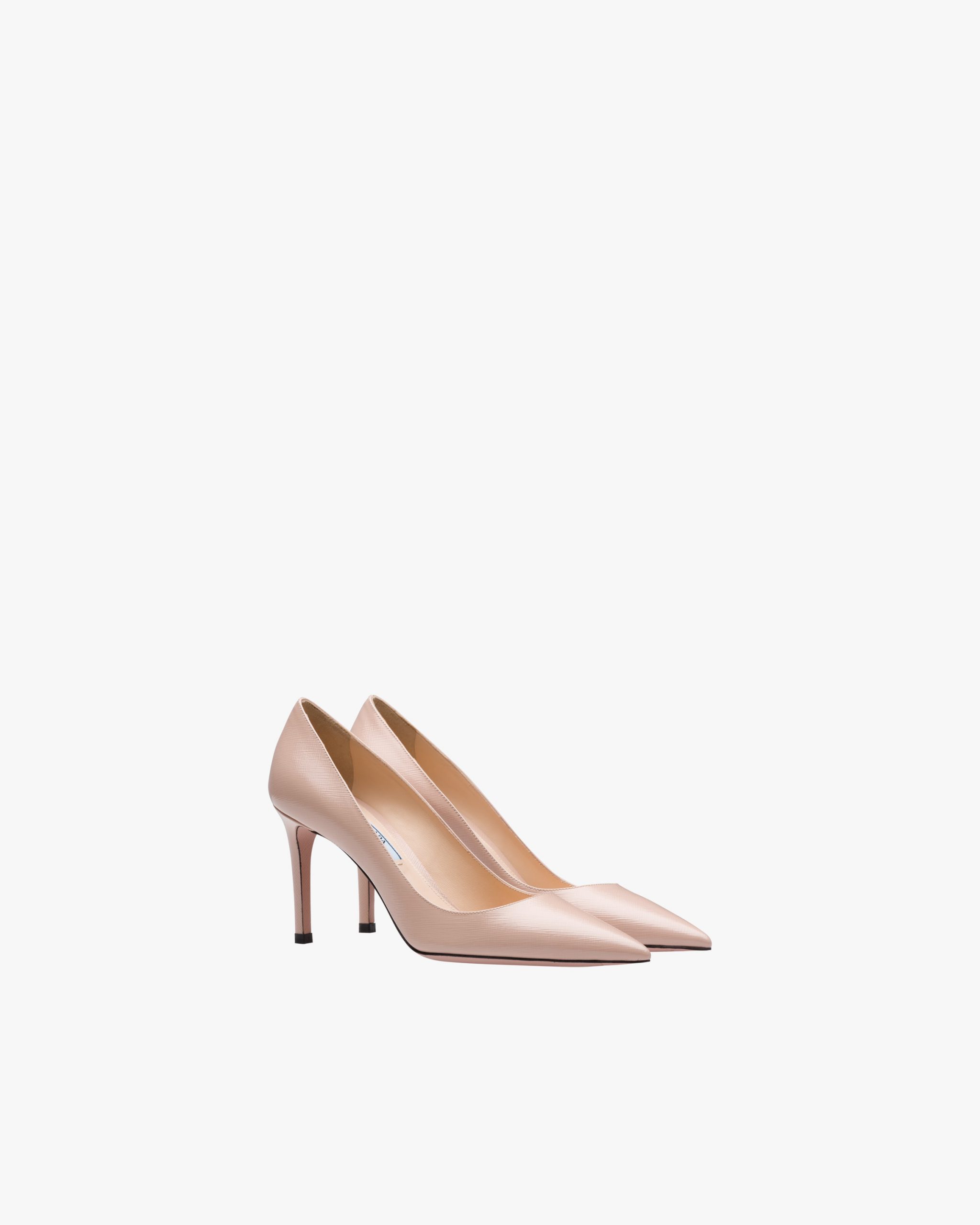 These Saffiano textured patent leather pumps with tapered silhouette and slim 85 mm stiletto heel express timeless femininity.