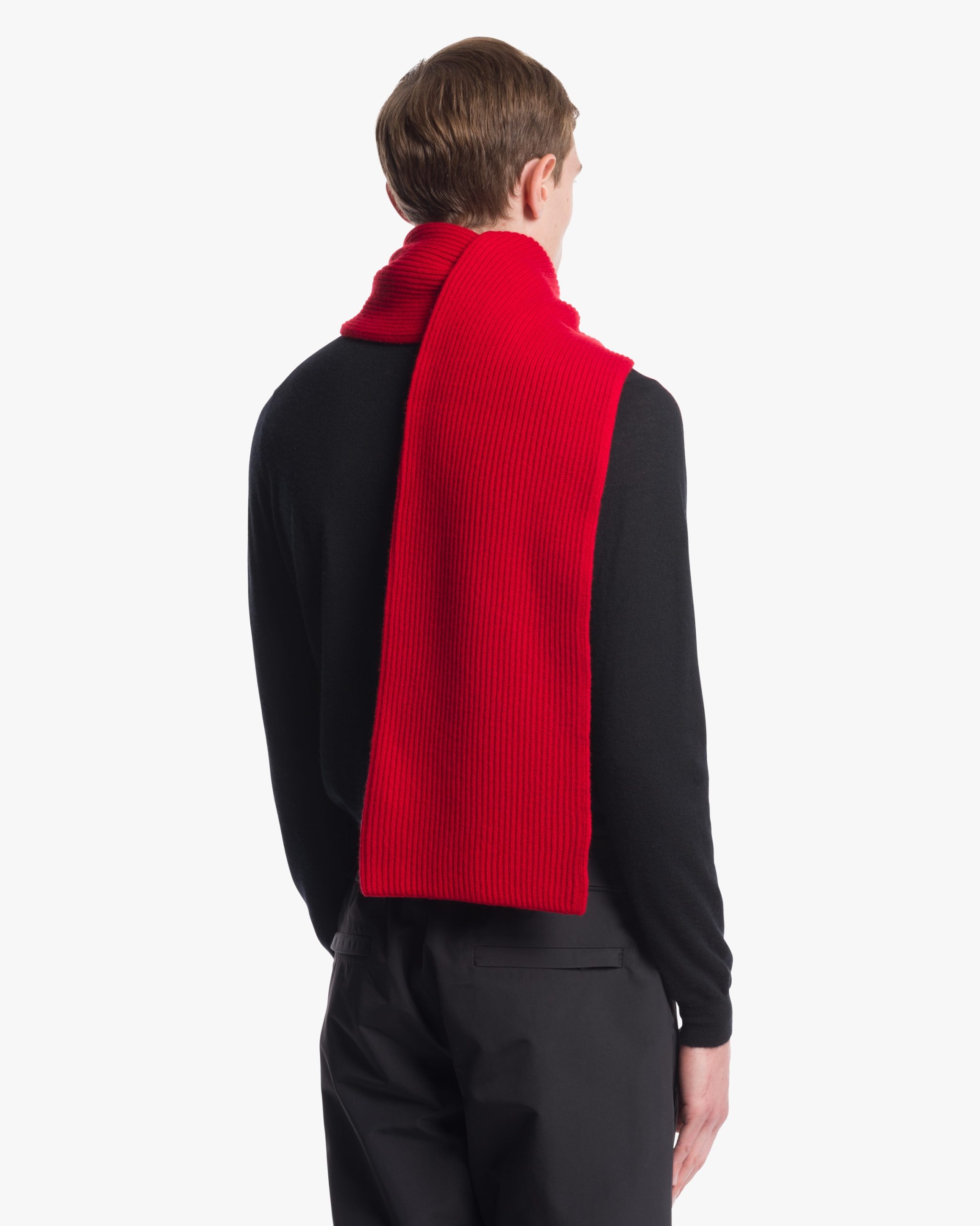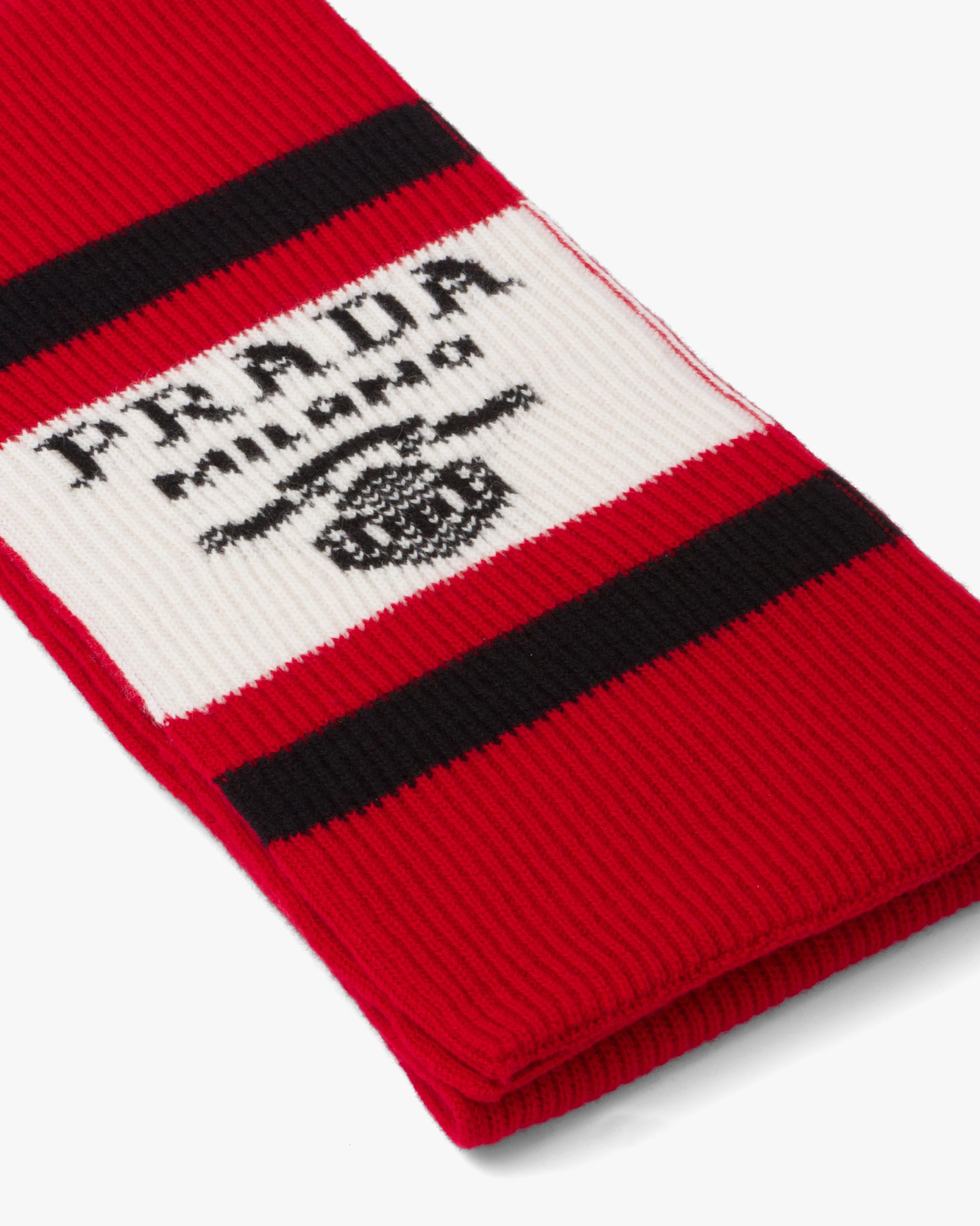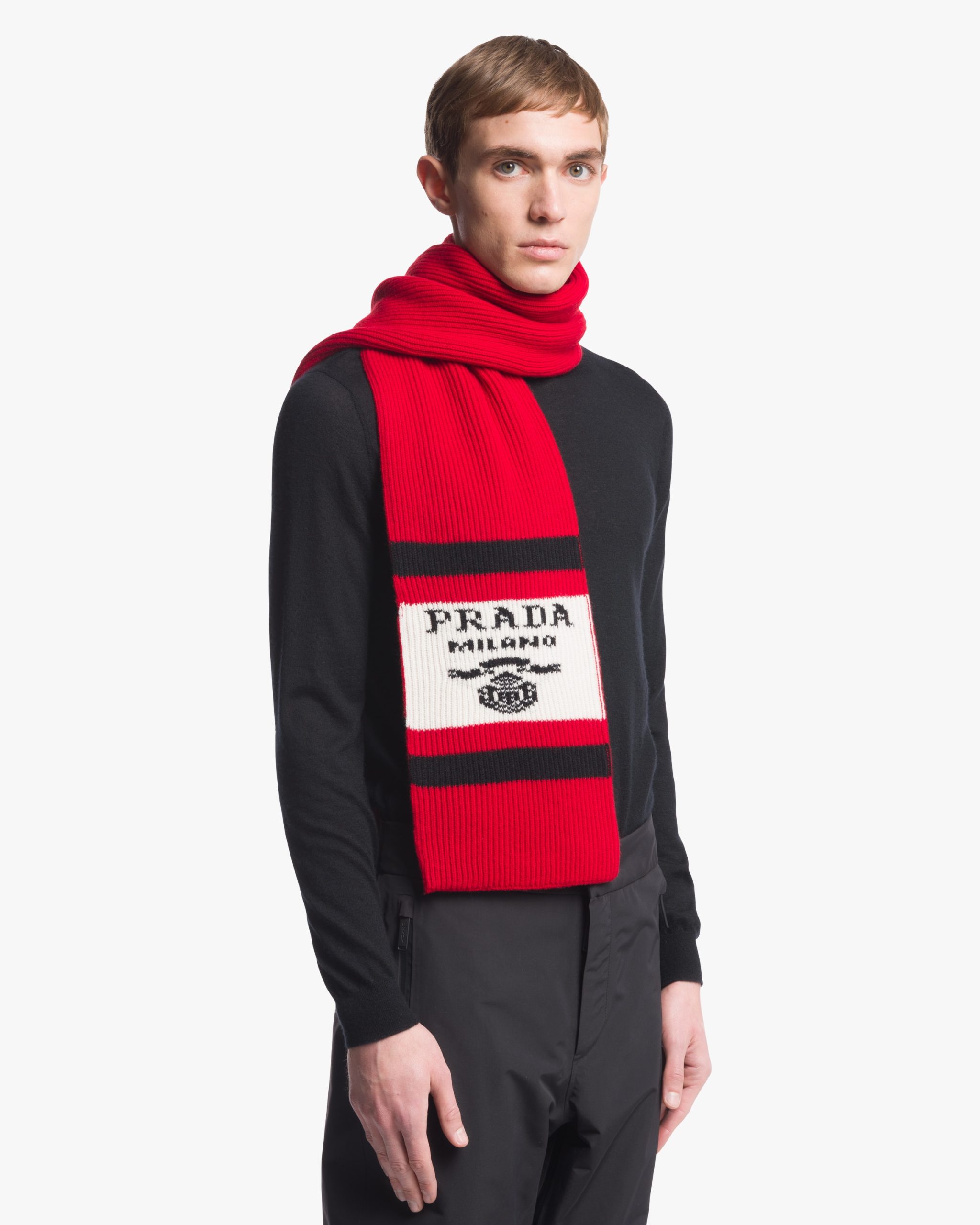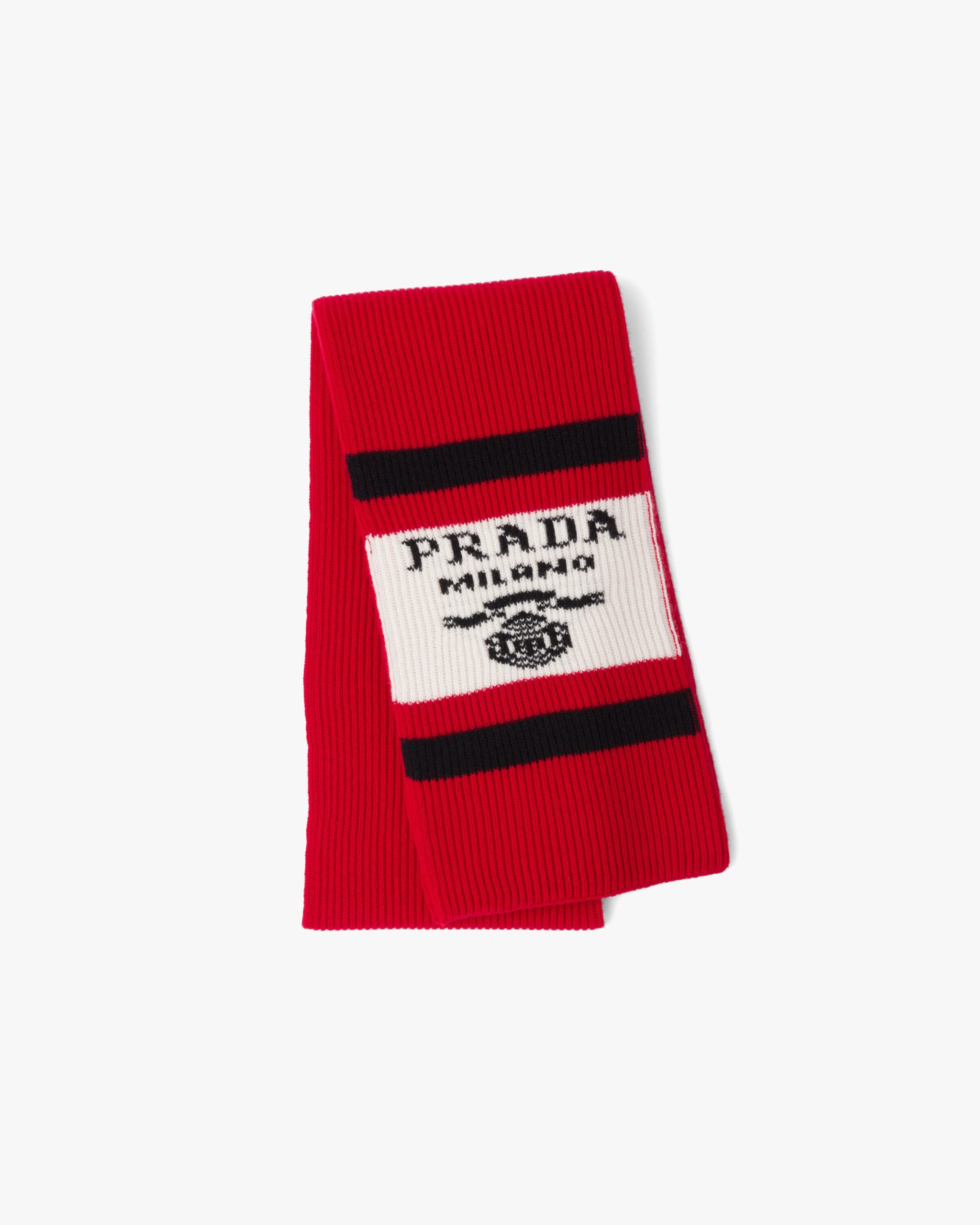 This sporty yet refined scarf is made of soft, fine cashmere. The accessory that recalls a vintage design of an alpine wardrobe is decorated with the jacquard lettering logo.