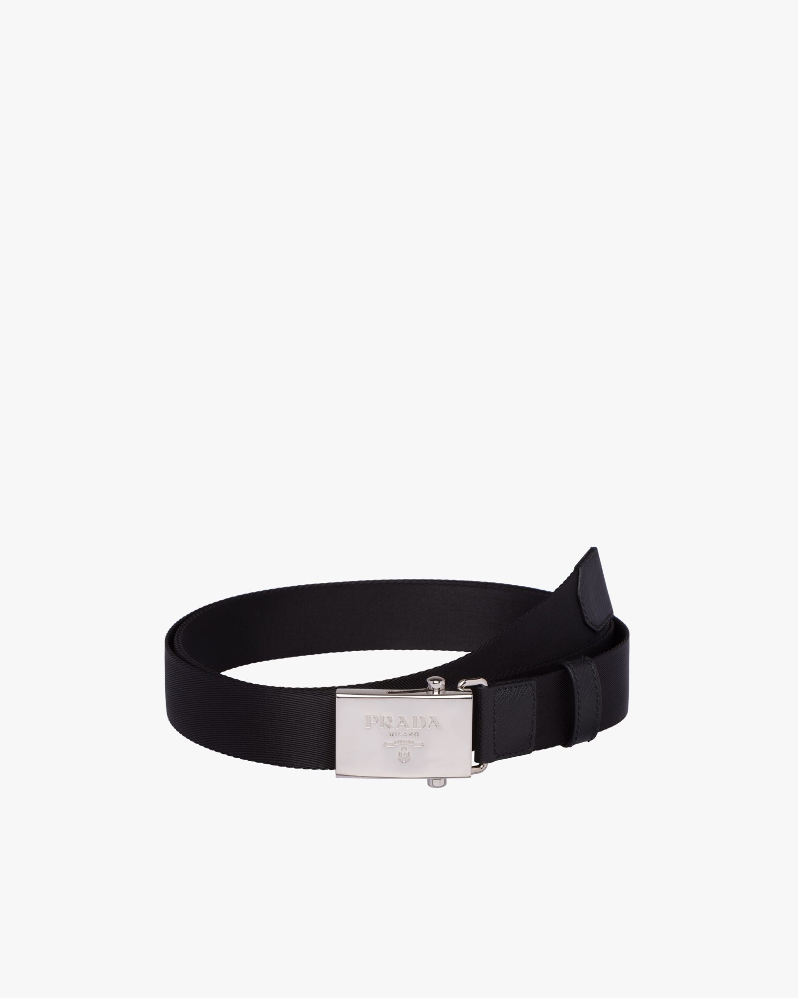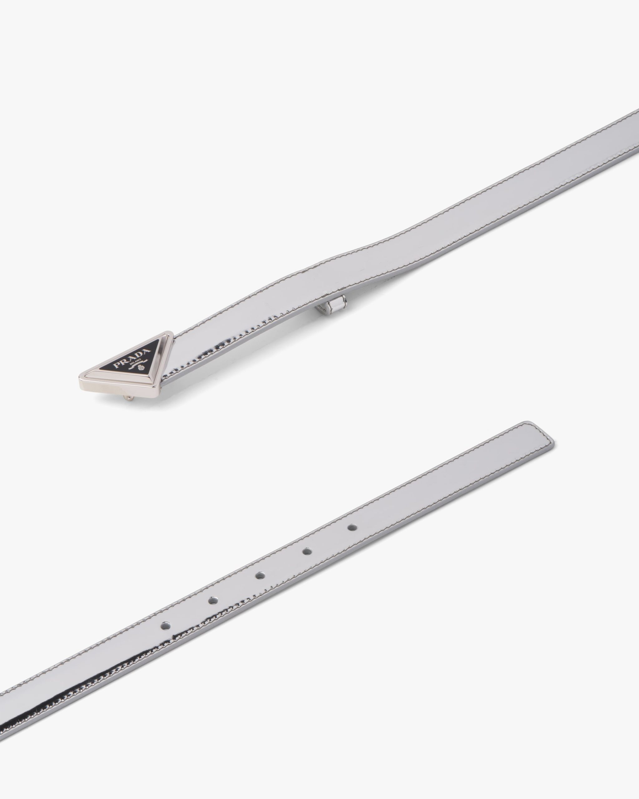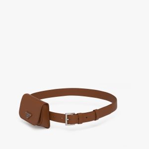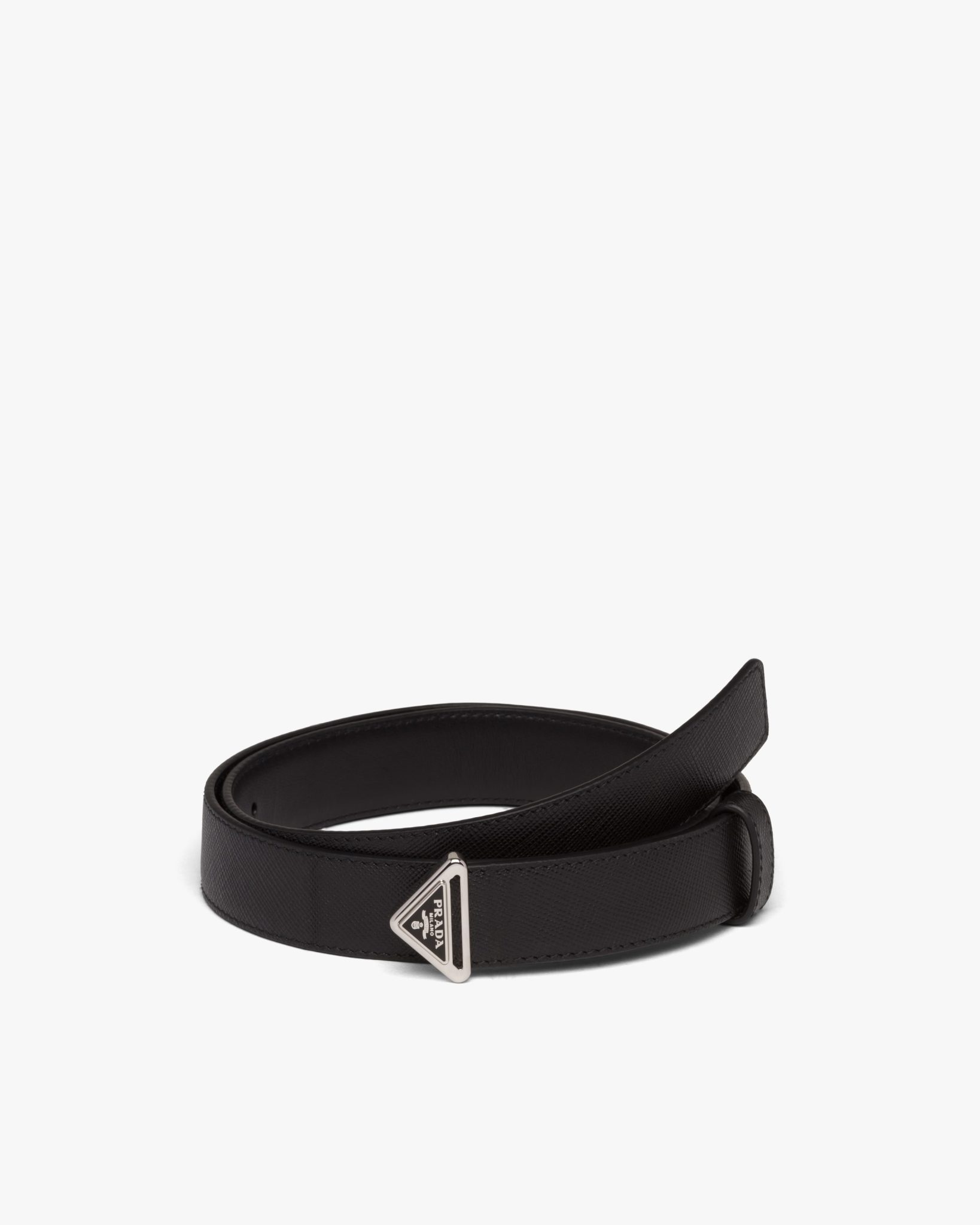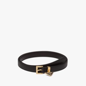 Made of brushed leather, which became an icon of Prada know-how over the years, this belt is characterized by its sleek, refined design completed by a metal buckle reminiscent of the emblematic triangle logo.