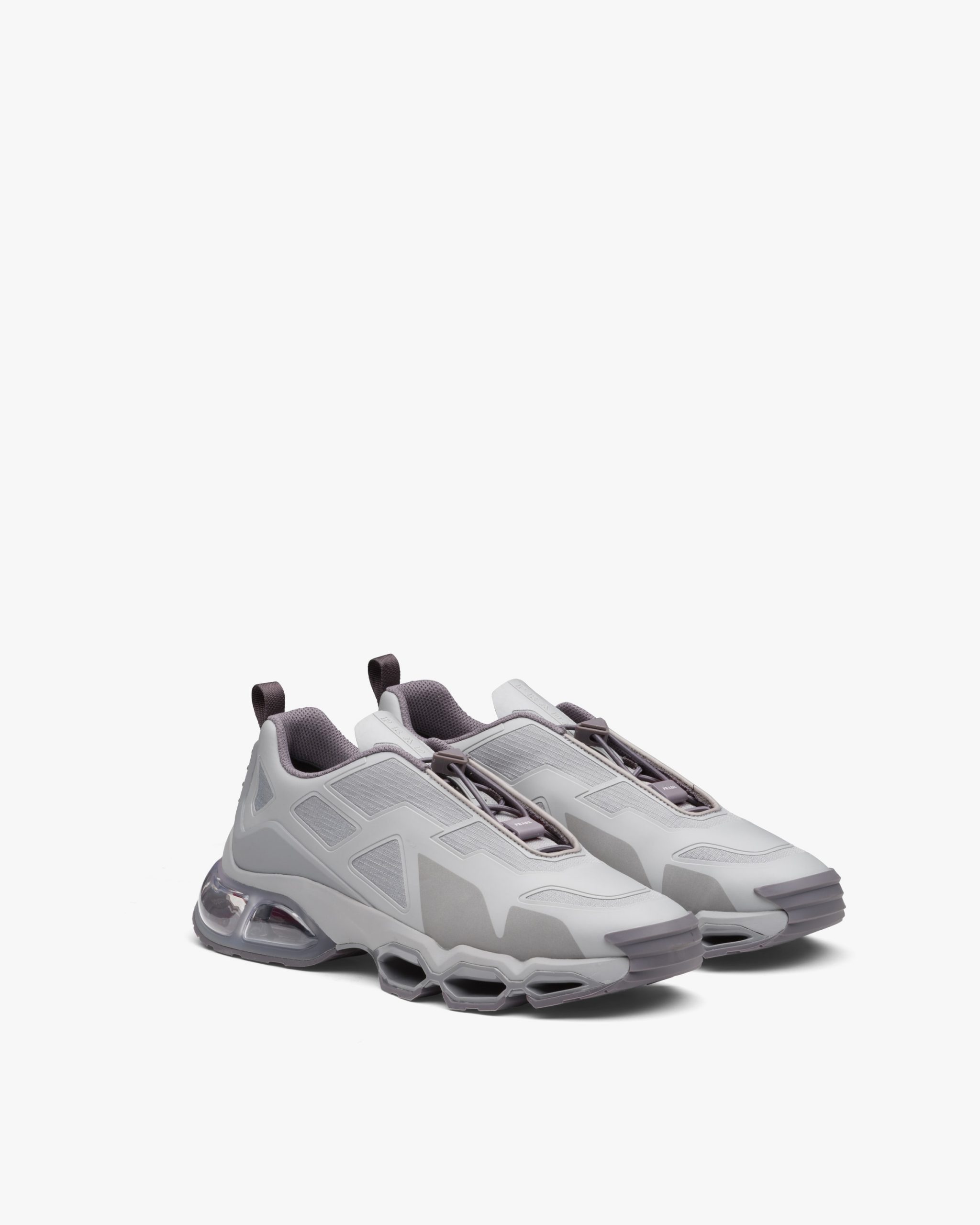 Made from rubber-injected fabric, these Prada Collision sneakers feature a futuristic design and 3D appliqu?s.