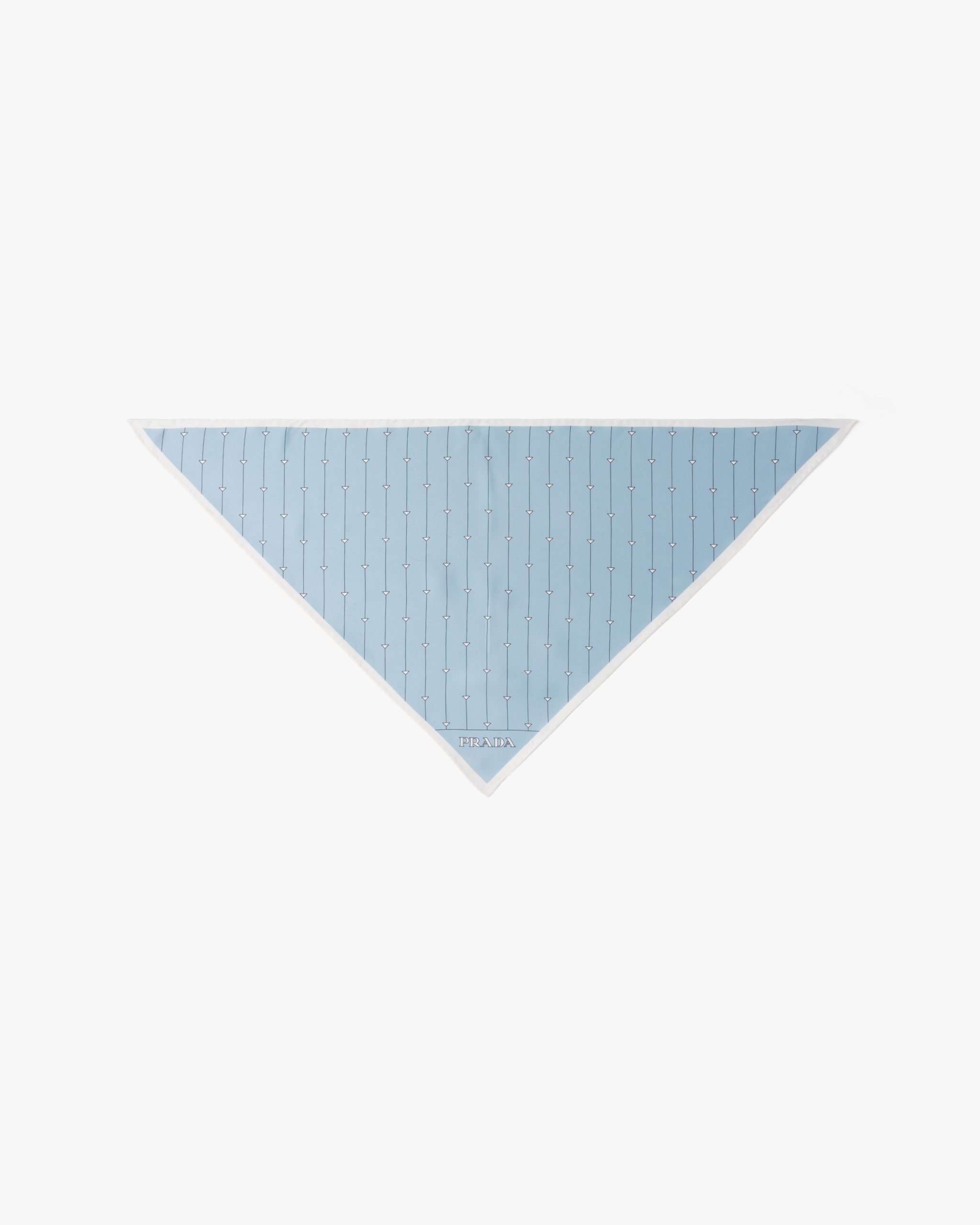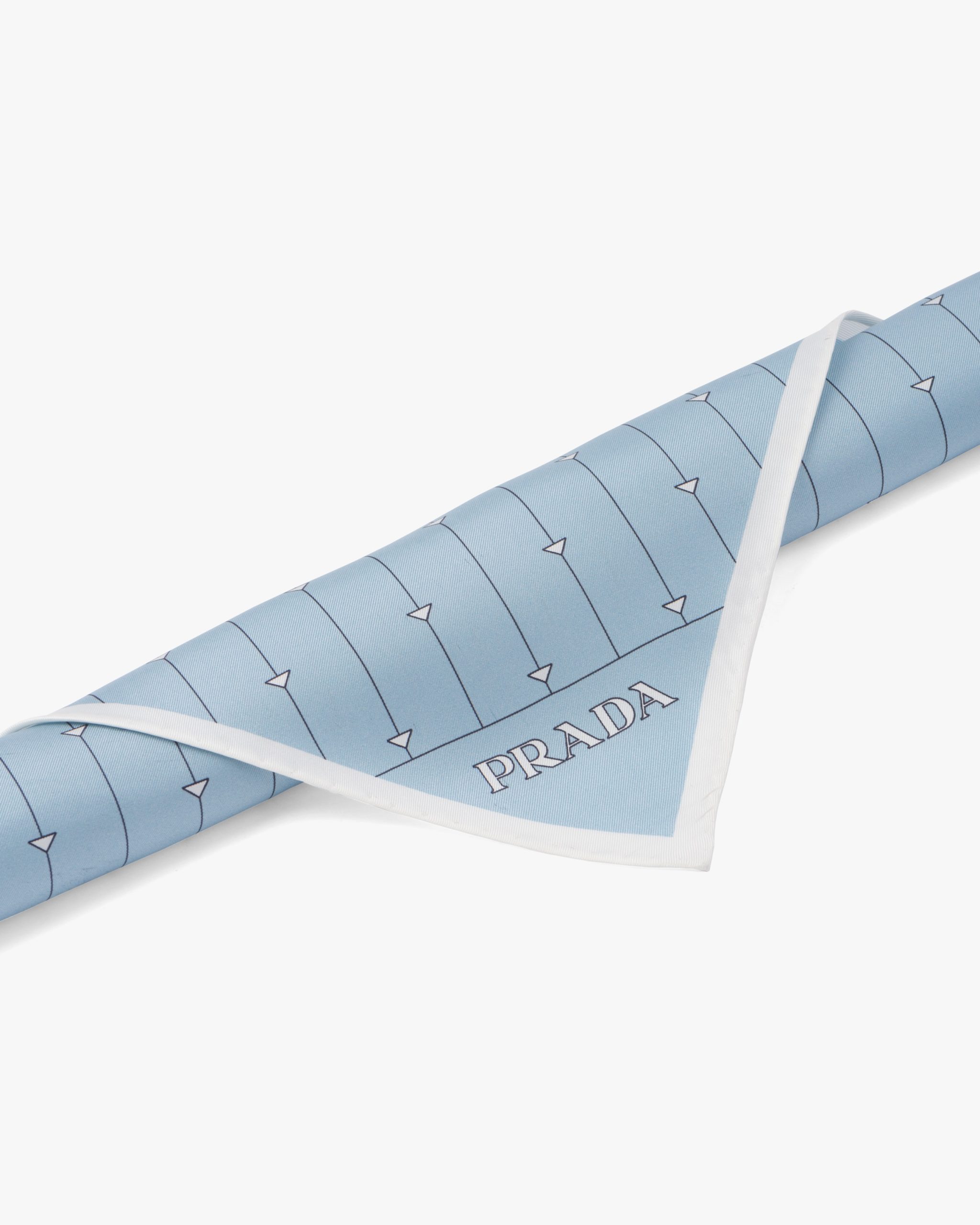 The triangle, Prada’s iconic logo since 1913, is reimagined in always new ways and is combined with narrow stripes in the delicate graphic pattern on this twill scarf.