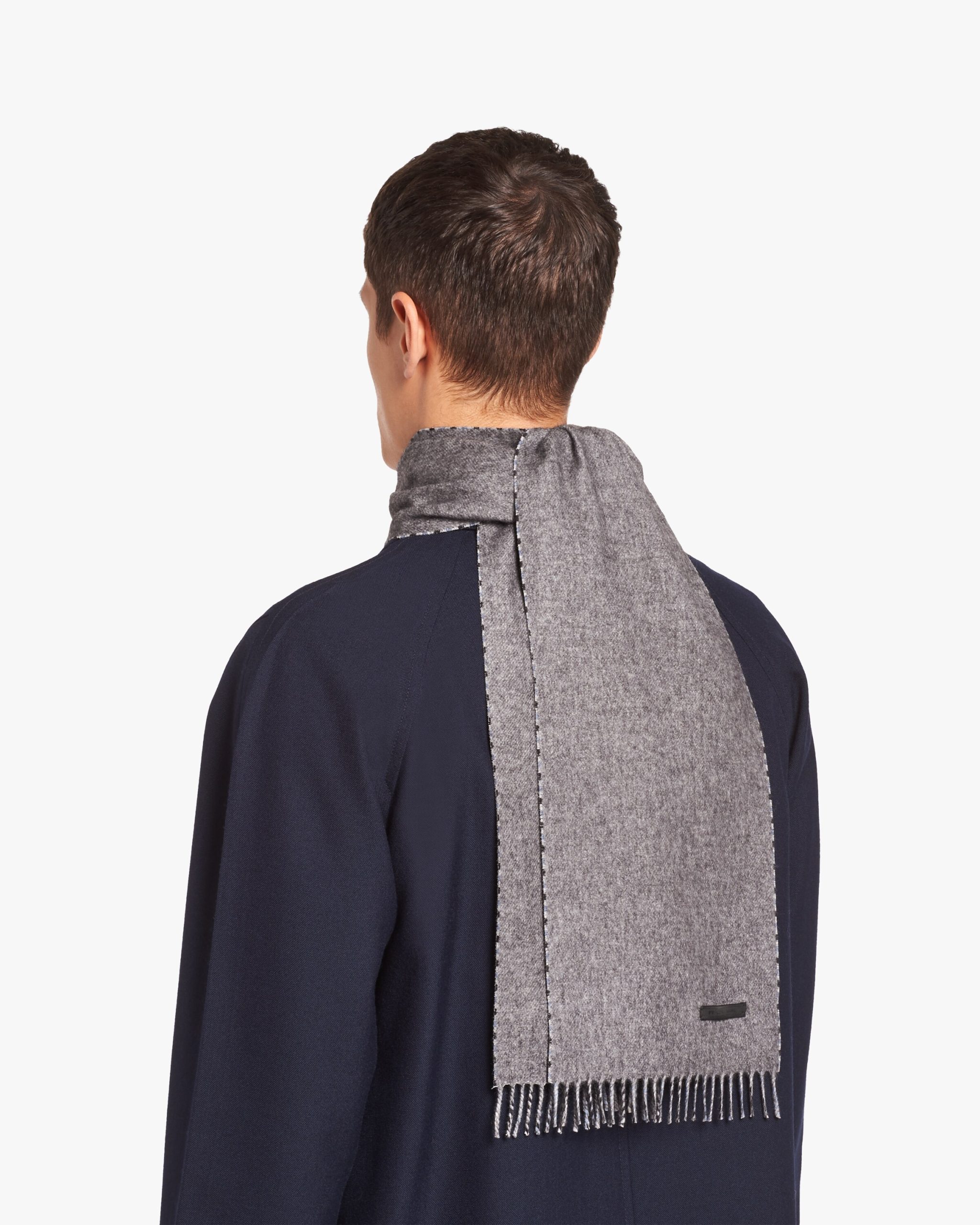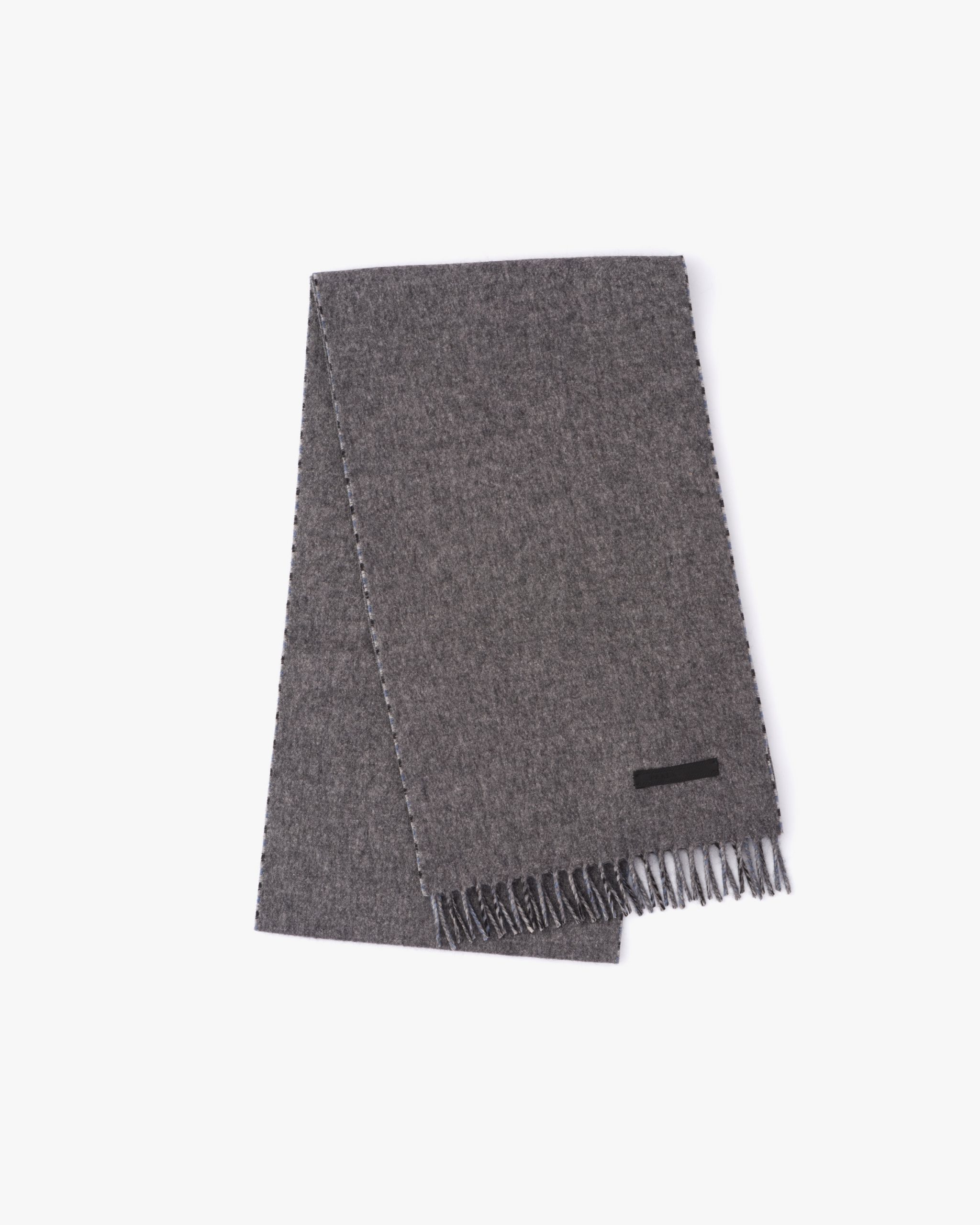 This double cashmere scarf with fringe on the ends expresses classic elegance. The iconic sartorial label decorates the accessory.