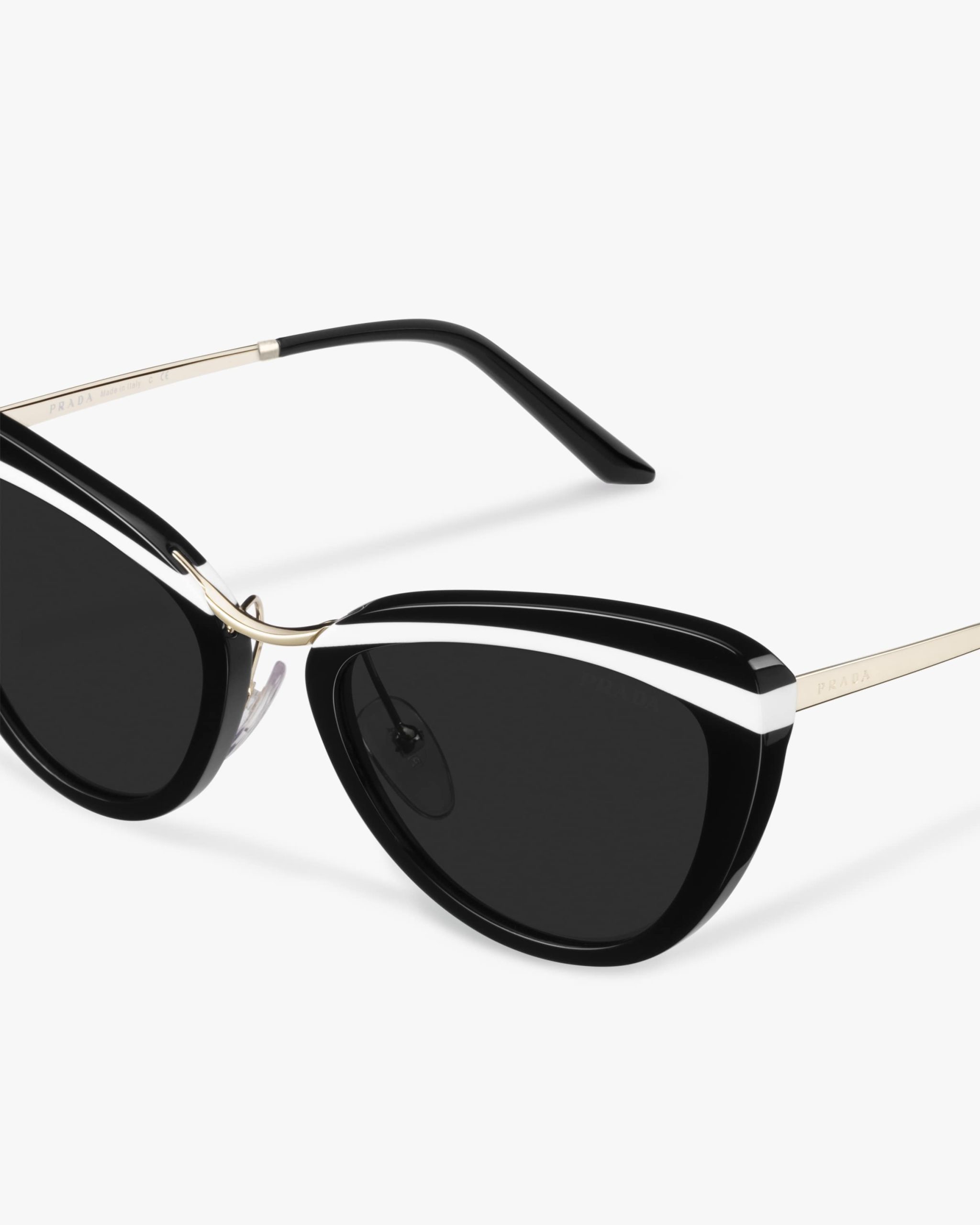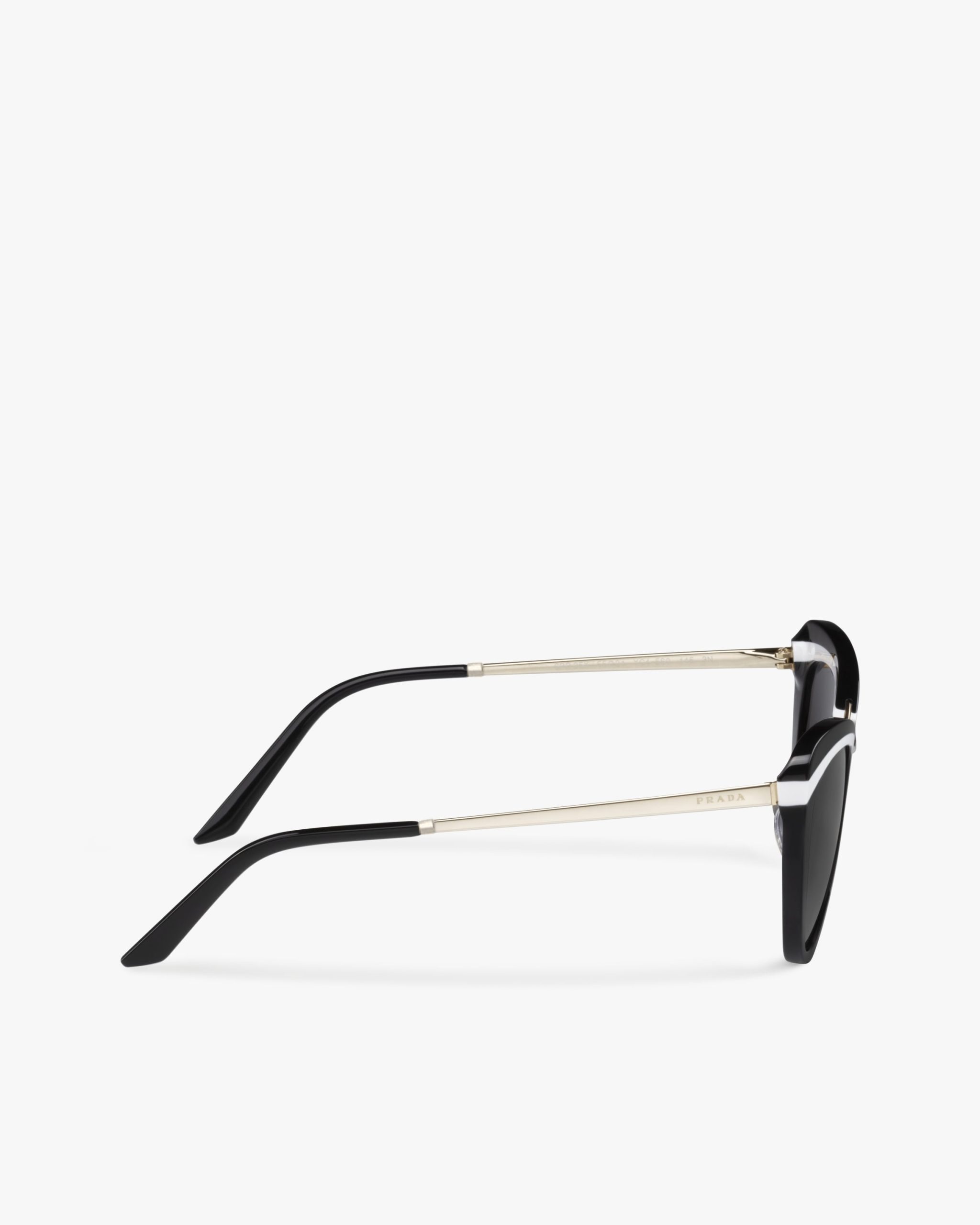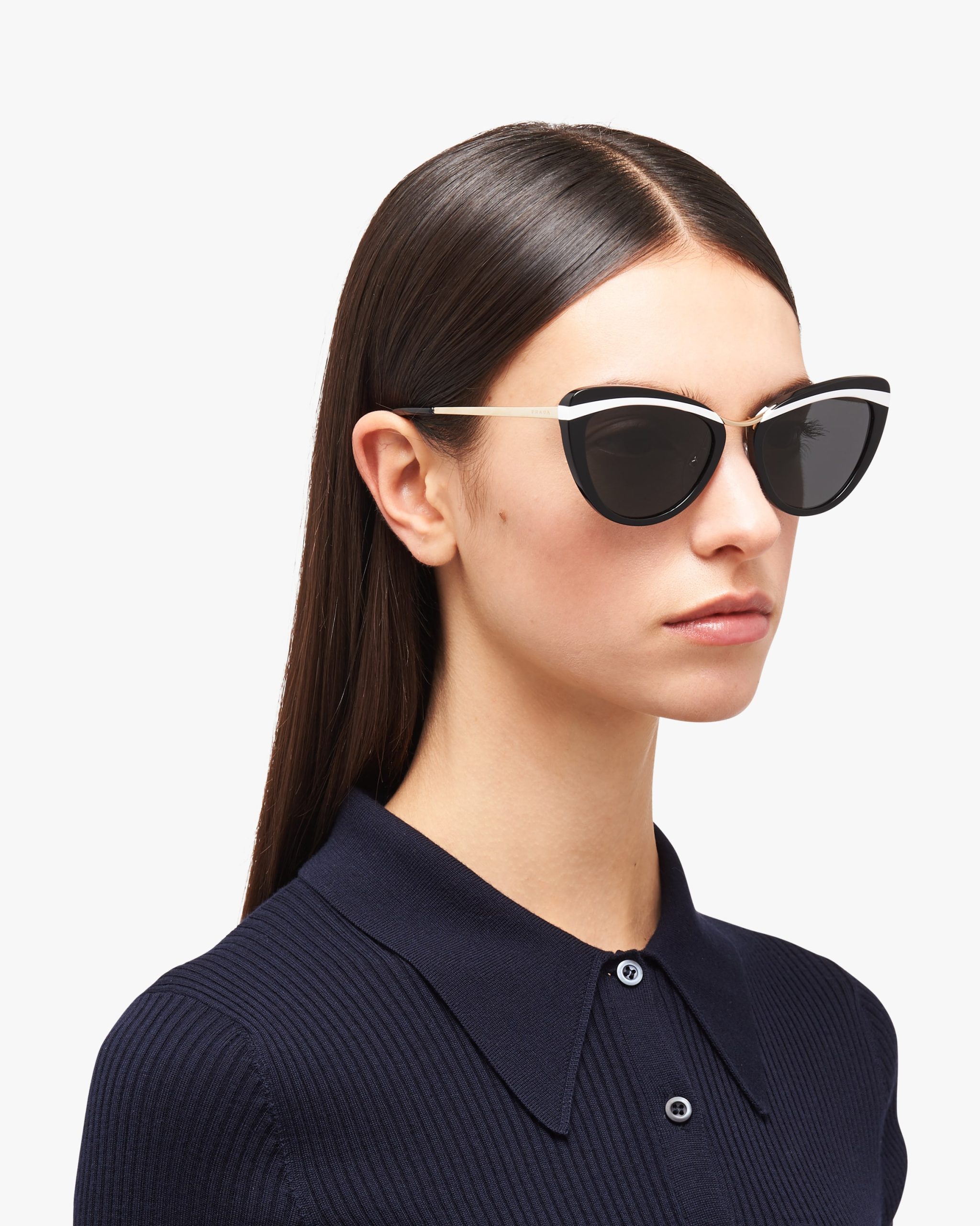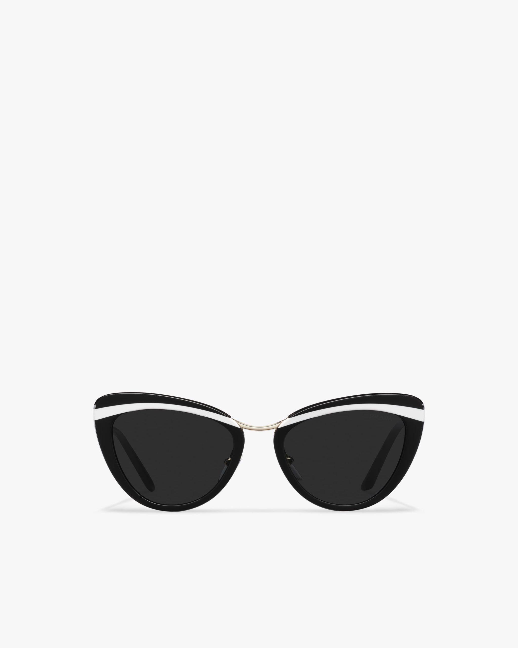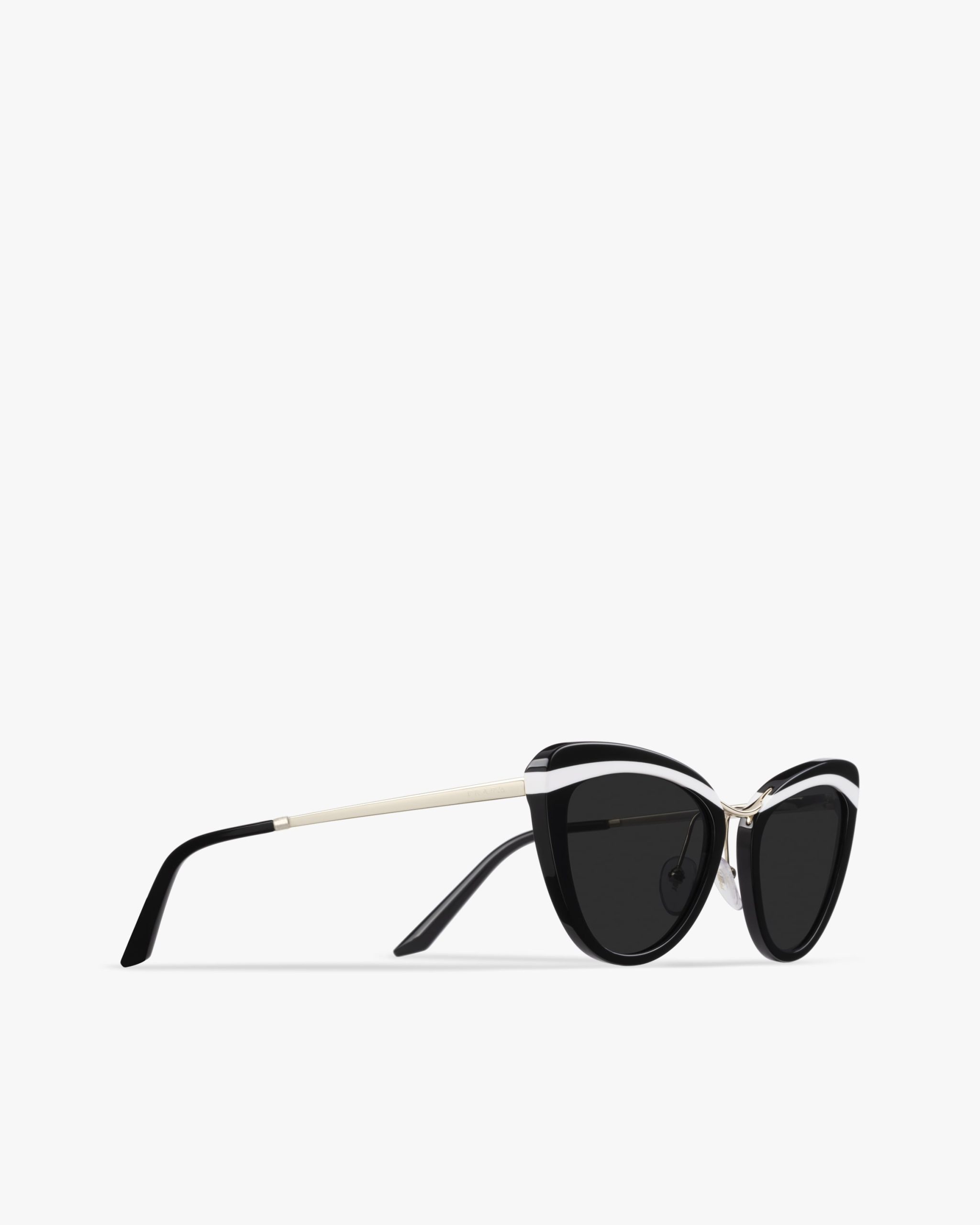 Sunglasses characterized by the elegant cat-eye silhouette that reinterprets the style of the iconic Prada Cin?ma eyewear. The frame front is made from an exclusive combination of contrasting acetate layers. Prada lettering logo.