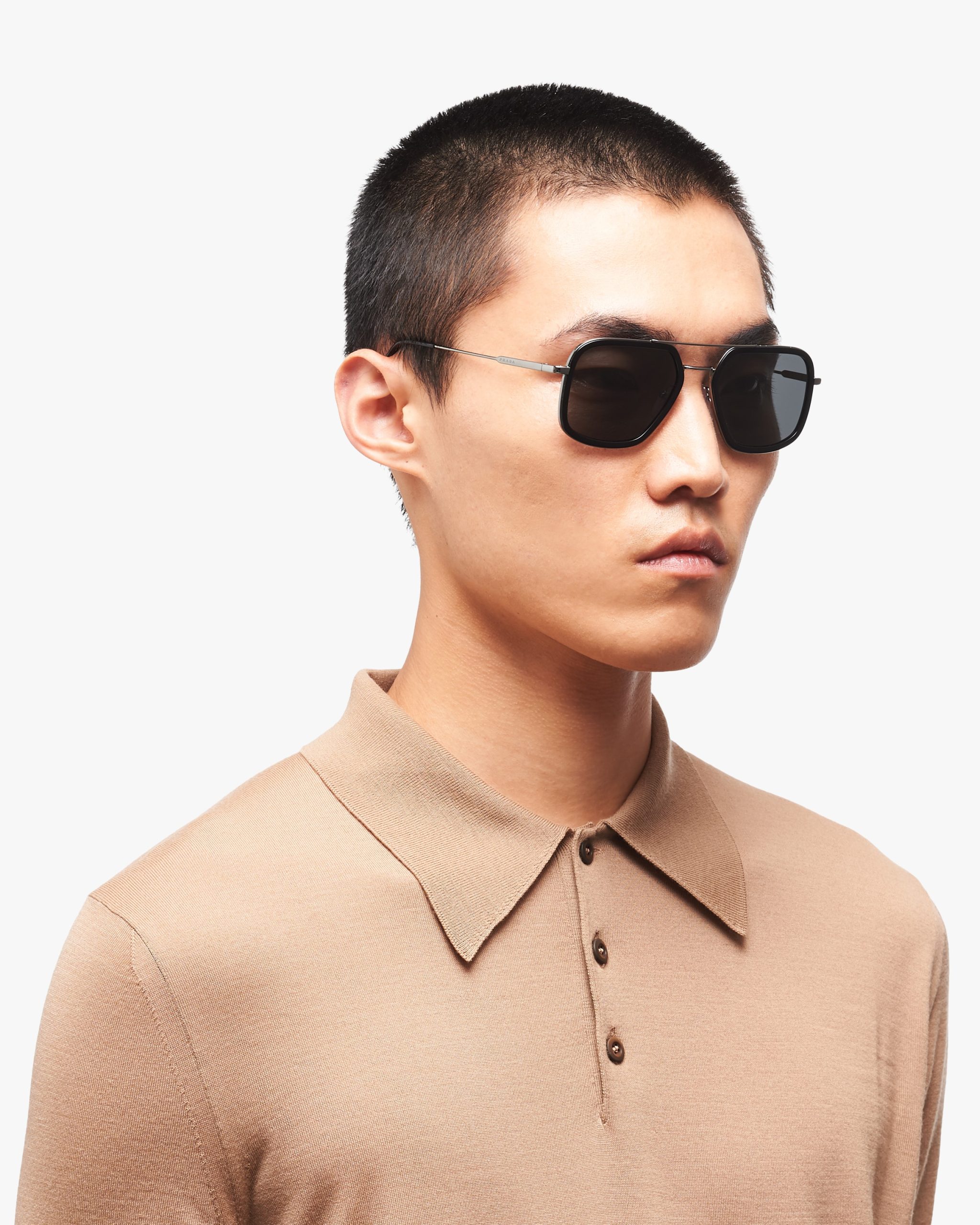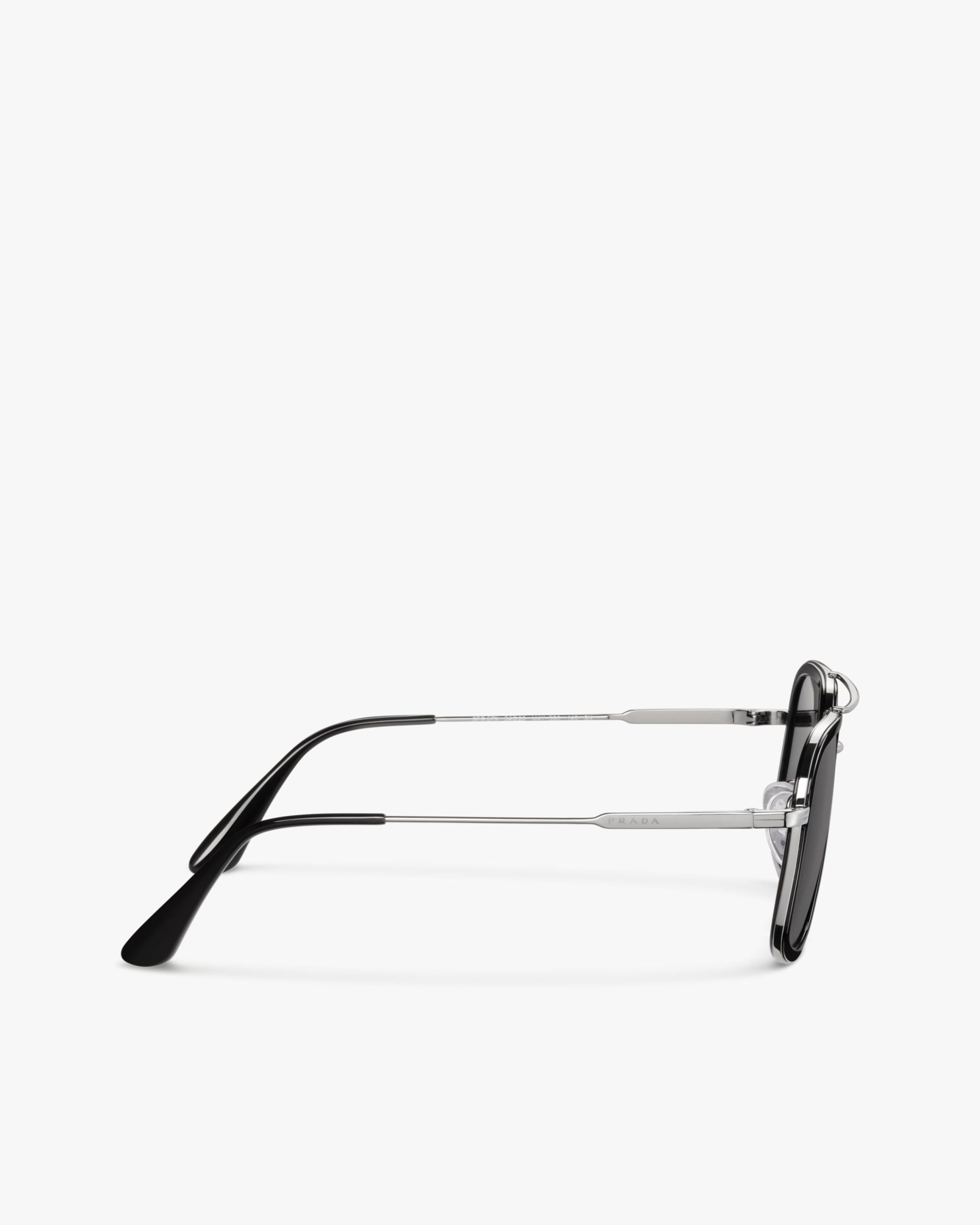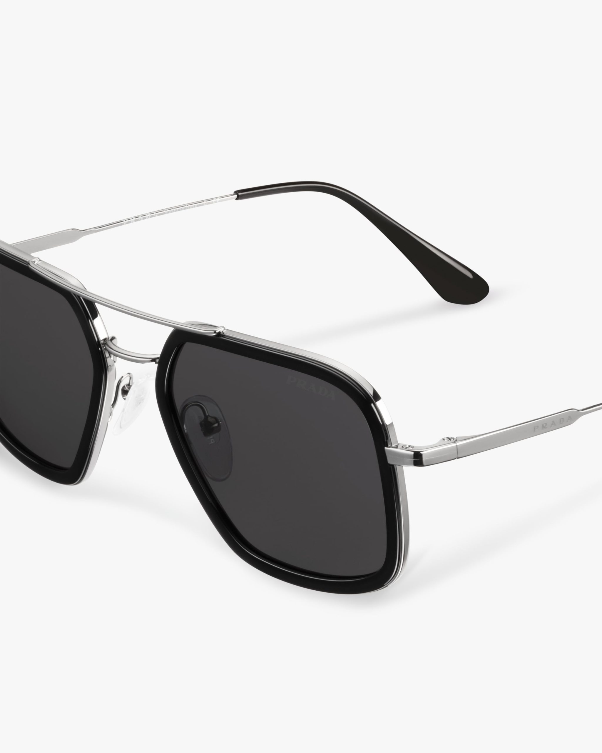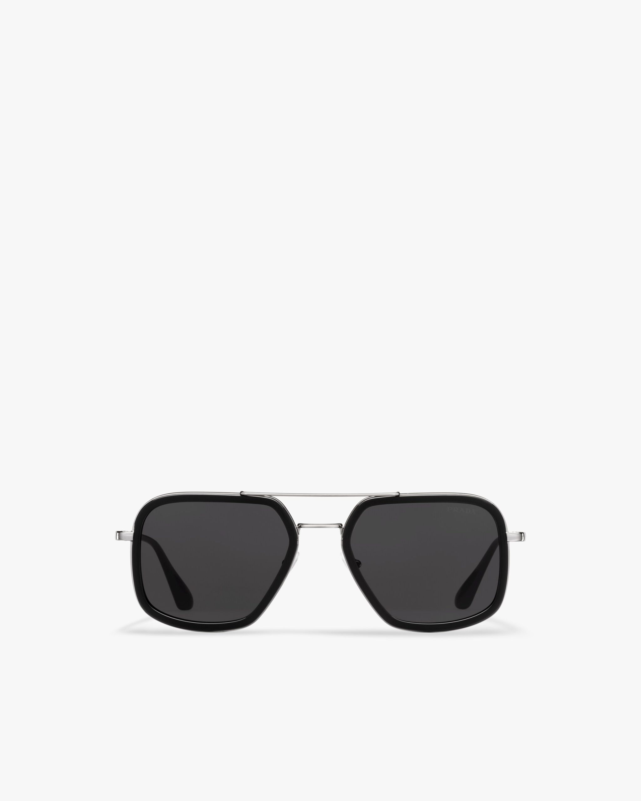 These sunglasses are defined by their rectangular silhouette elegant acetate rims and a double metal bridge with a contemporary touch. Prada lettering logo.