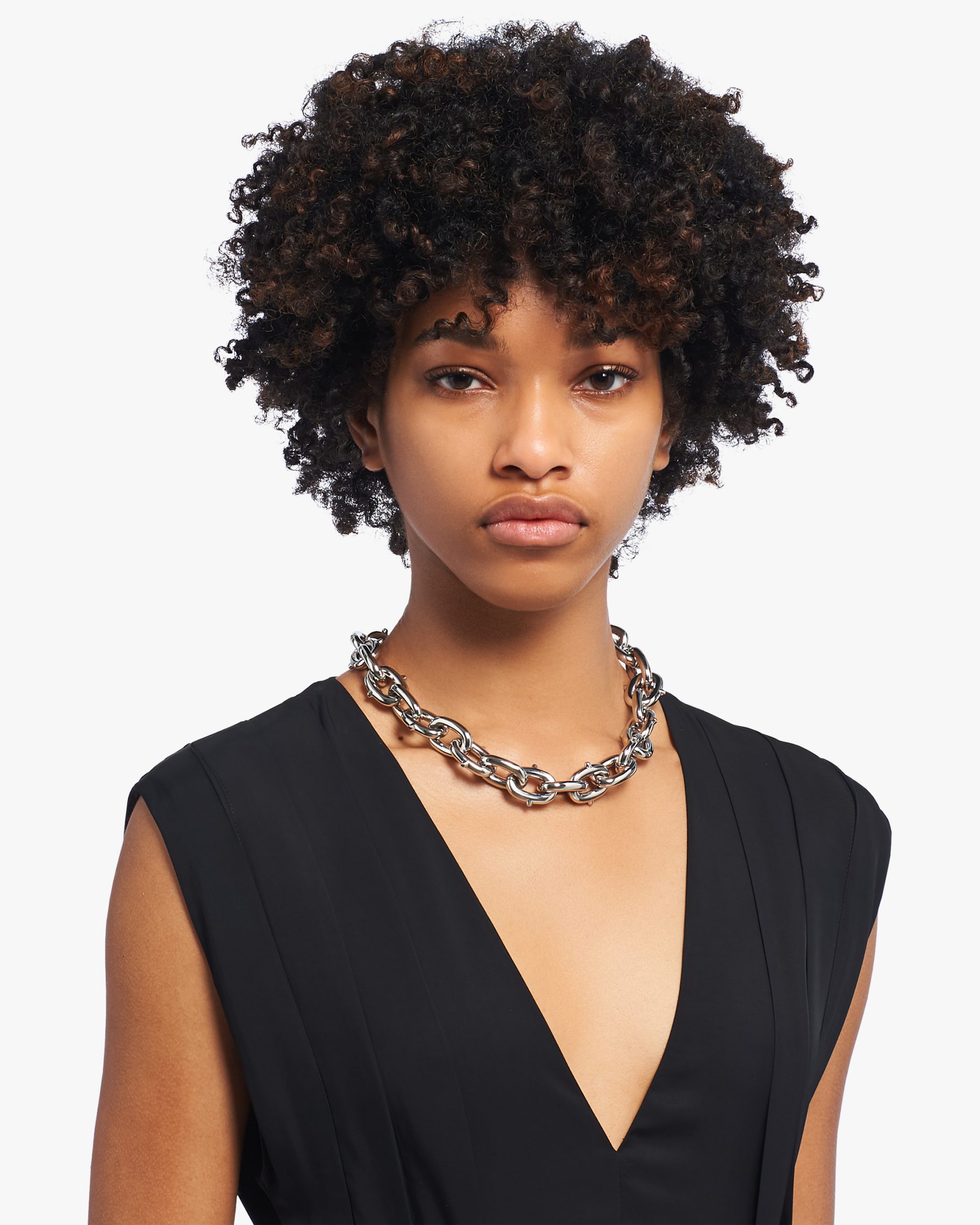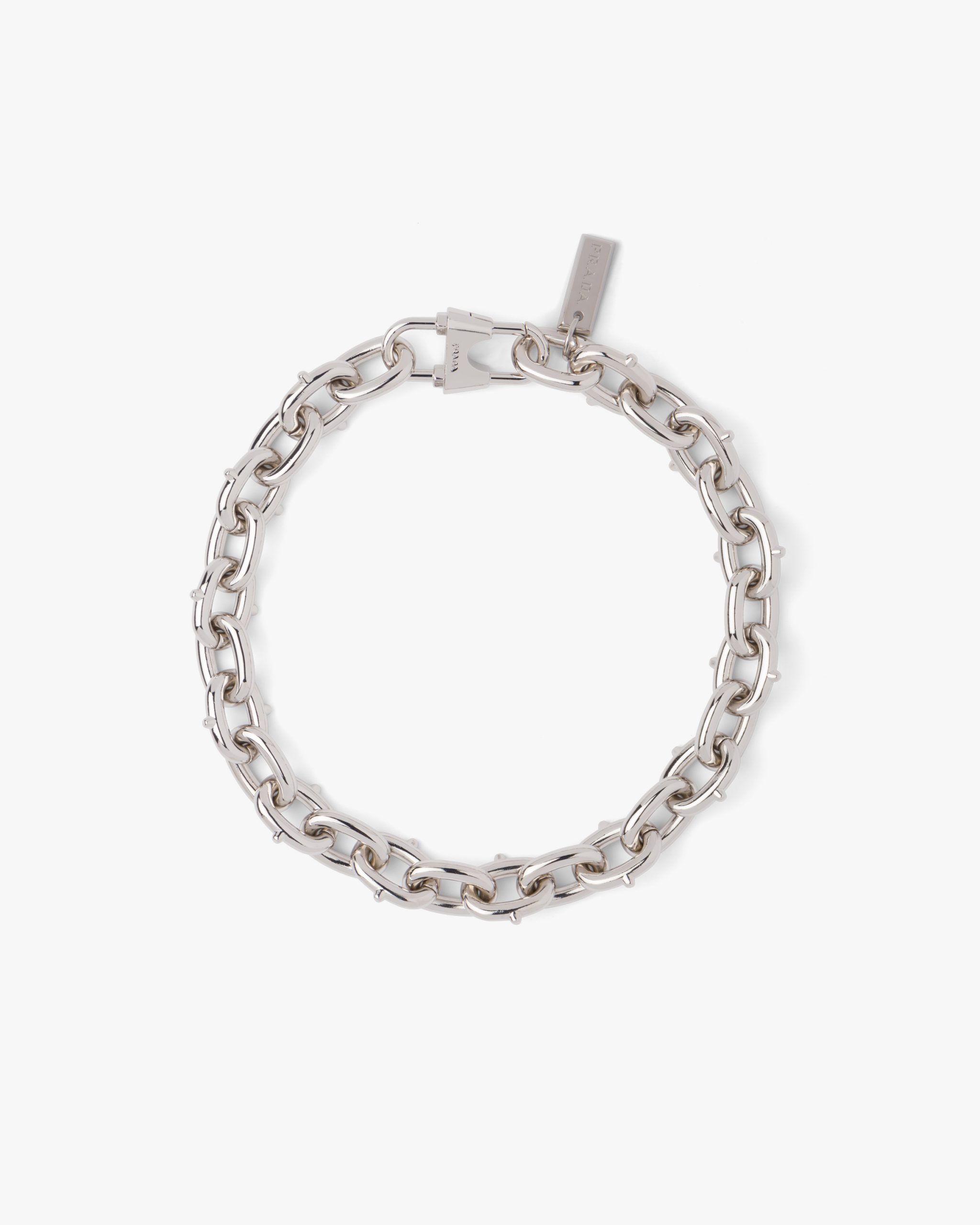 With its chain design with double lock closure, this metal necklace is characterized by its sophisticated vintage finish.