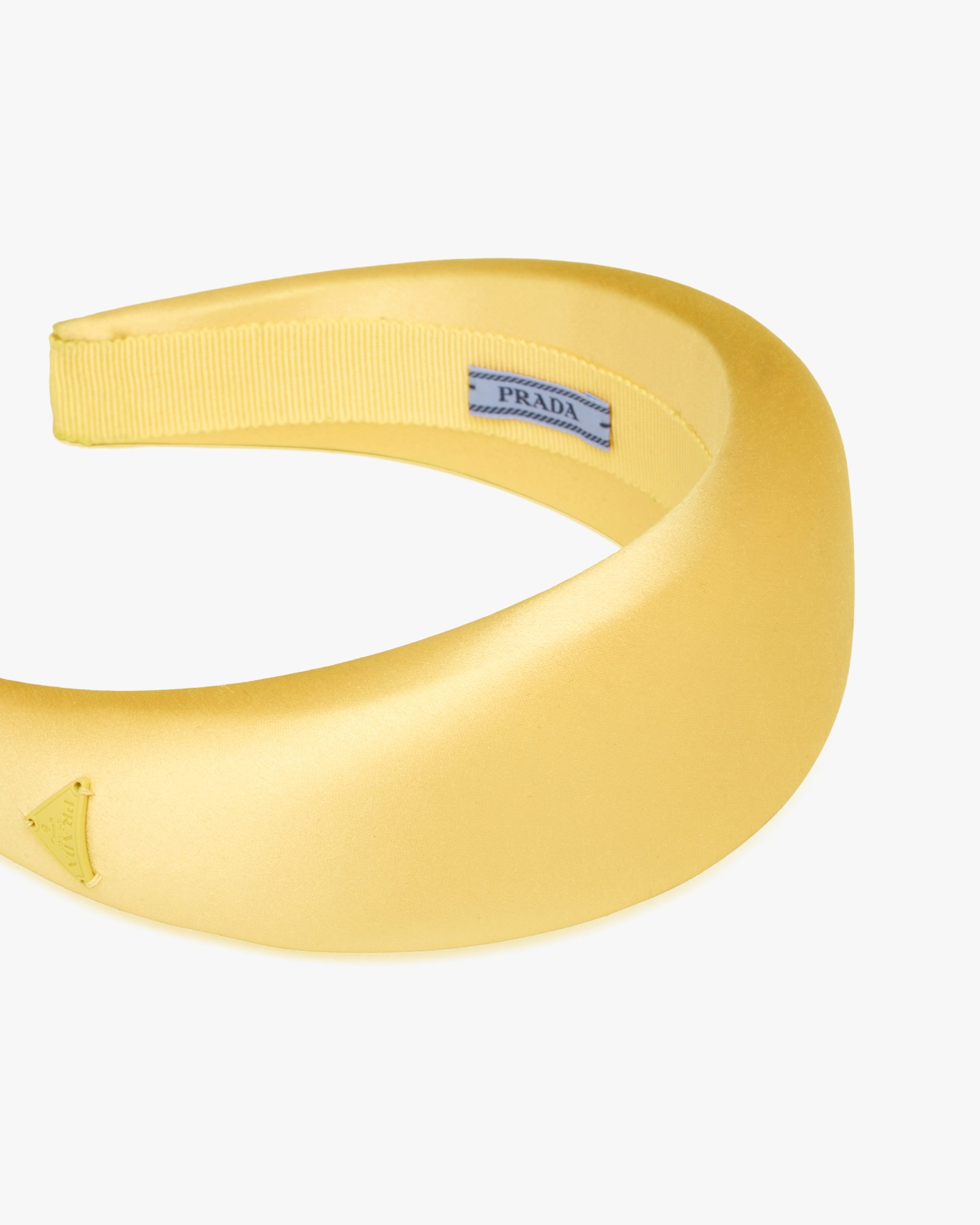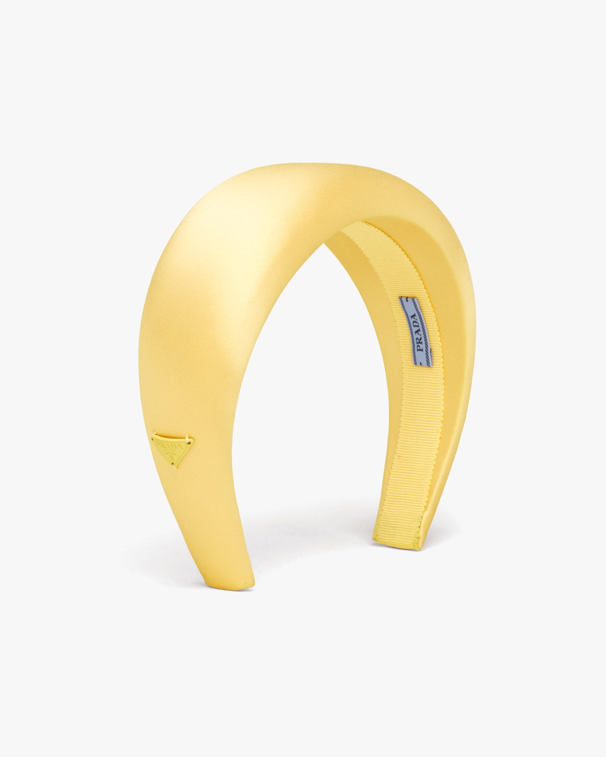 This wide satin headband has a wraparound design that gives a refined touch to the look.